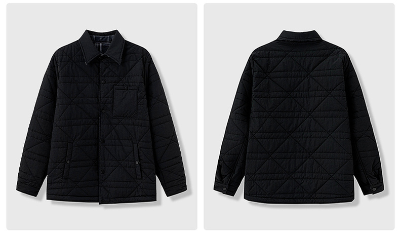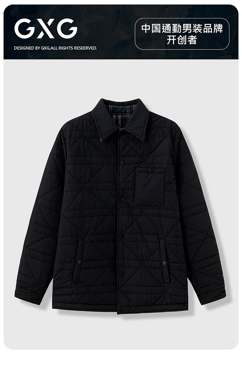 GXG男装25冬季简约菱形格图案轻便保暖绗线翻领夹克男式短款棉服K&C