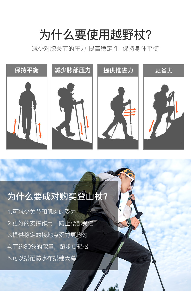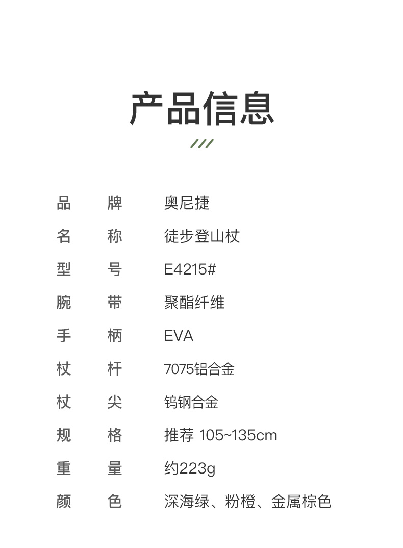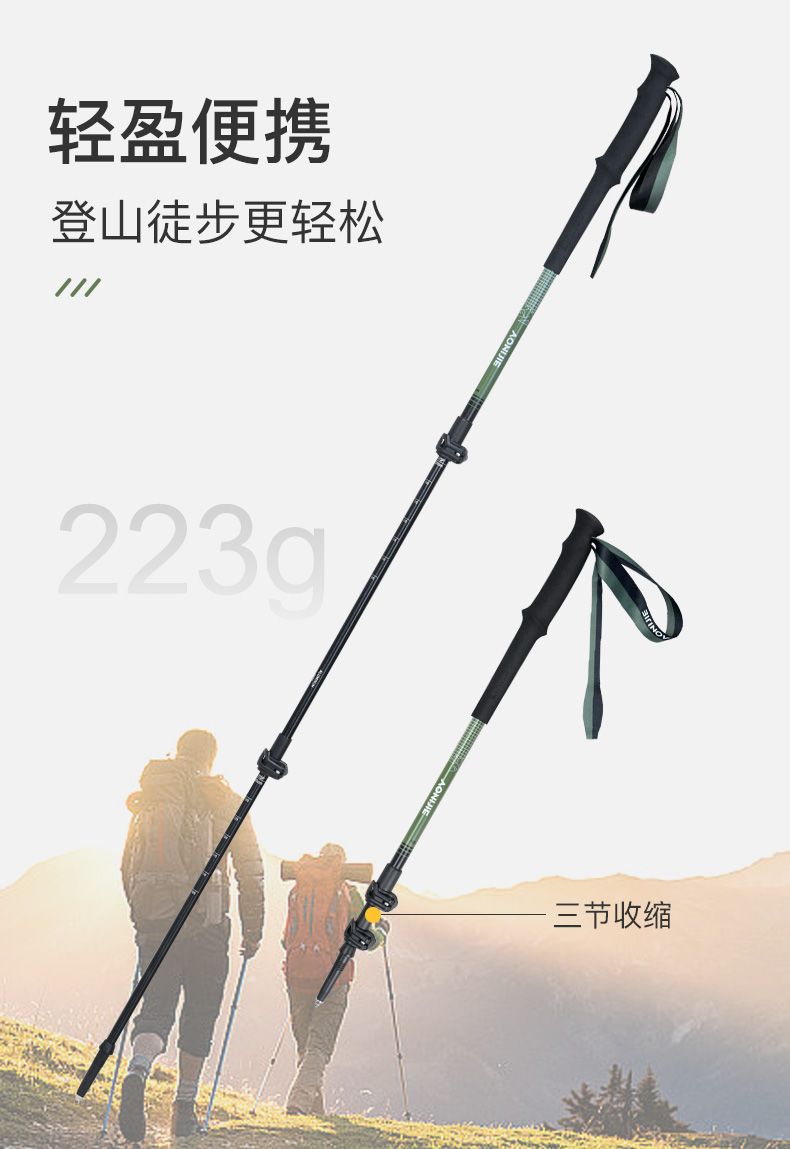奥尼捷徒步登山杖专业户外露营铝合金爬山装备可伸缩手杖徒步杖