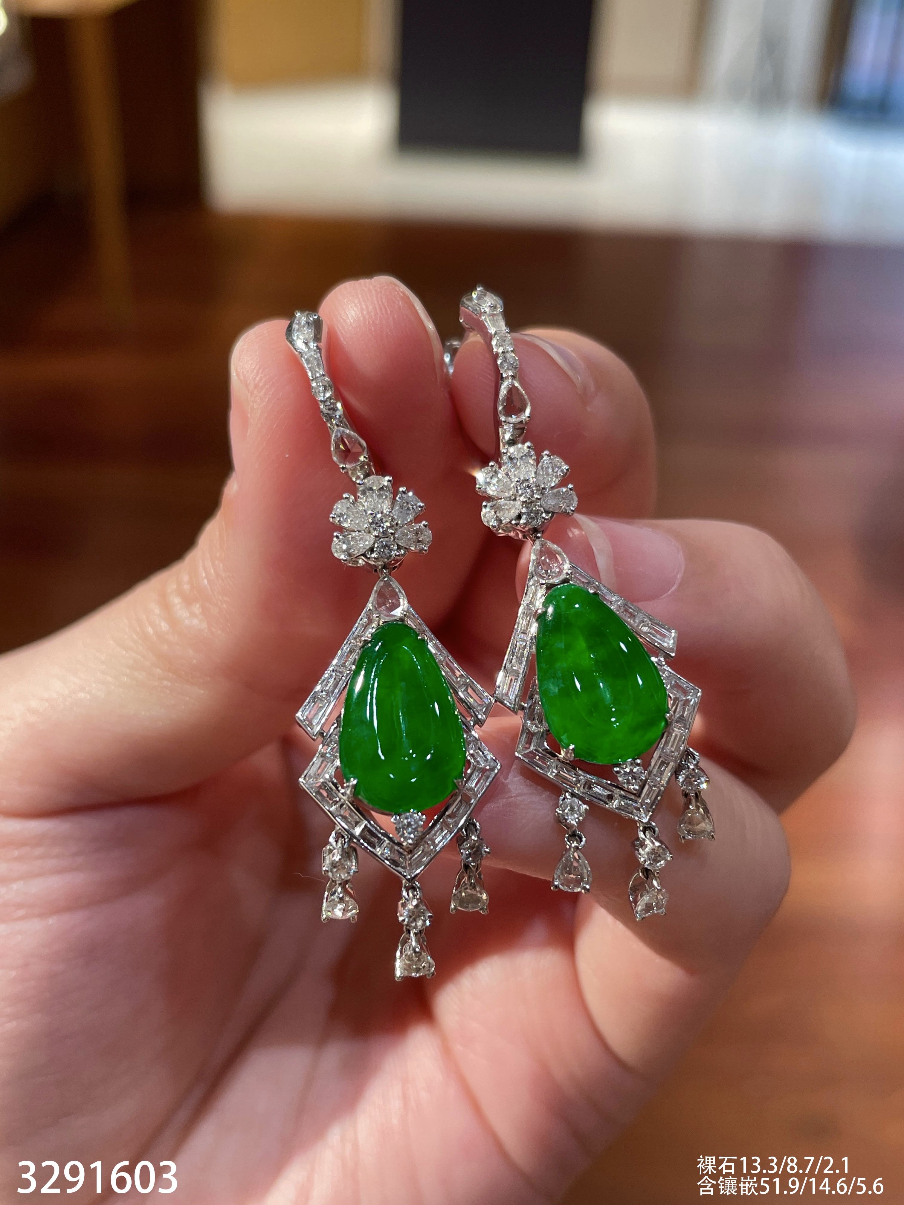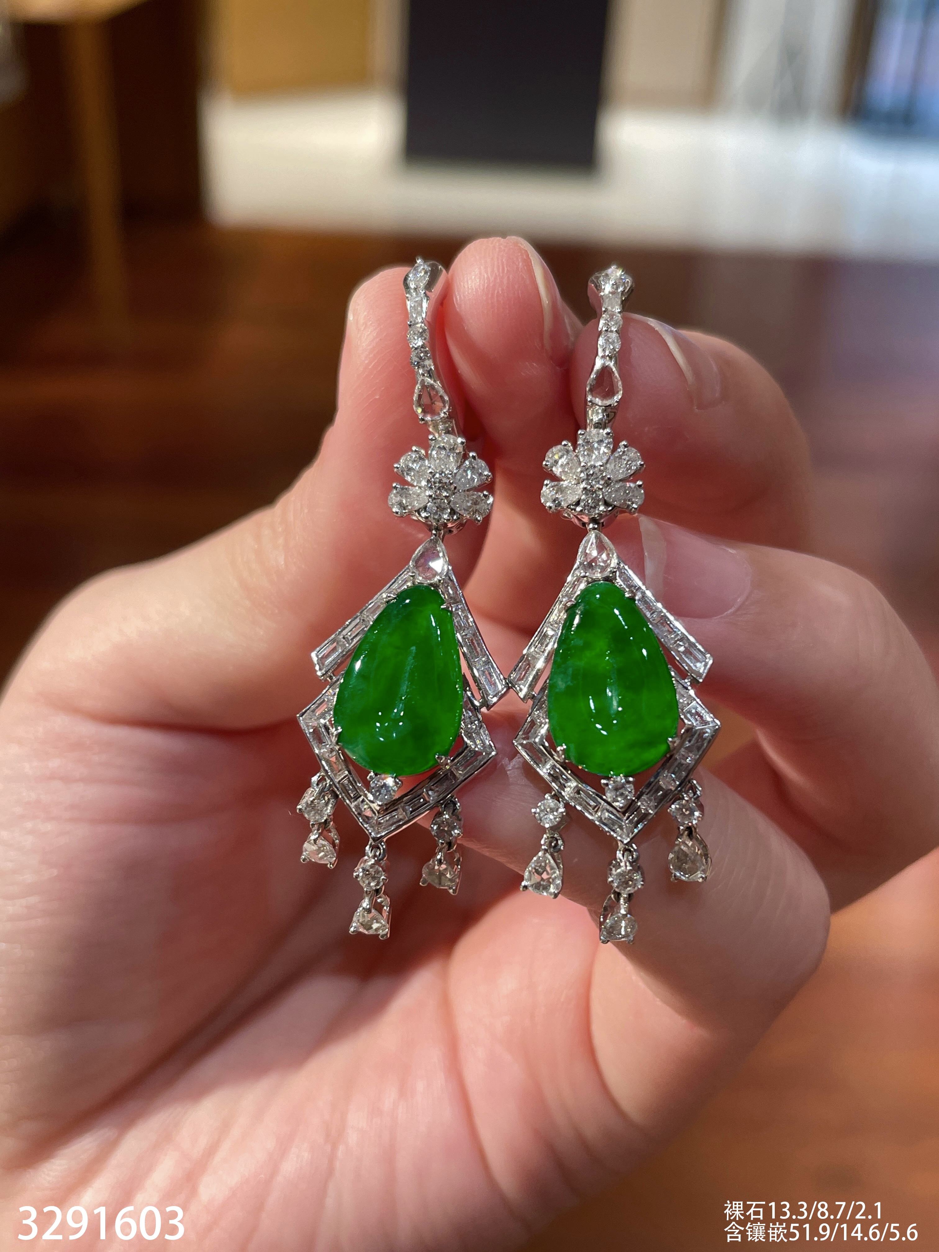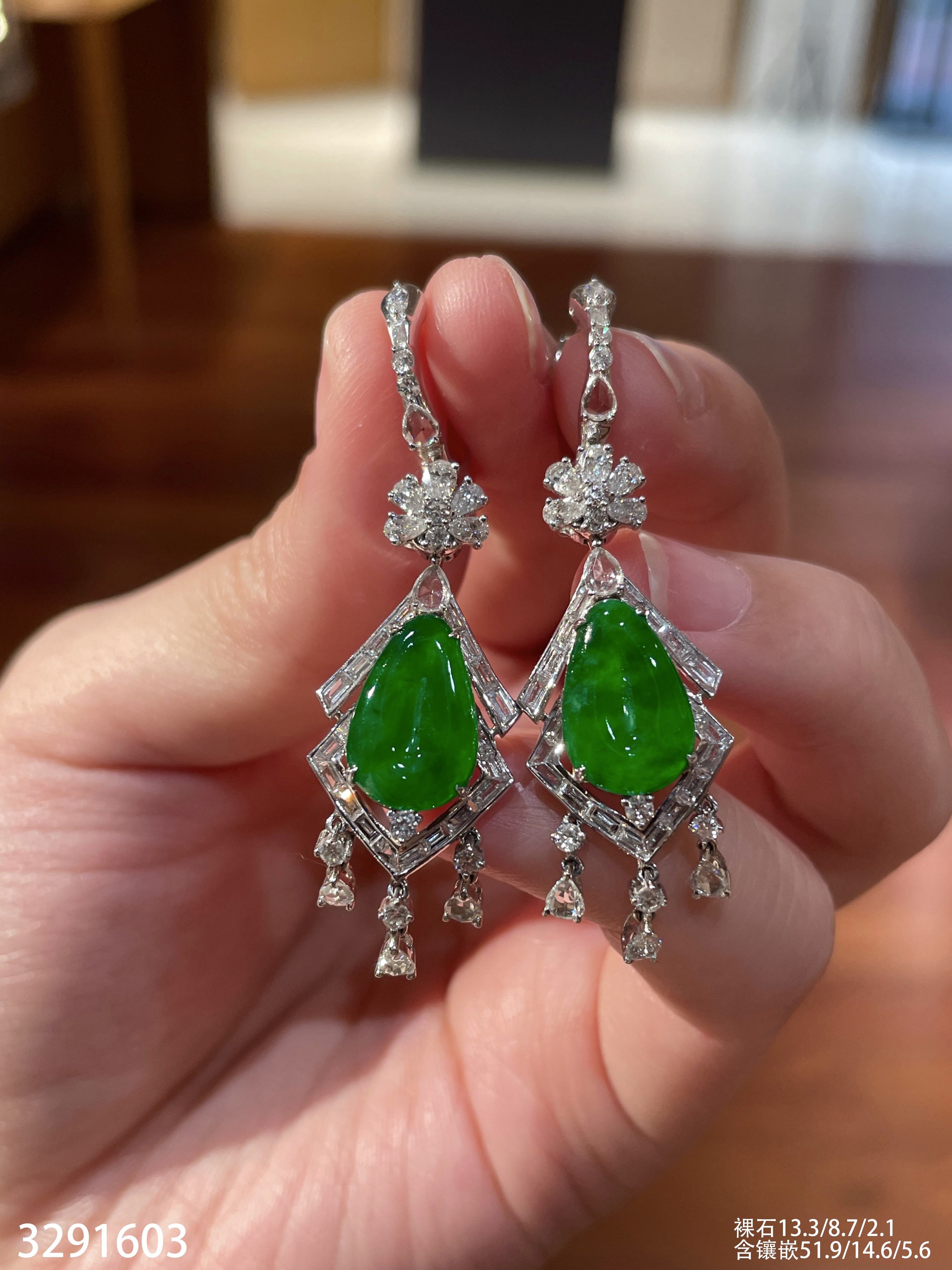 老坑冰帝王绿水滴耳坠 69999【3291603】