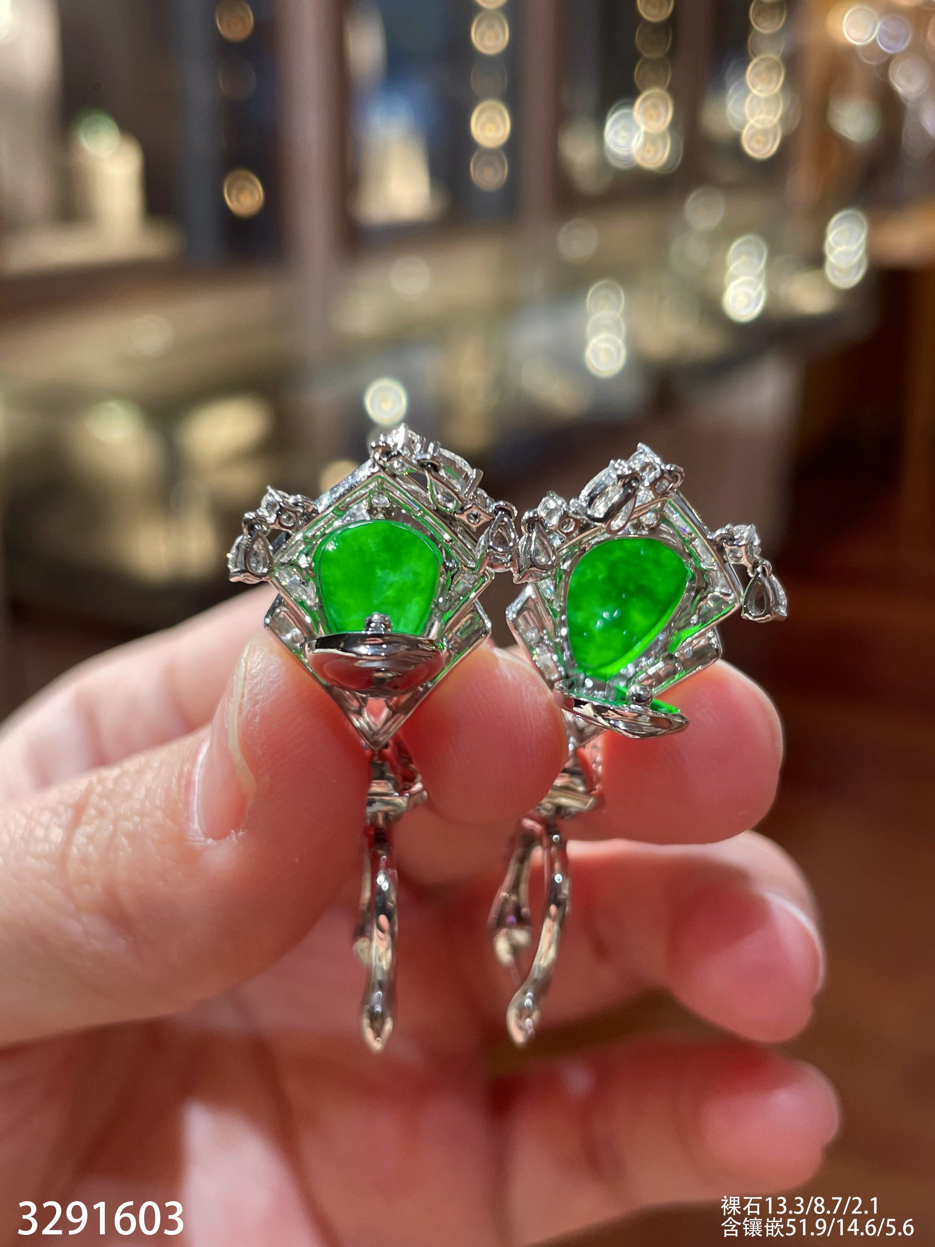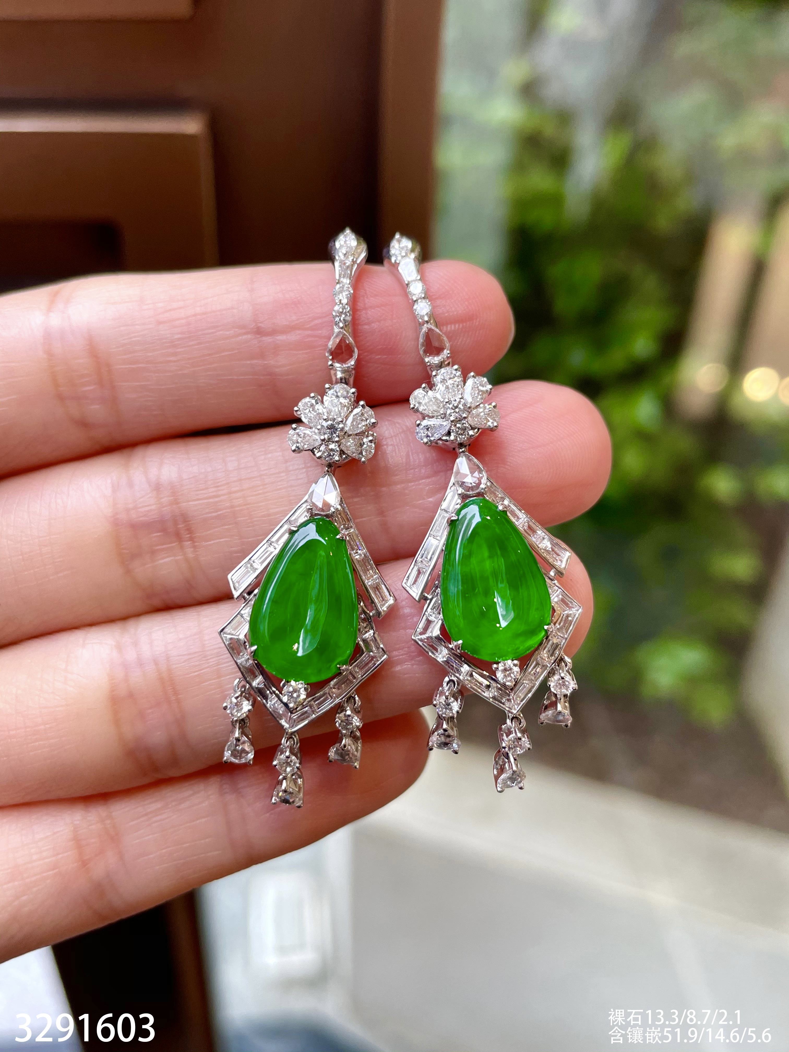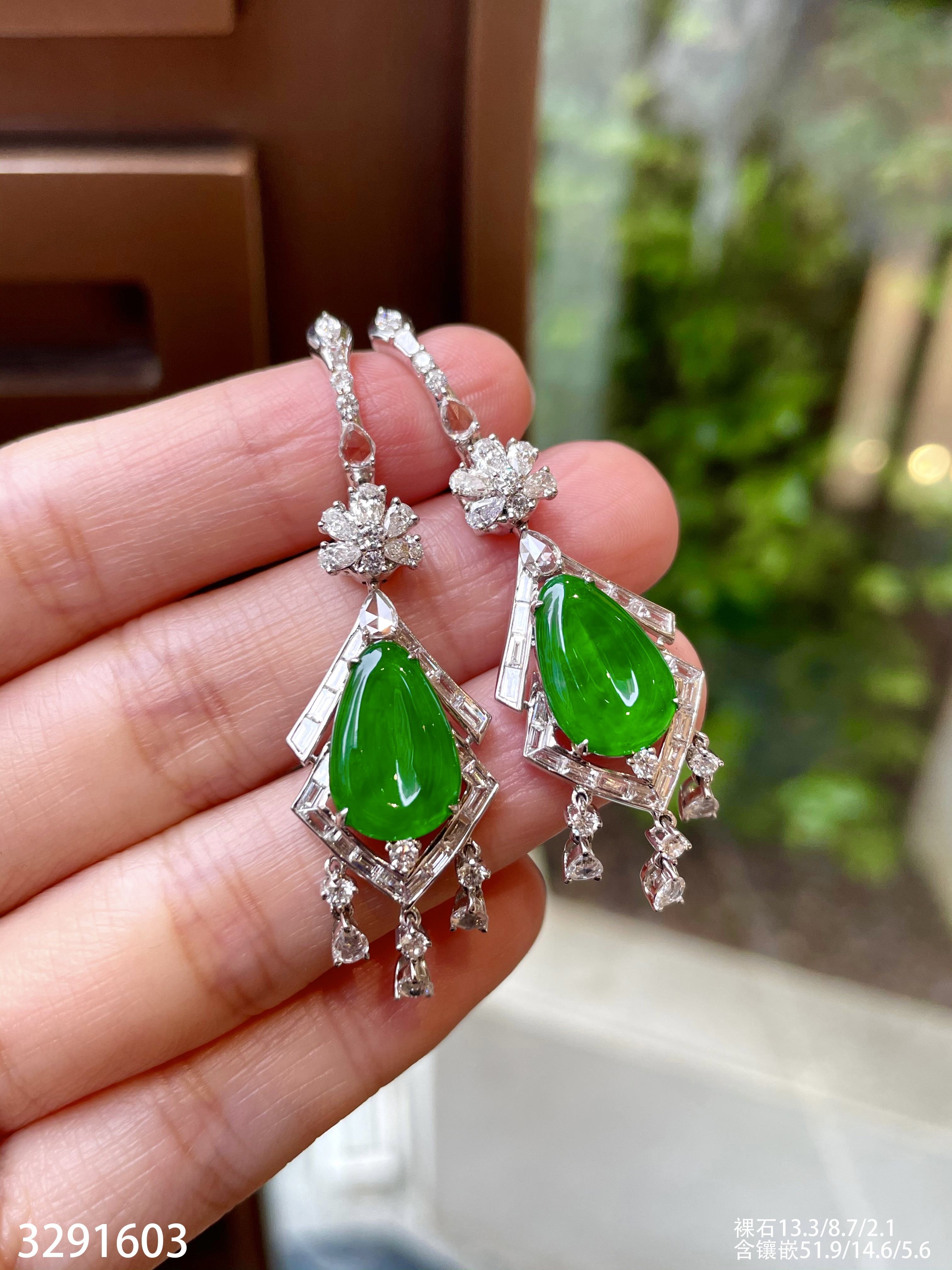 老坑冰帝王绿水滴耳坠 69999【3291603】