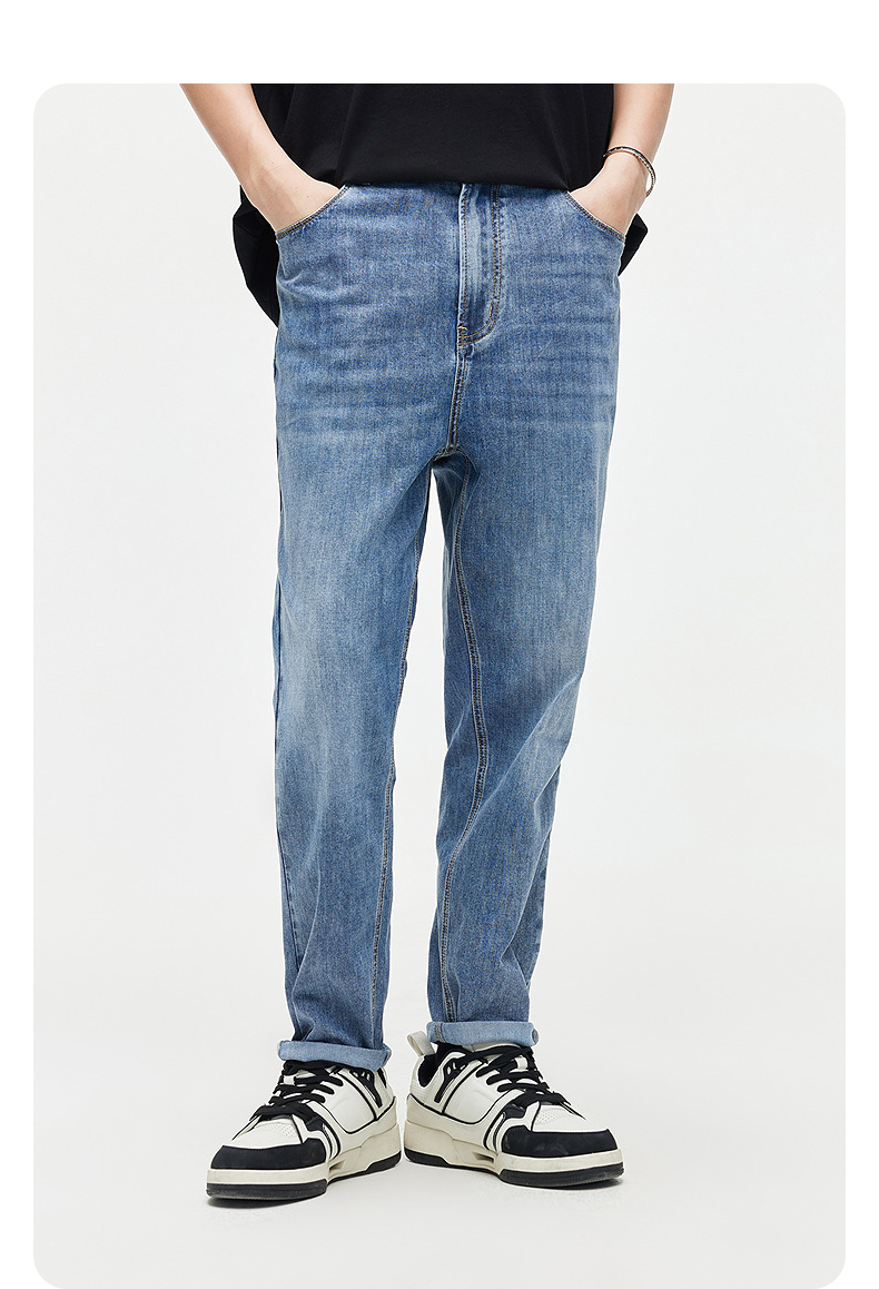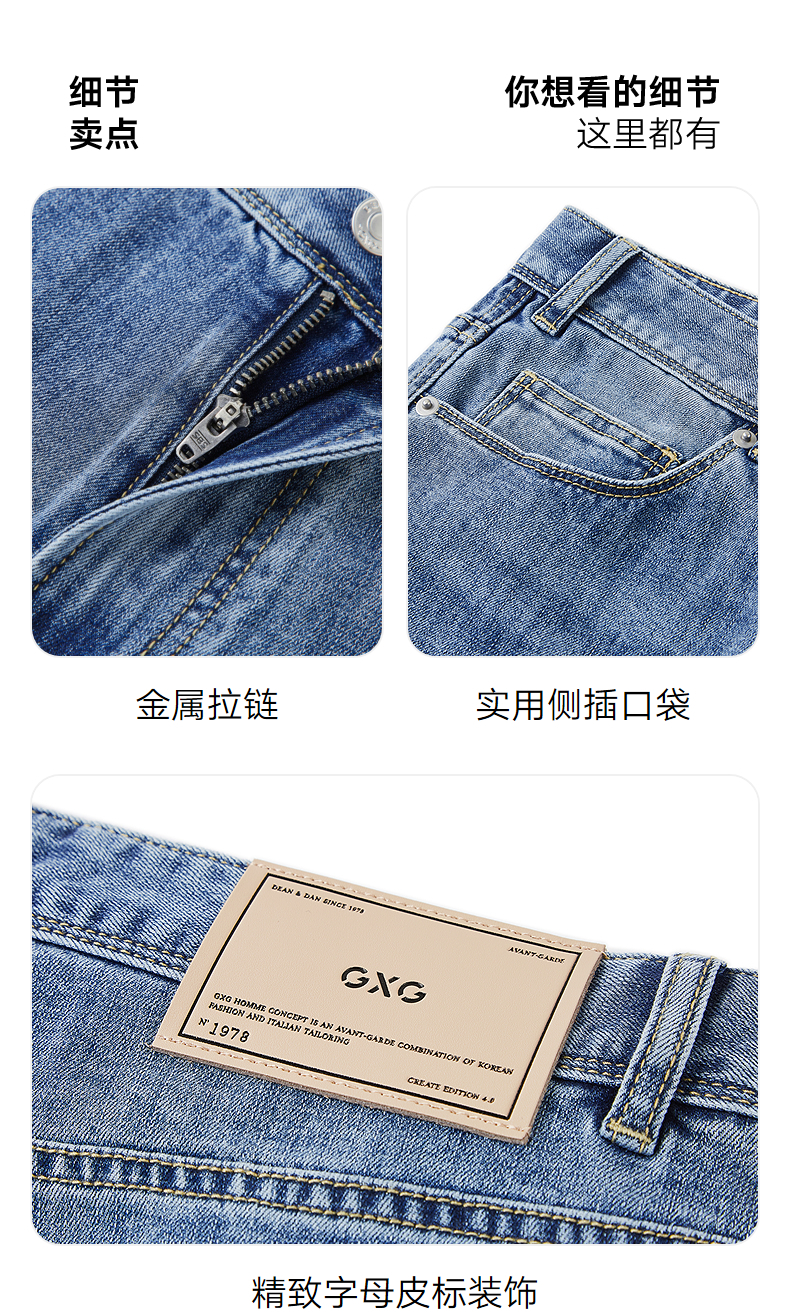 GXG男装 夏季凉感经典水洗休闲直筒牛仔裤男长裤爆款休闲裤