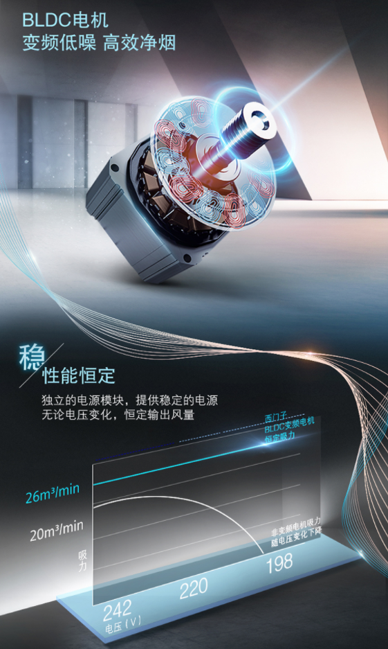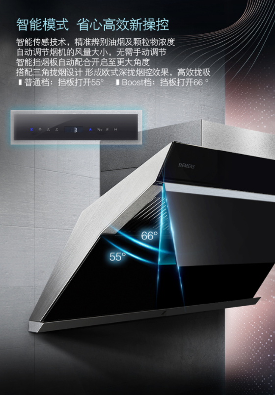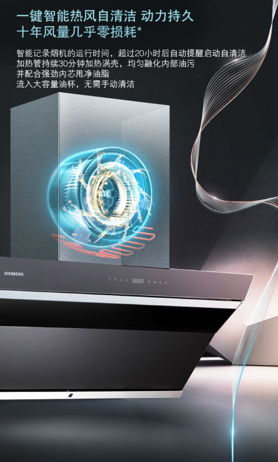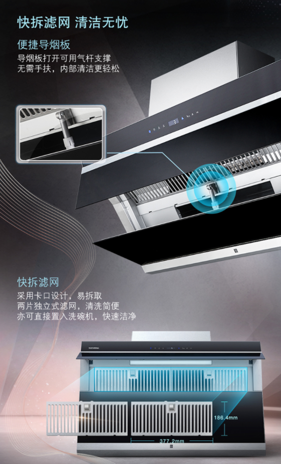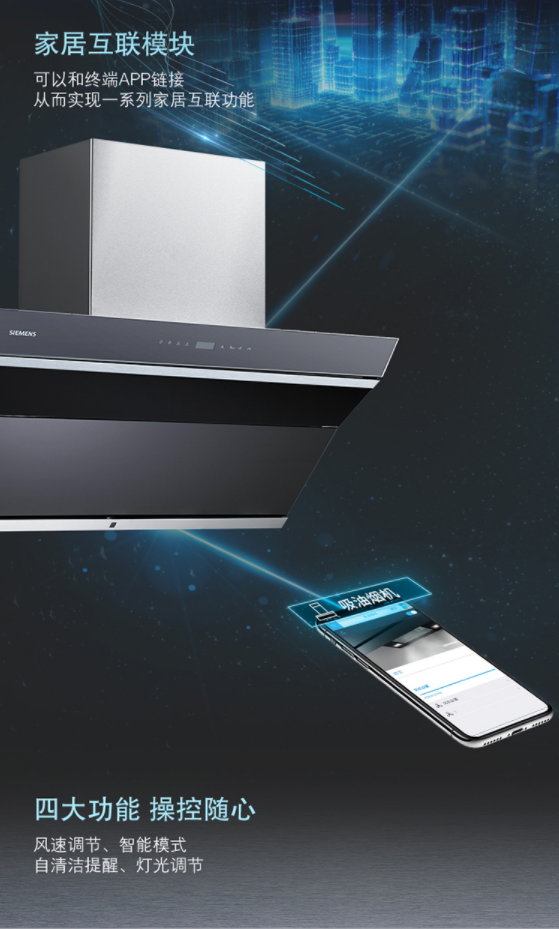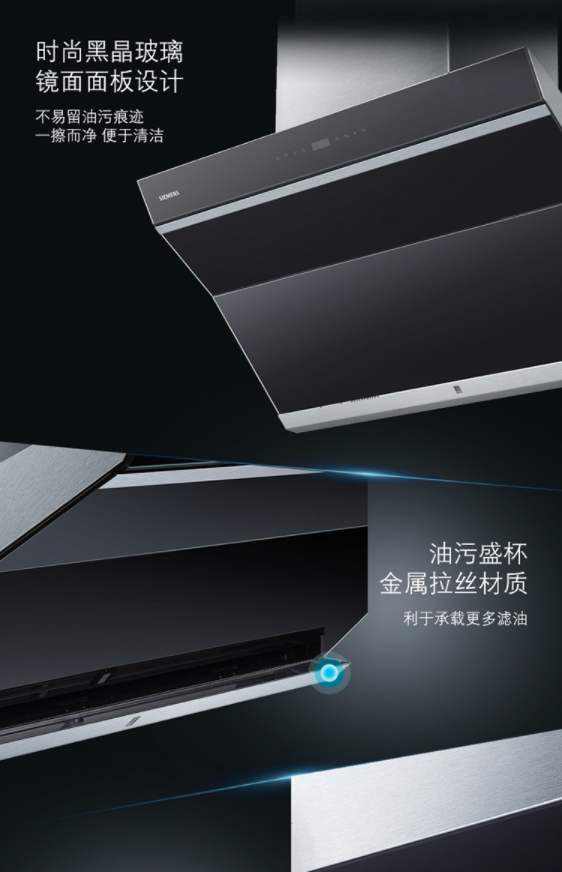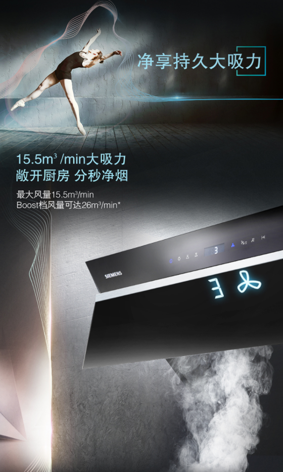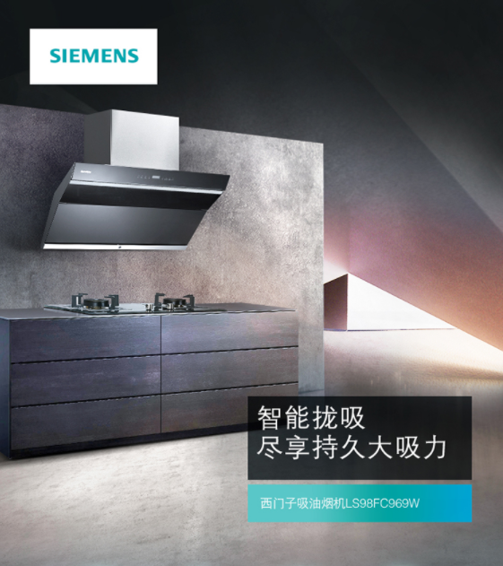 西门子(Siemens)CXW-380-LS98FC969W 90公分 侧吸 抽油烟机 速吸风量26.5m3/min 最大风压1200Pa BLDC变频电机 自清洁 触摸控制