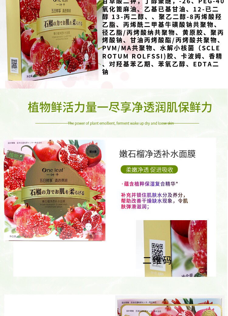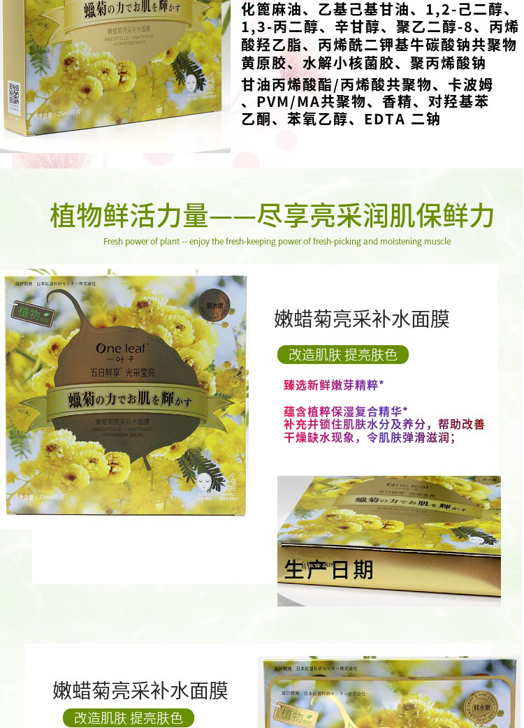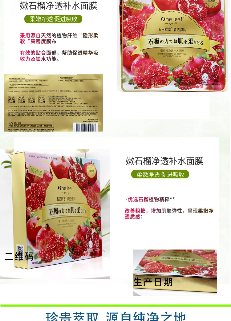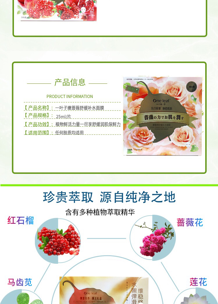 一叶子嫩花果植物精粹面膜 5片/盒效期26年11月