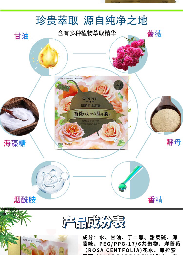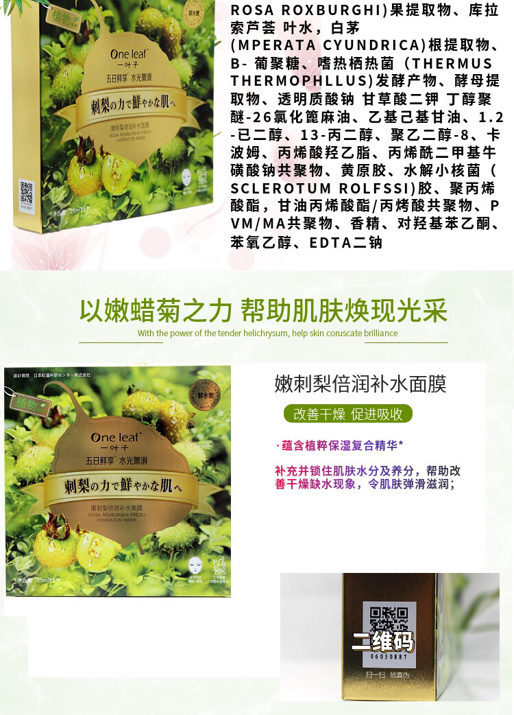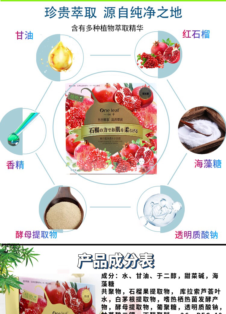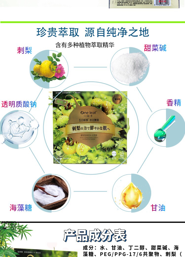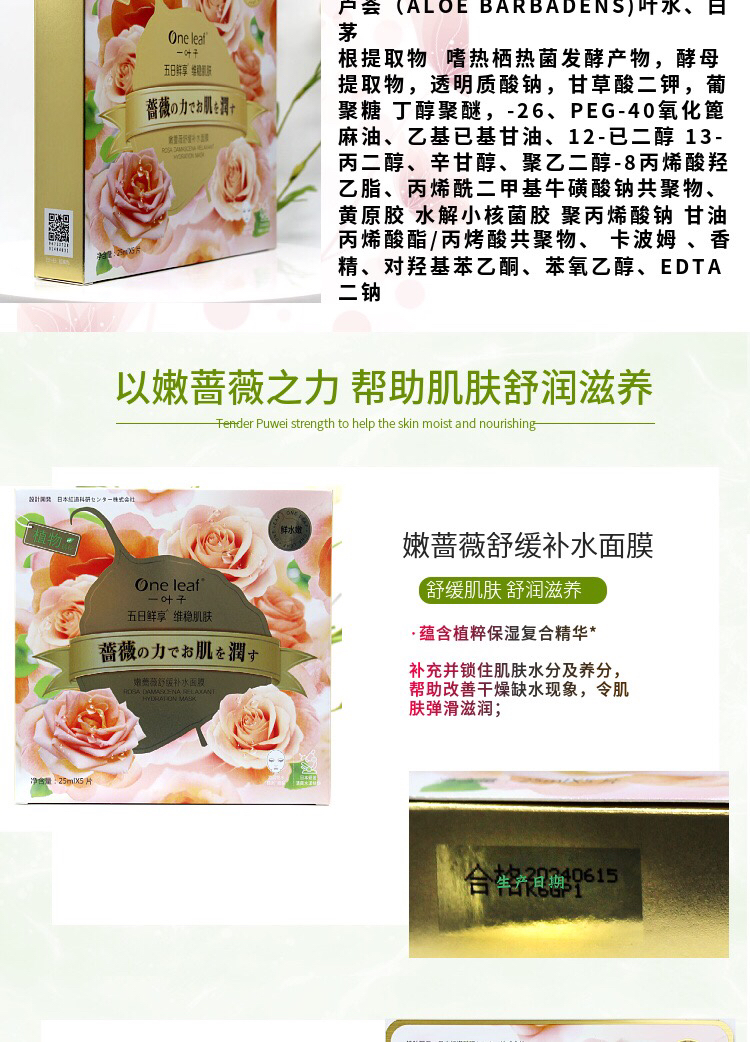 一叶子嫩花果植物精粹面膜 5片/盒效期26年11月