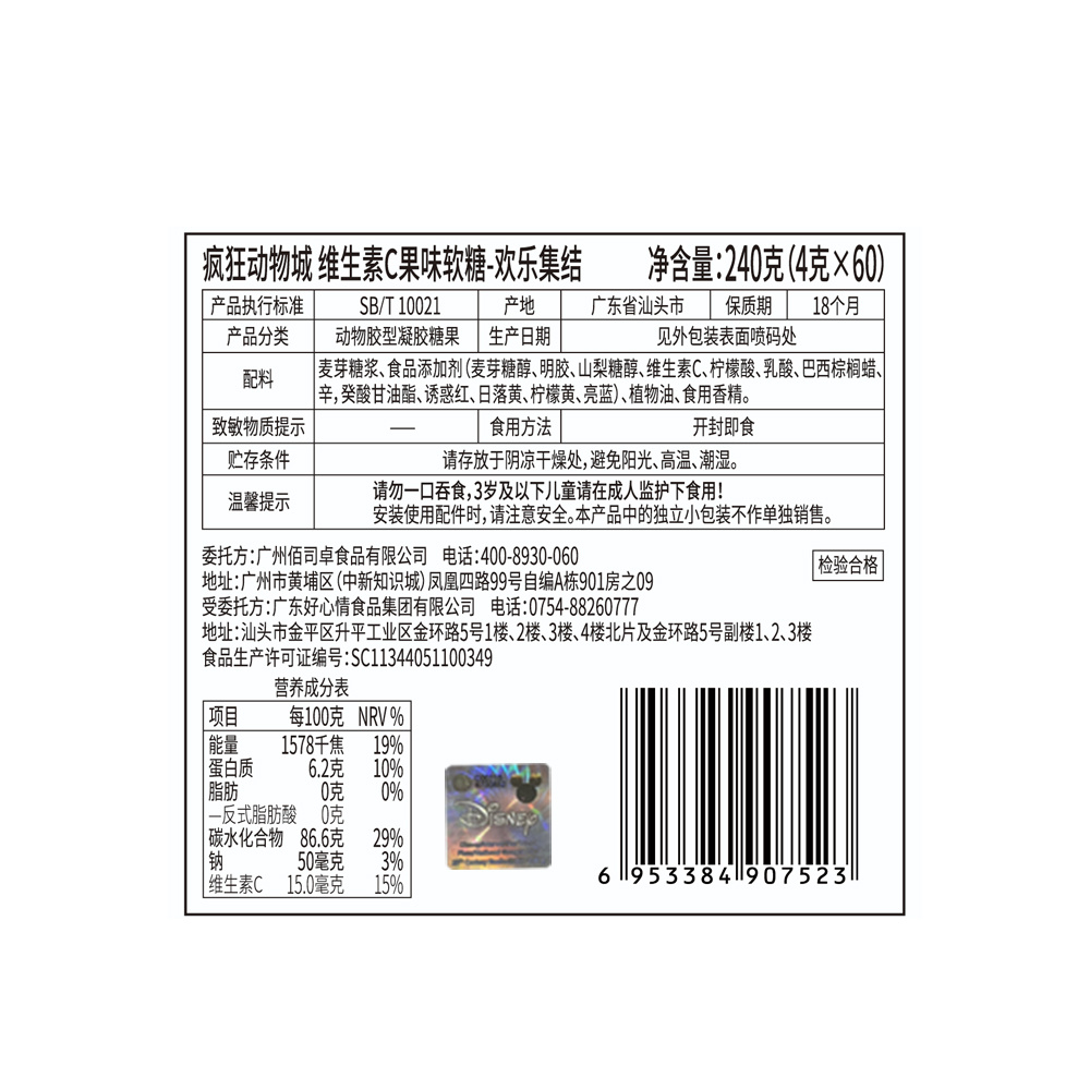 疯狂动物城维生素C果味软糖:2024年12月(随机两个装)/2024年7月(4罐装)
