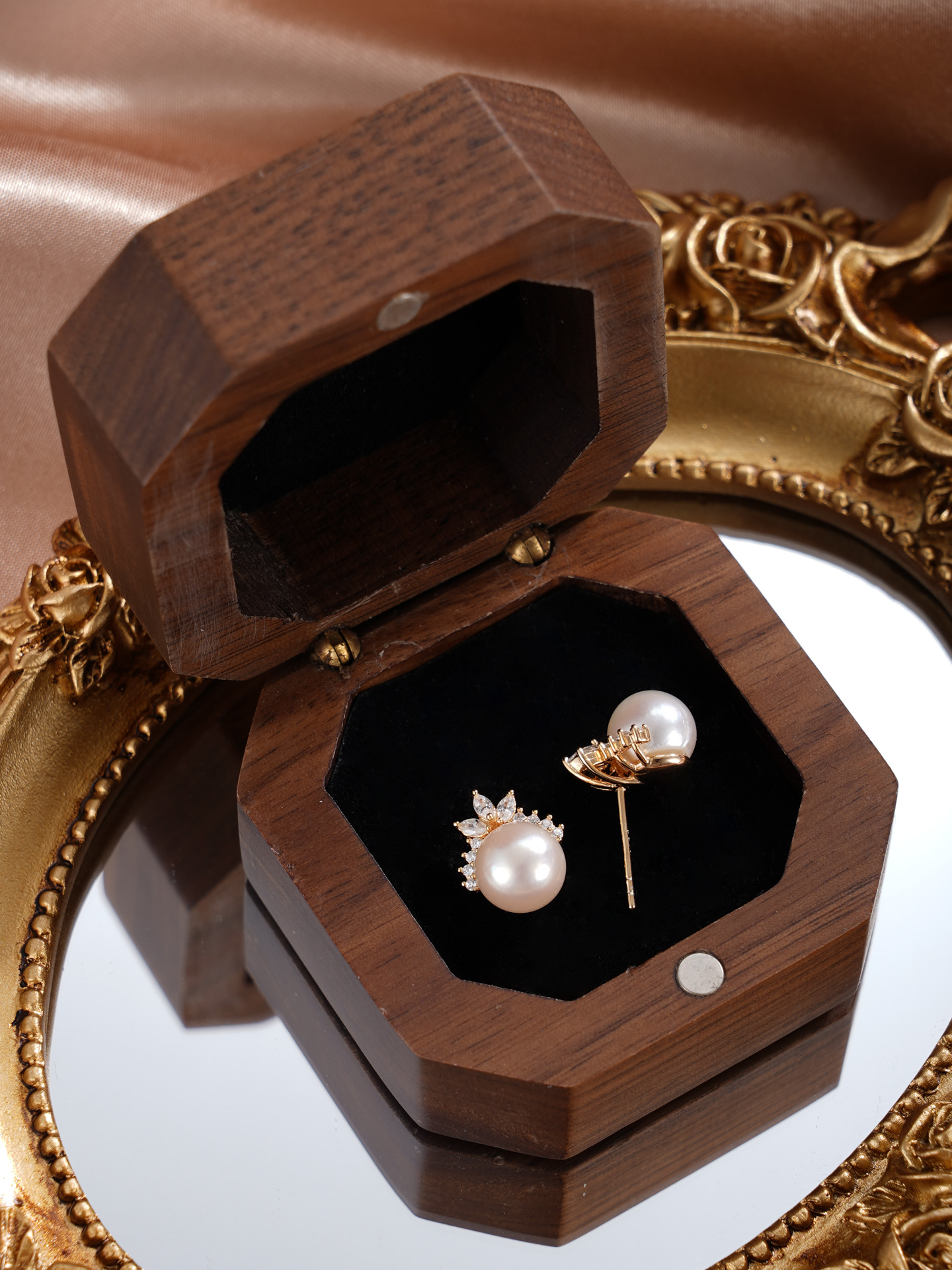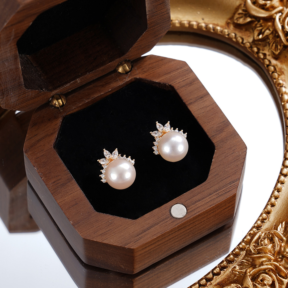 子佩集【月桂冠冕】银S925珍珠惜王妃耳钉【HJYED001】7.5mm珠镀金兰花草2601
