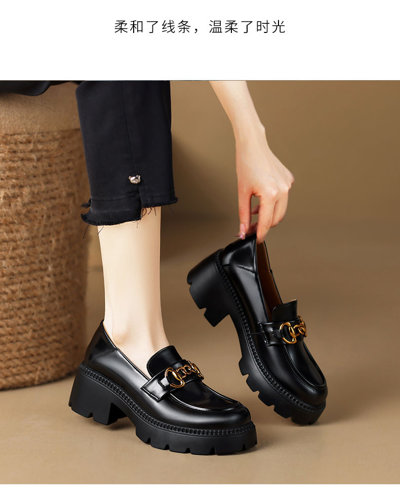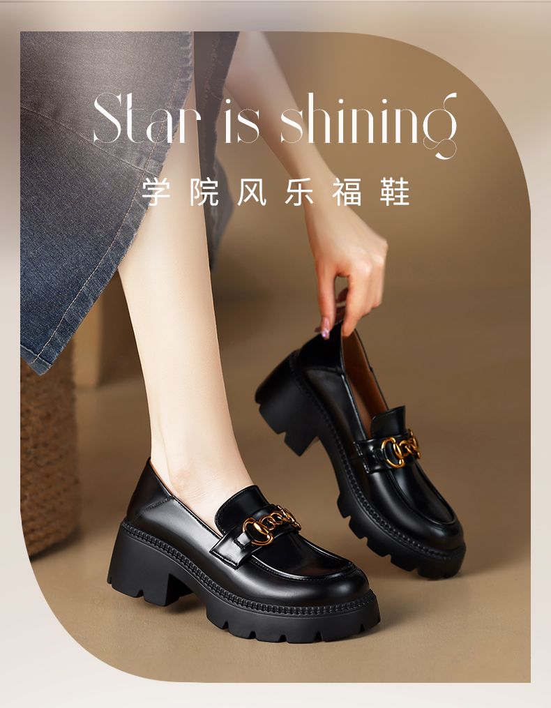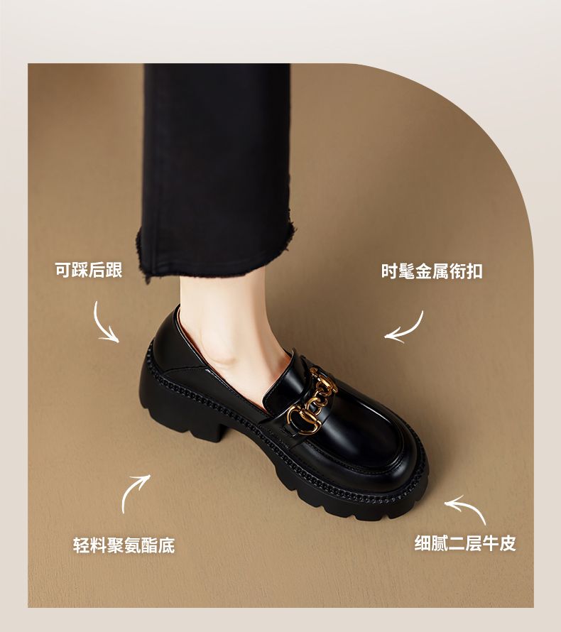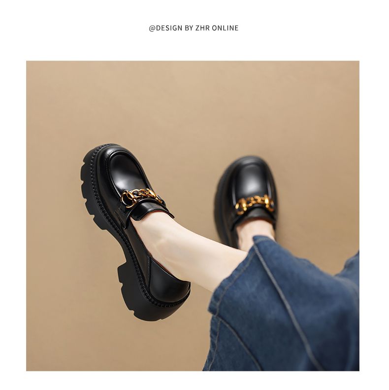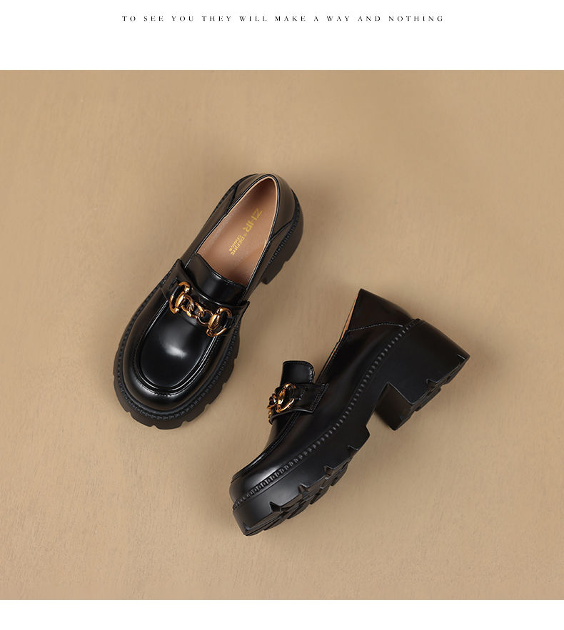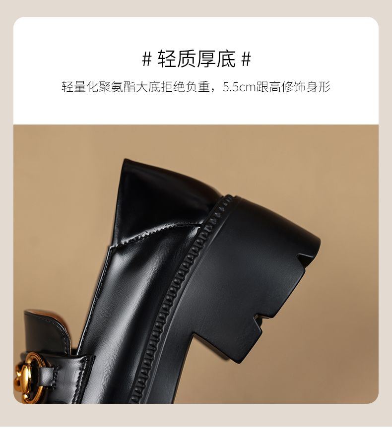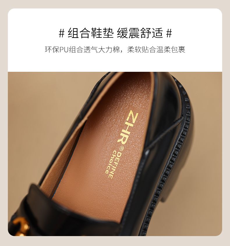 ZHR厚底乐福鞋女鞋秋季新款一脚蹬女鞋英伦风小皮鞋厚底增高