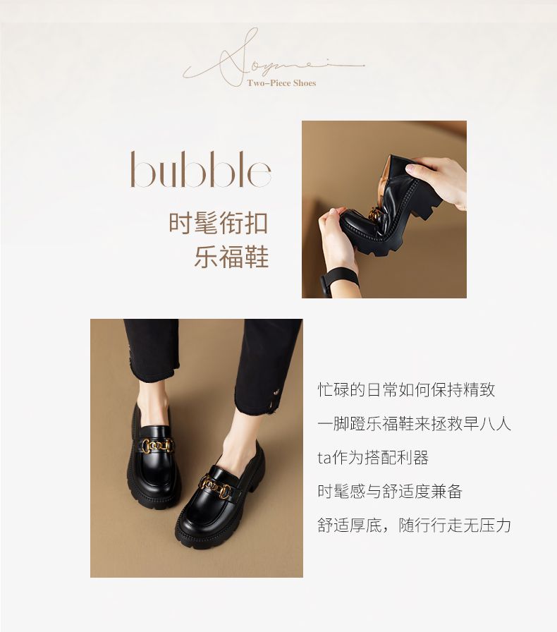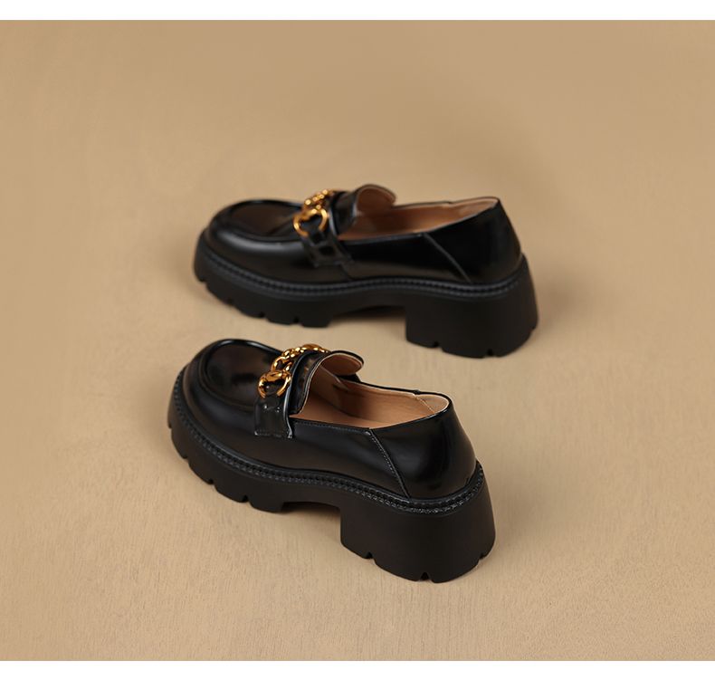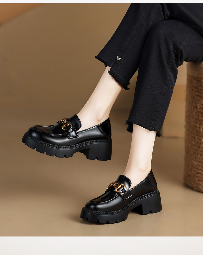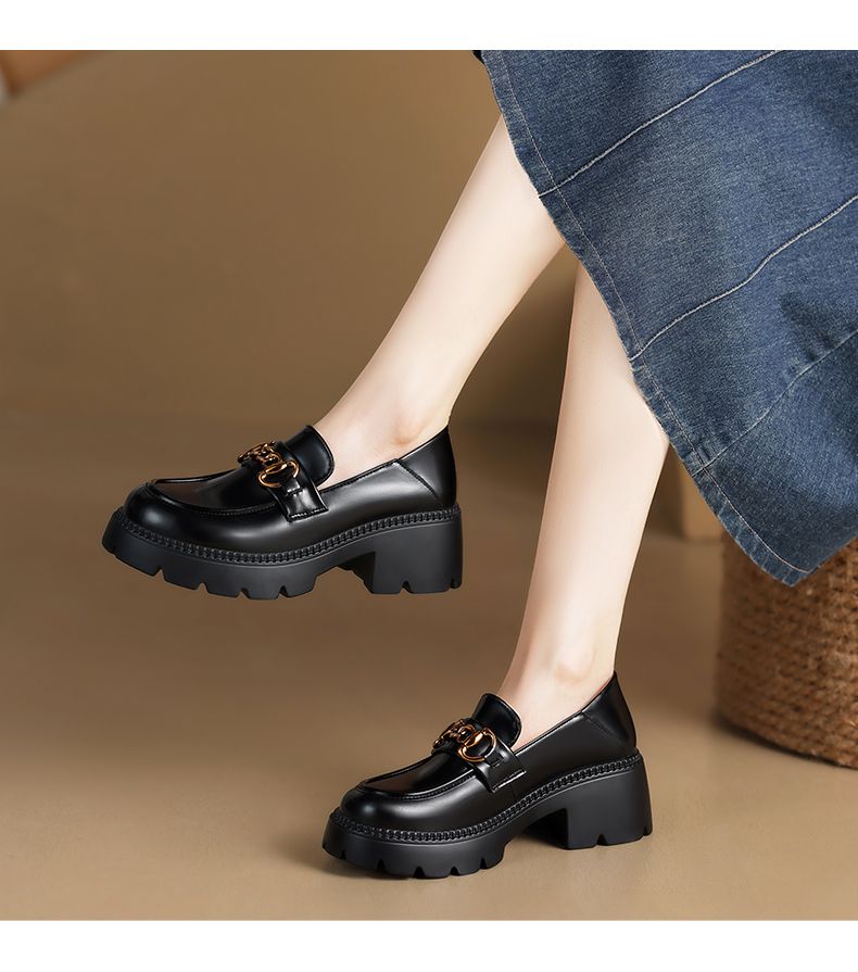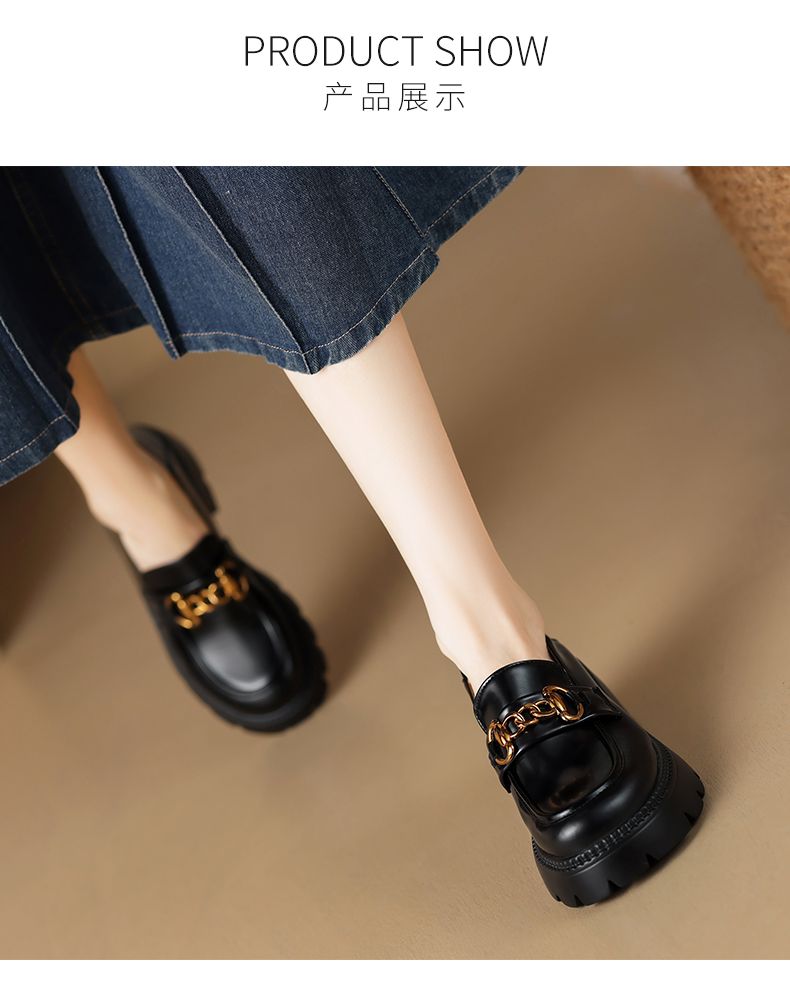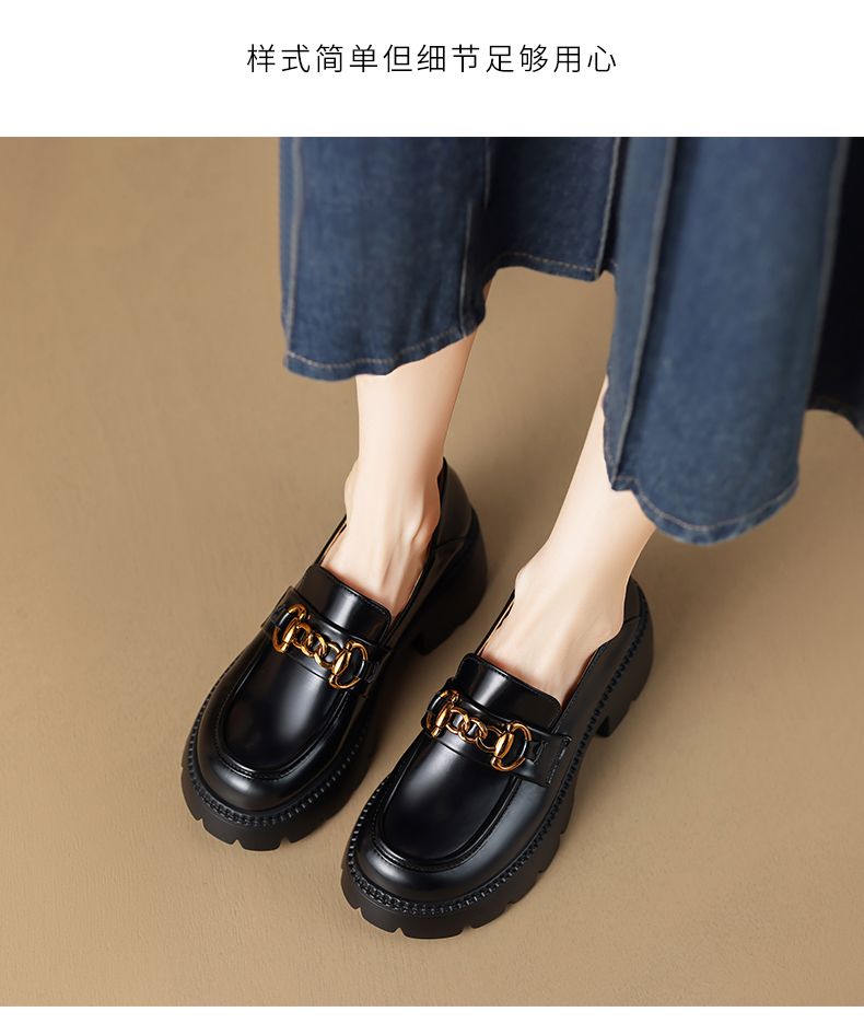 ZHR厚底乐福鞋女鞋秋季新款一脚蹬女鞋英伦风小皮鞋厚底增高