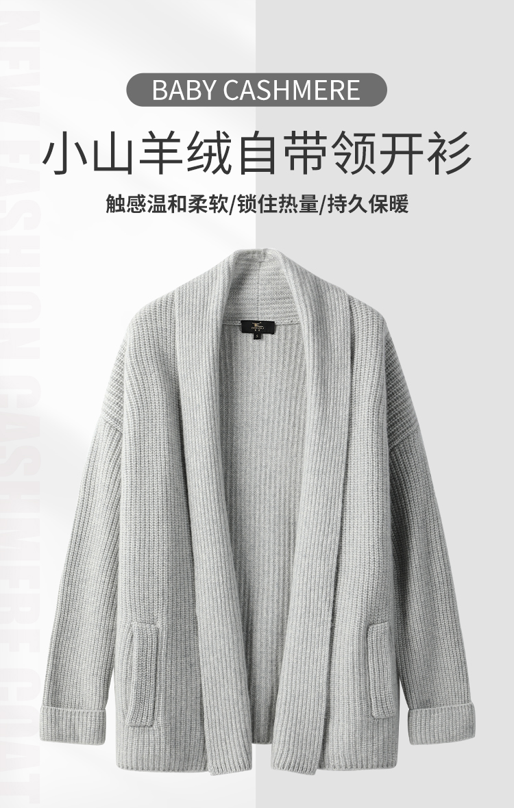 东黎 • 小山羊绒女士秋冬宽松落肩中长款开衫 2090