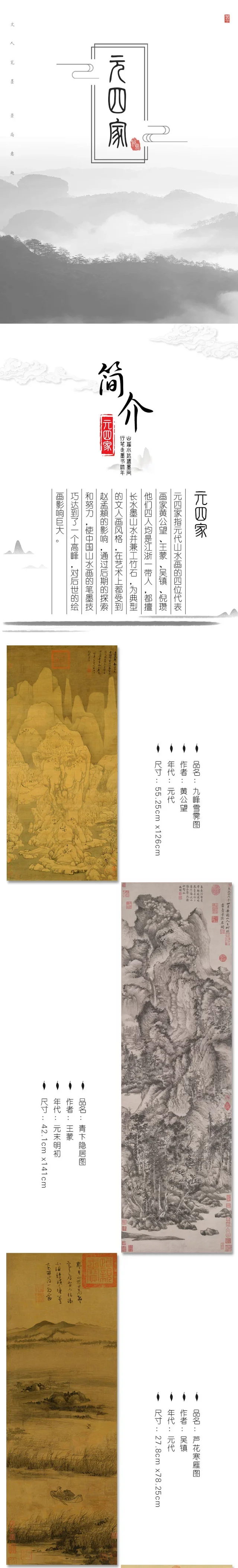 元四家经典画作《九峰雪霁图》《青卞隐居图》《芦花寒雁图》《秋亭嘉树图》 原大高清宣纸复制(未装裱)