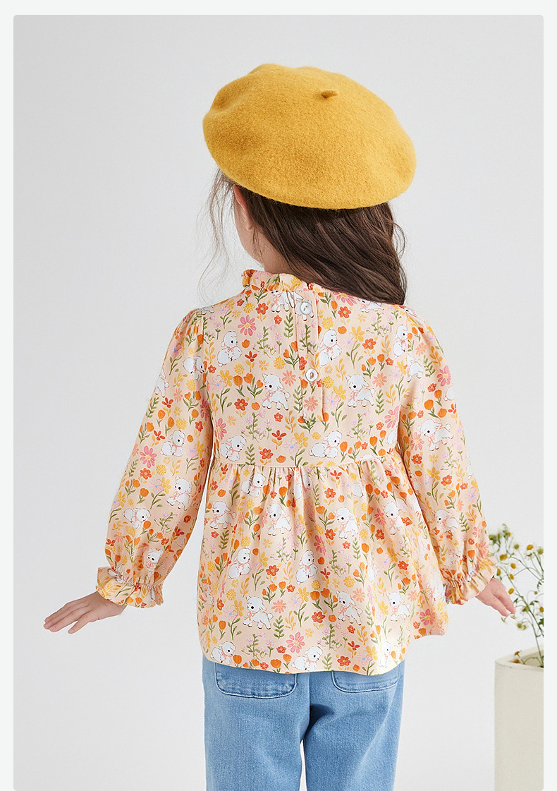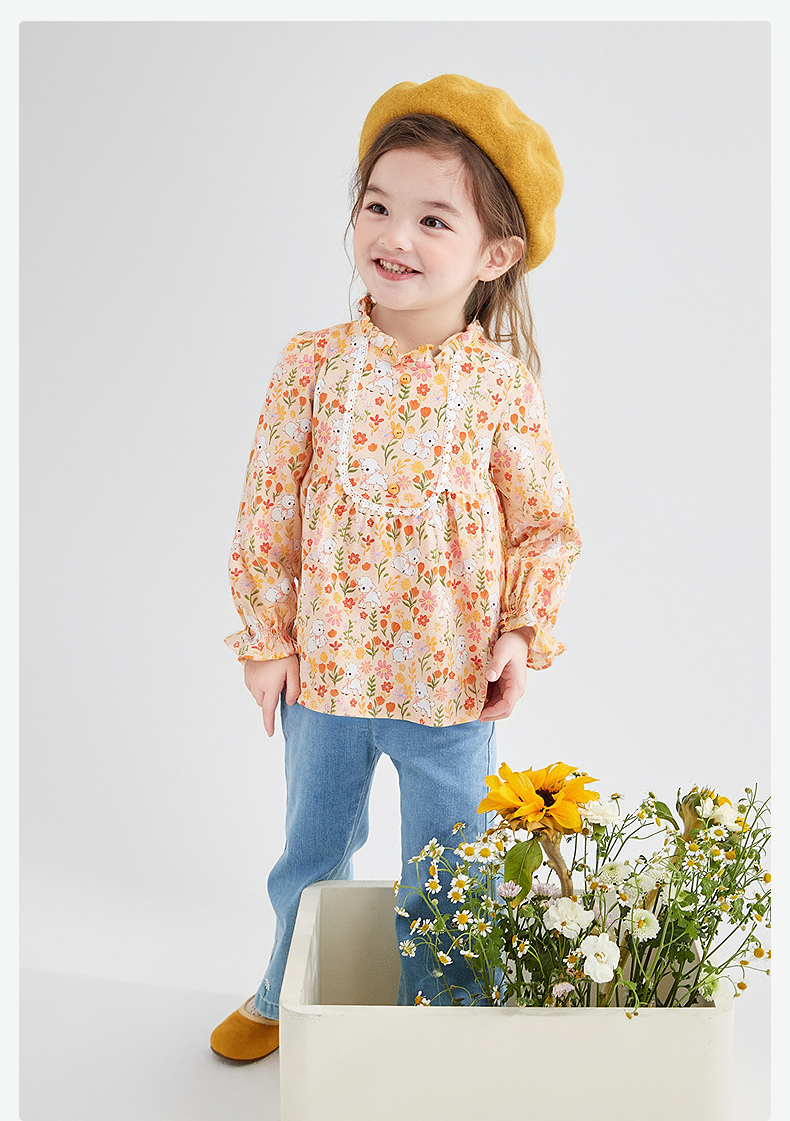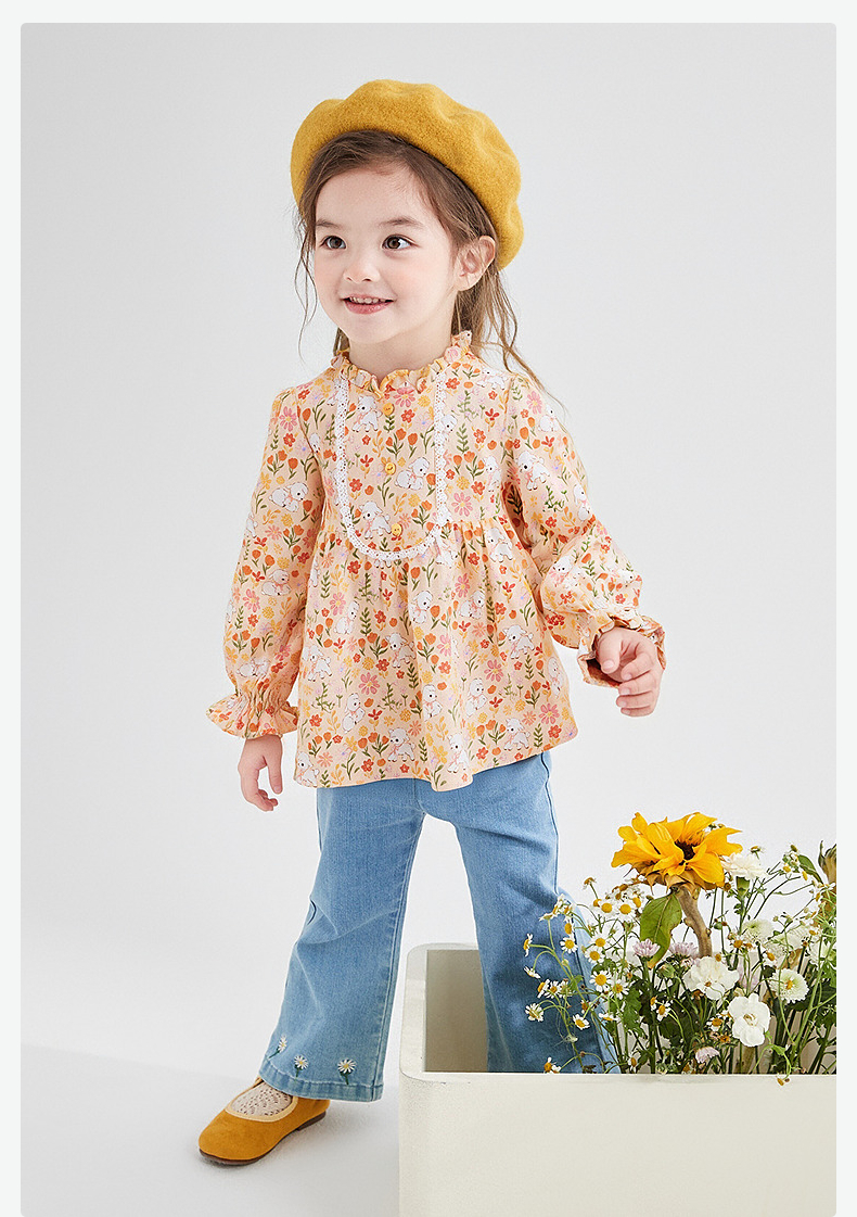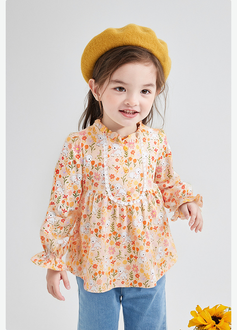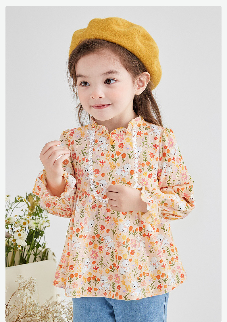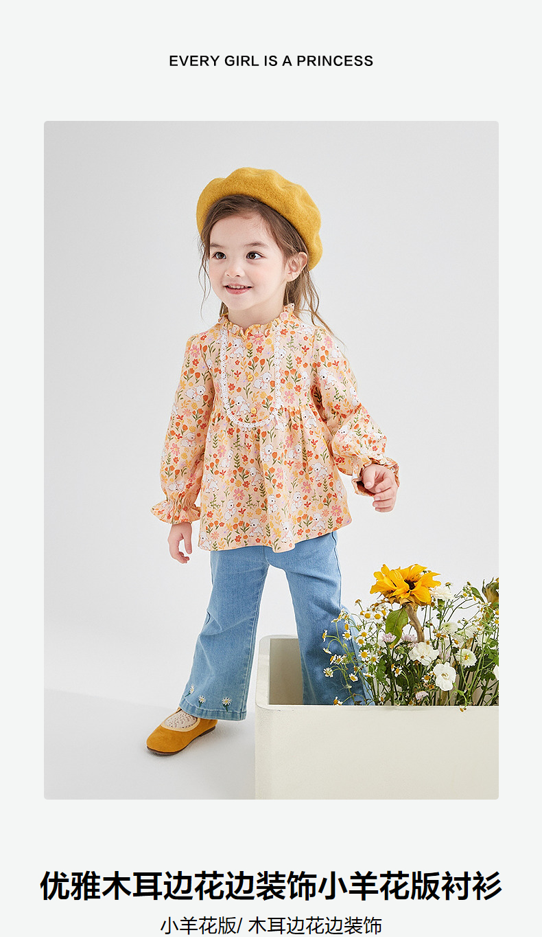 笛莎Deesha 童装女童衬衫2025秋新款女童优雅木耳边花边装饰小羊花版衬衫