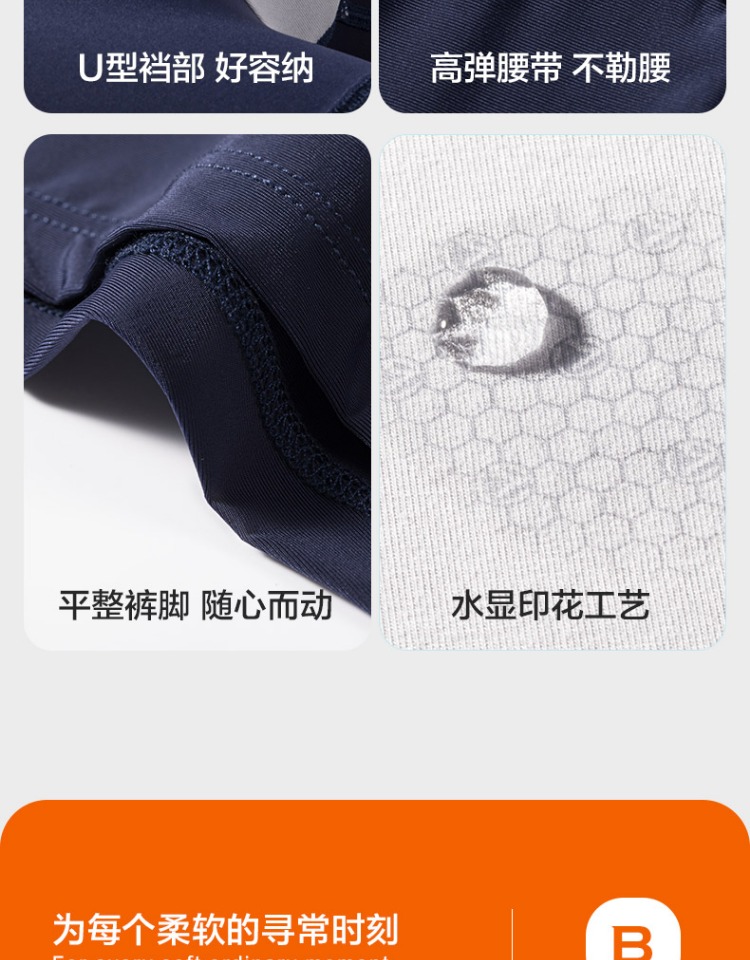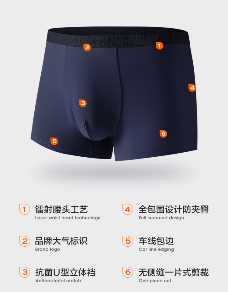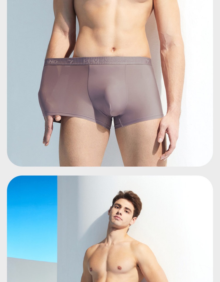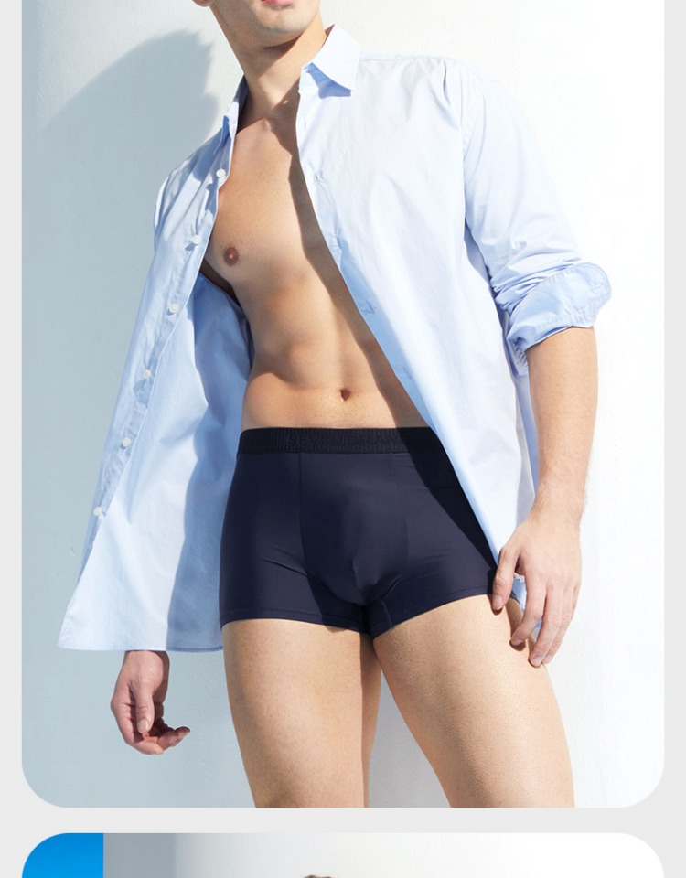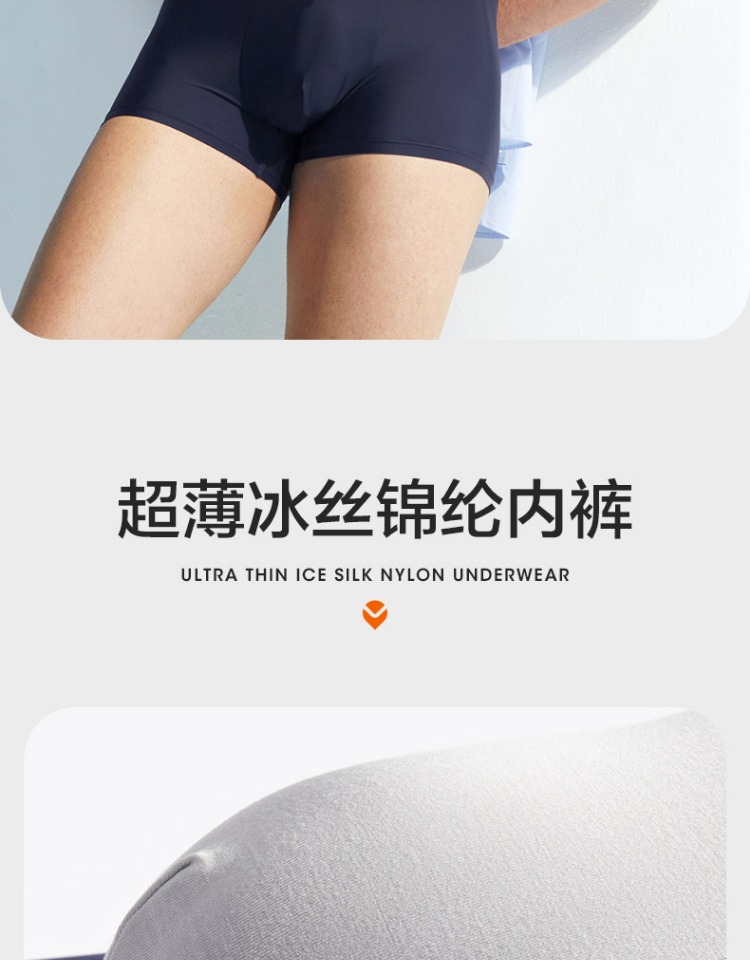 【礼盒3条装】柒牌内裤男士平角裤冰丝锦纶夏季薄款四角裤男式抗菌短裤衩礼盒3条装 124F70260