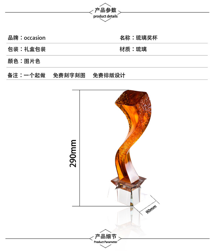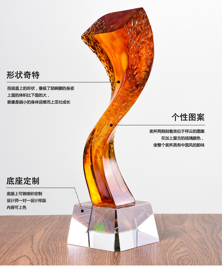 琉璃奖杯定制桌面摆件开业纪念品企业表彰奖品奖杯定做高档奖杯