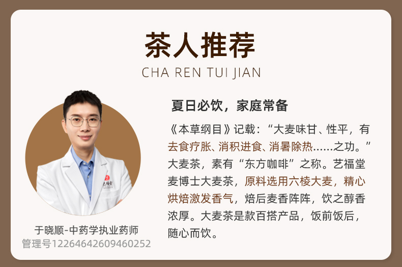 艺福堂花草茶 散装麦博士大麦茶 原味 麦芽茶 450g/罐*2