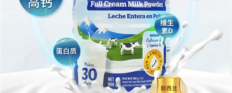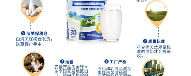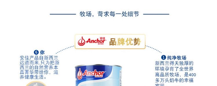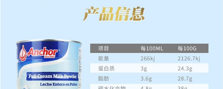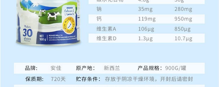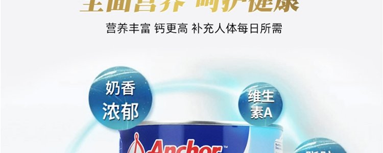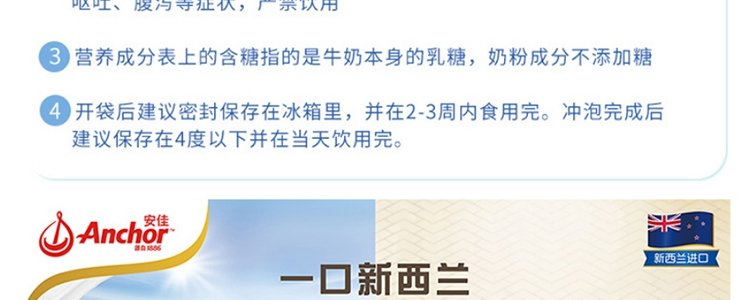 【保税】新西兰Anchor 安佳成人奶粉全脂/脱脂罐装 900g,适合三岁以上人群