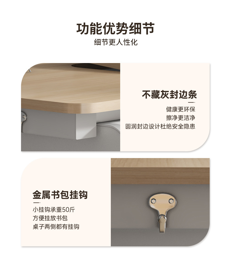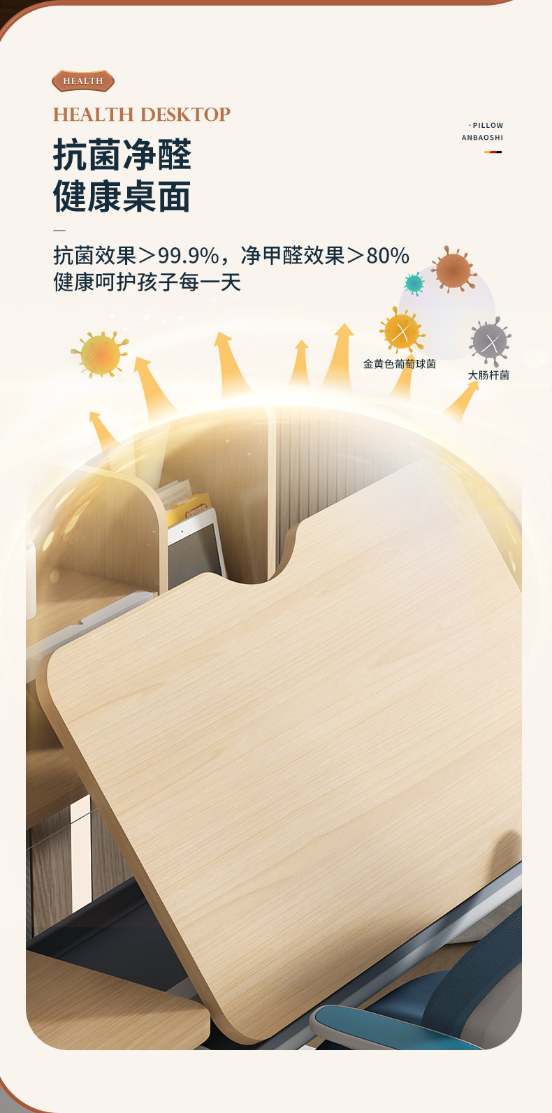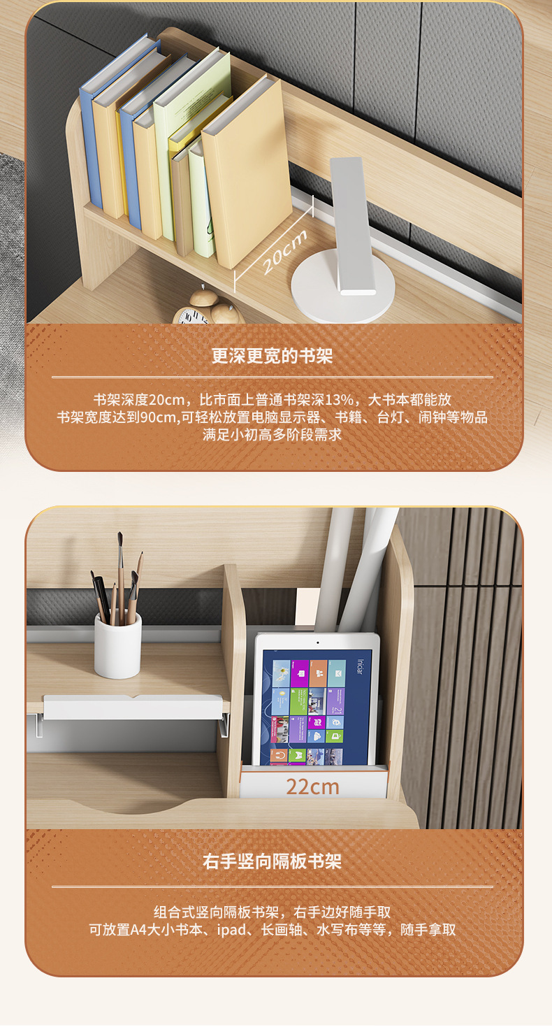 【儿童学习书桌可升降实木课桌家用小学生写字套装 商品图10