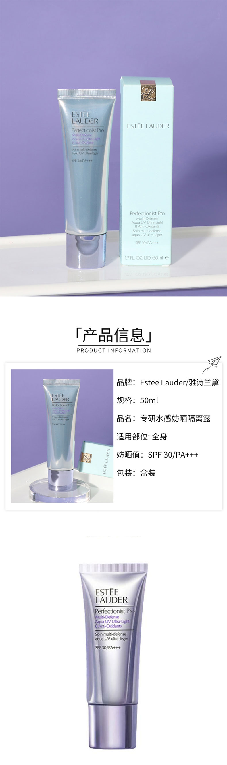 雅诗兰黛线雕专研水感防晒隔离霜50ml 防晒50ml SPF30