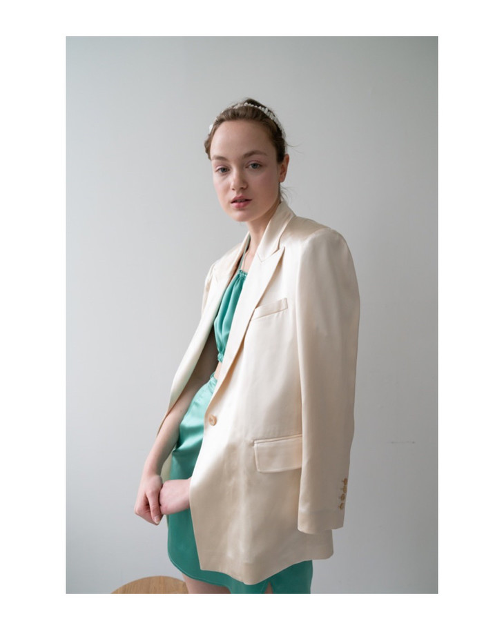 西装材质:外层40姆米天然真丝 /内层双面两色16姆米天然真丝(可拆卸)