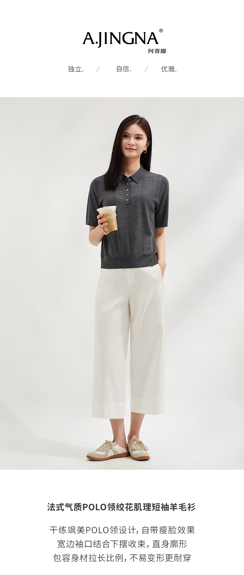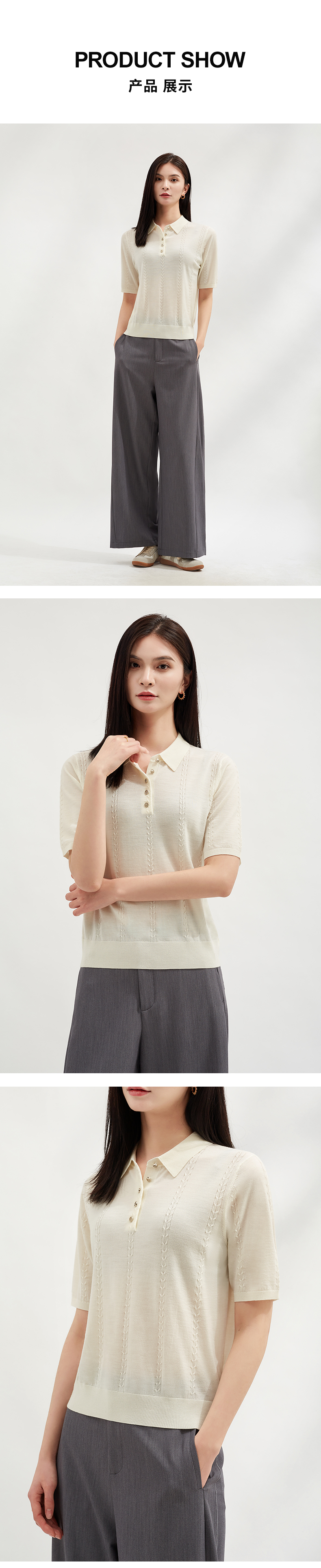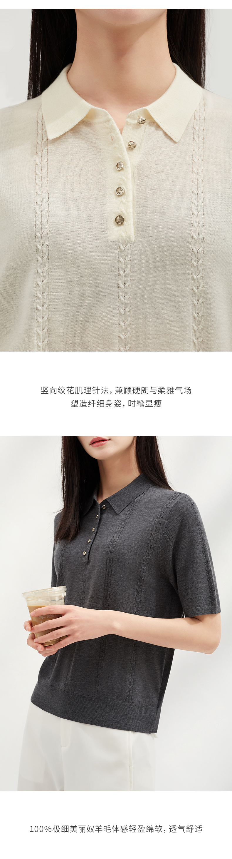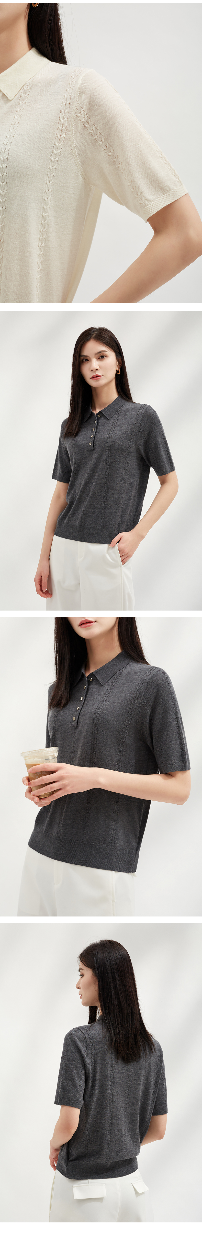 【干练飒美】阿菁娜POLO领绞花肌理短袖羊毛衫F30C301011
