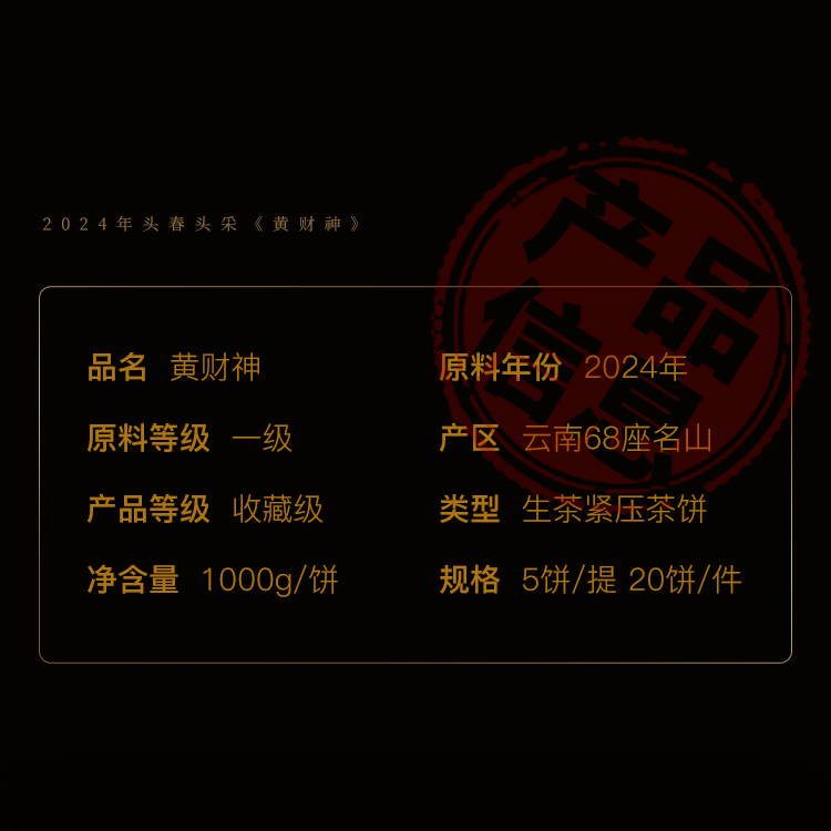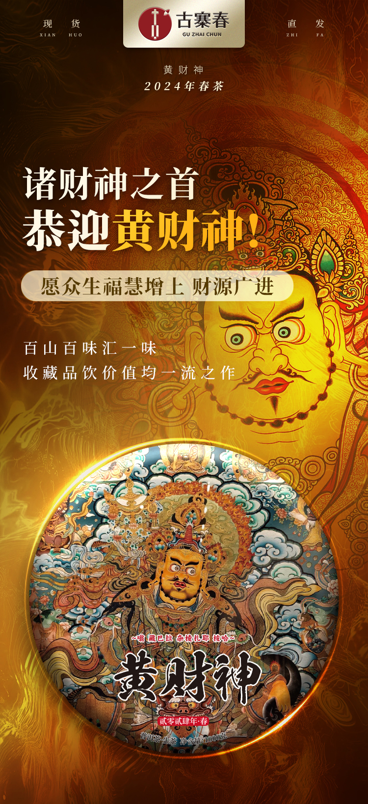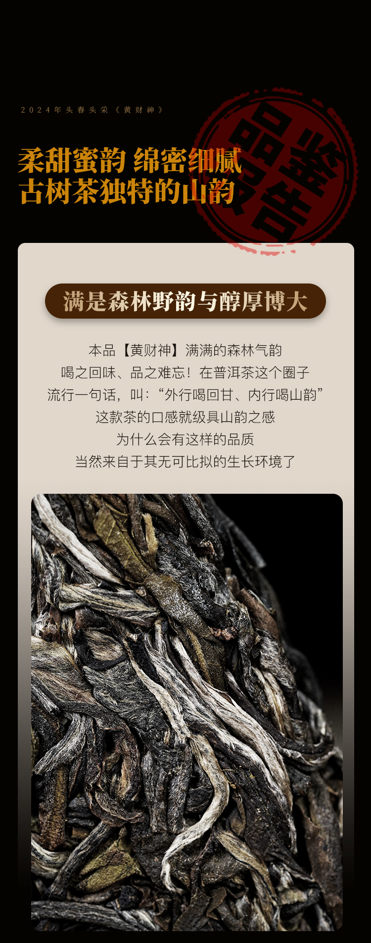 【最后4饼,即将售罄】【黄财神】诸财神之首!2024年春茶云南68座名山拼配普洱茶生茶;愿众生福慧增上 财源广进!1000g/饼 拍5发6 拍20发25 每饼额外赠茶架*1