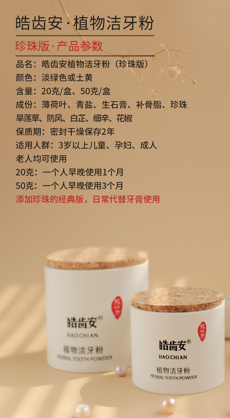 陈修园·古方 | 皓齿安·植物洁牙粉20克/50克