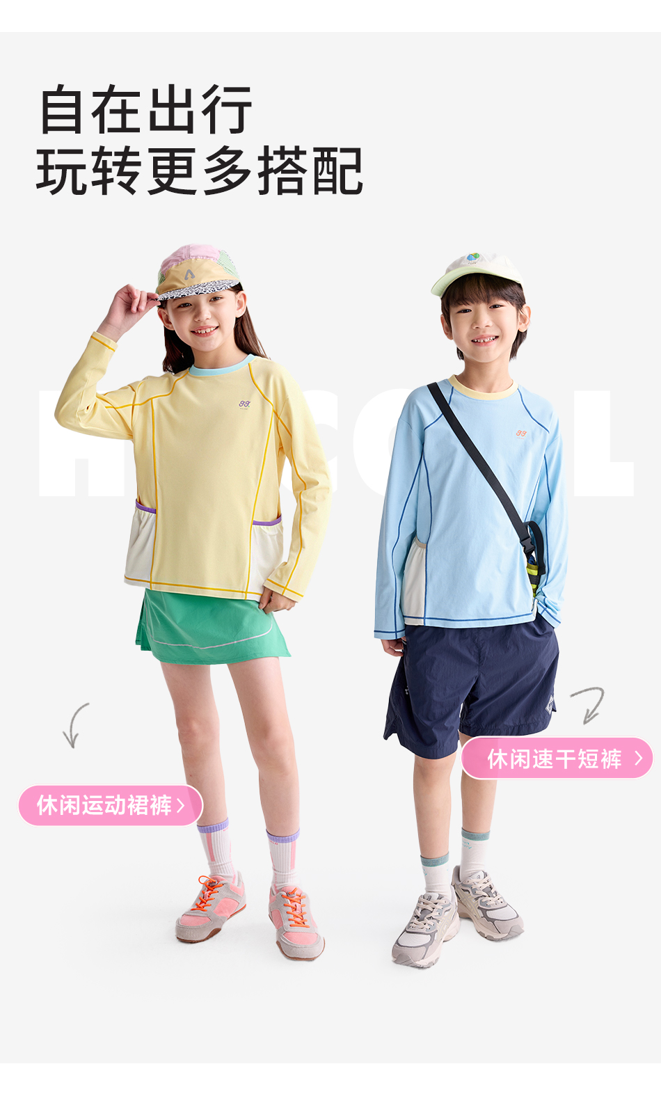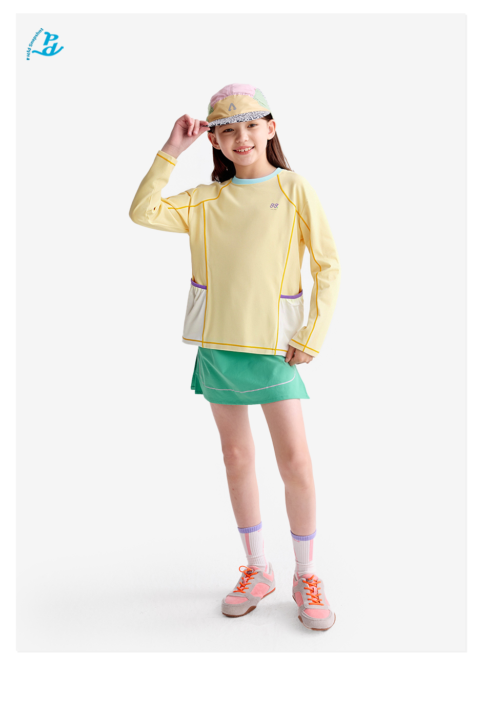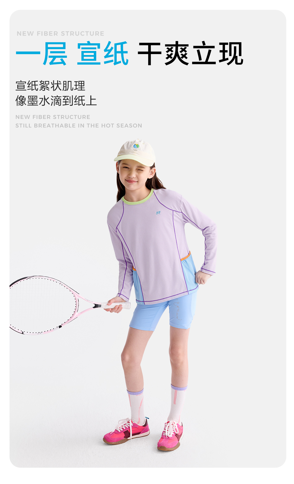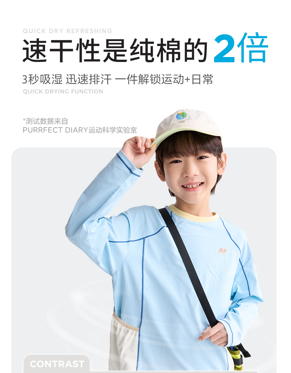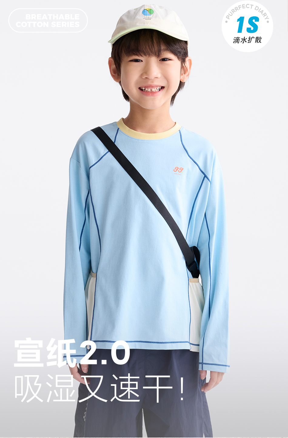 fx-咕噜日记儿童撞色口袋运动T恤男童宣纸速干长袖t女童弹力防晒打底PCTX2615