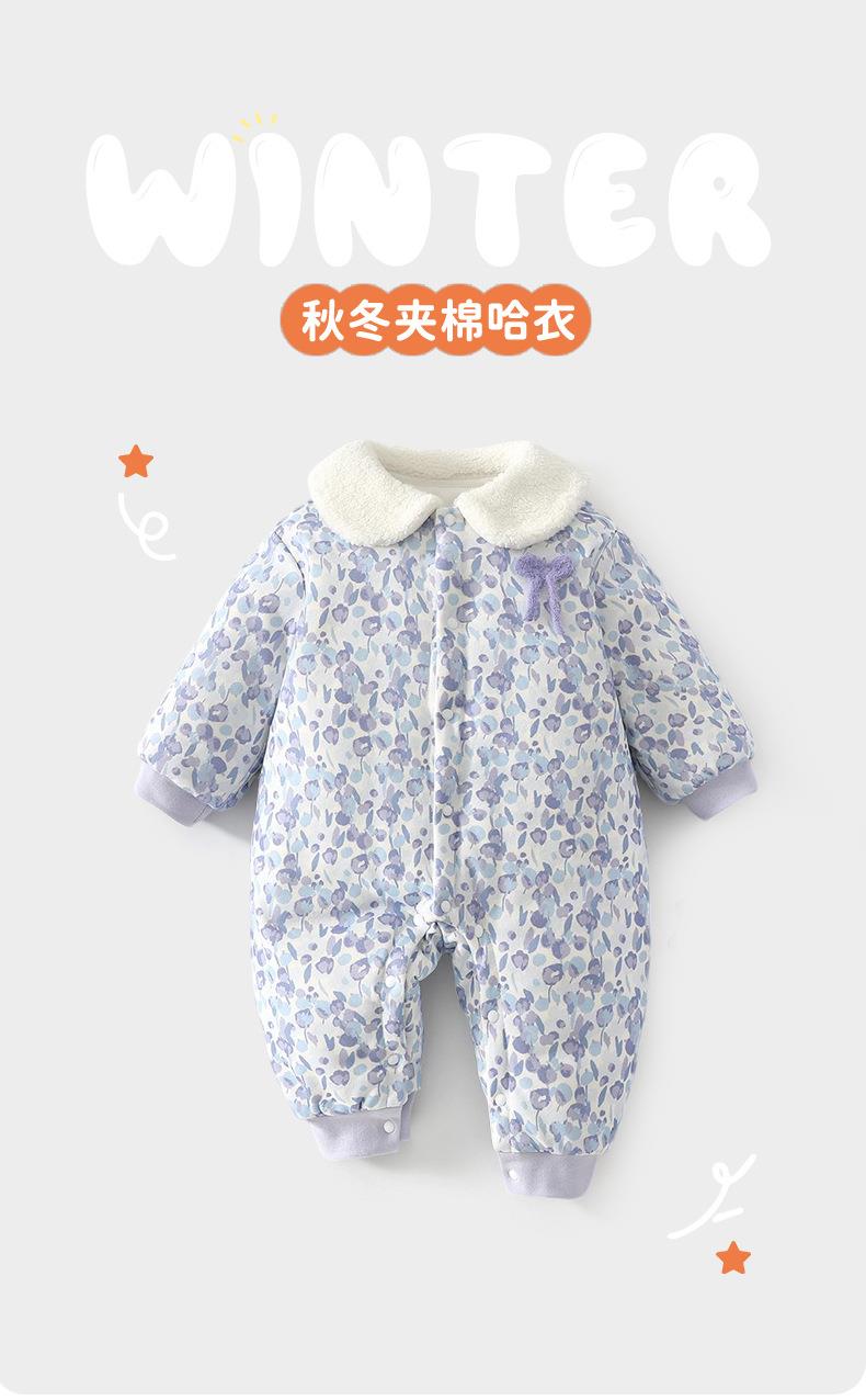 冬季婴儿夹棉加厚连体衣长袖安阳静华制衣厂长爬棉服女宝保暖衣服