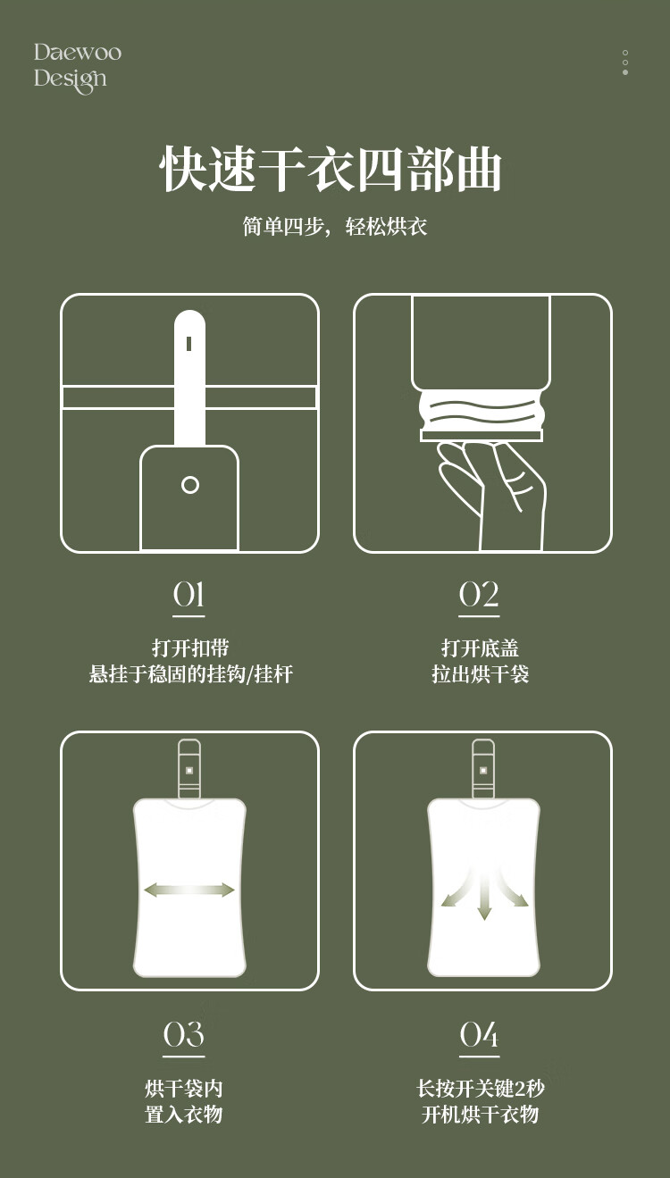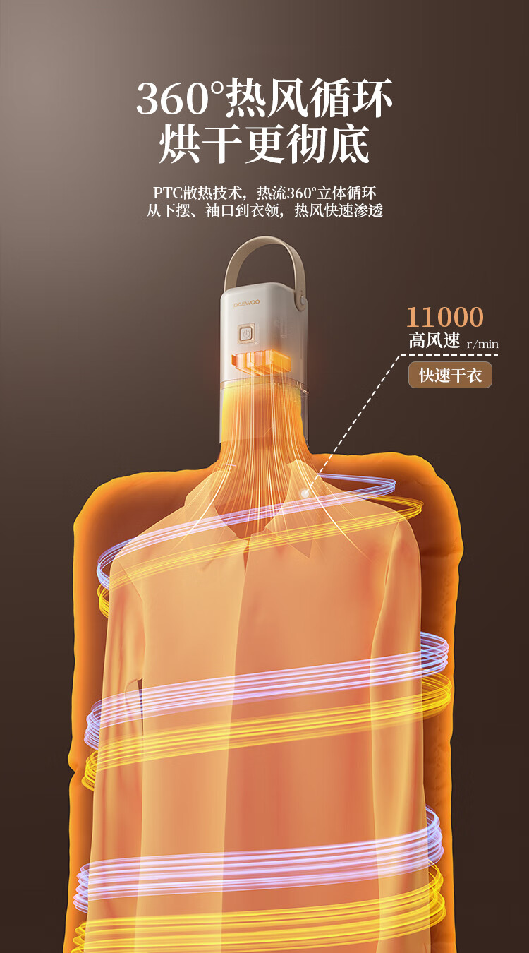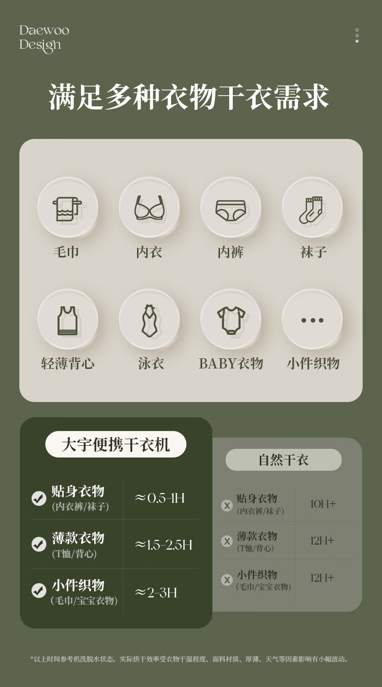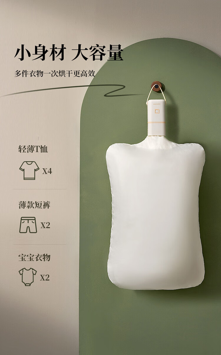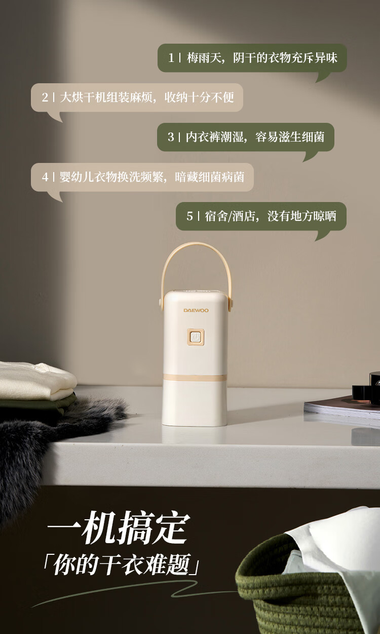 大宇(DAEWOO)便携式烘干机家用烘衣机小型烘干衣服神器旅行宿舍婴儿内衣裤可折叠干衣机 DB03 Plus版