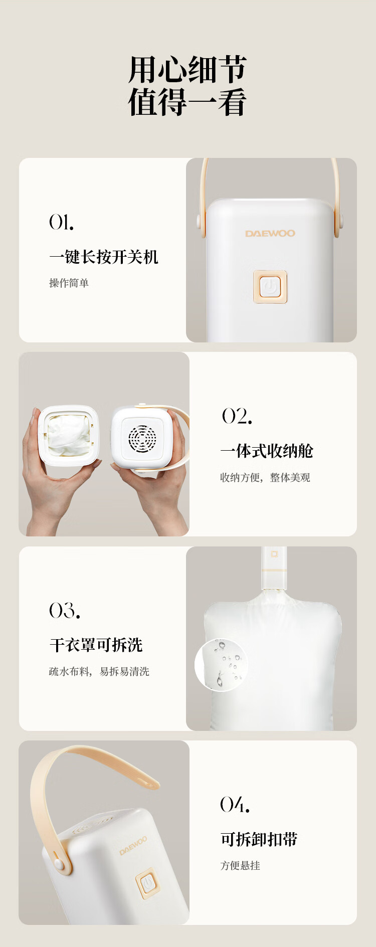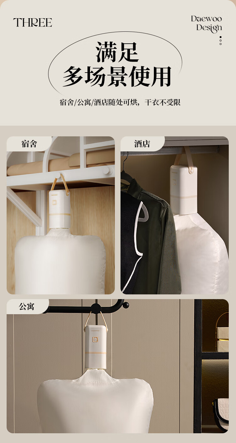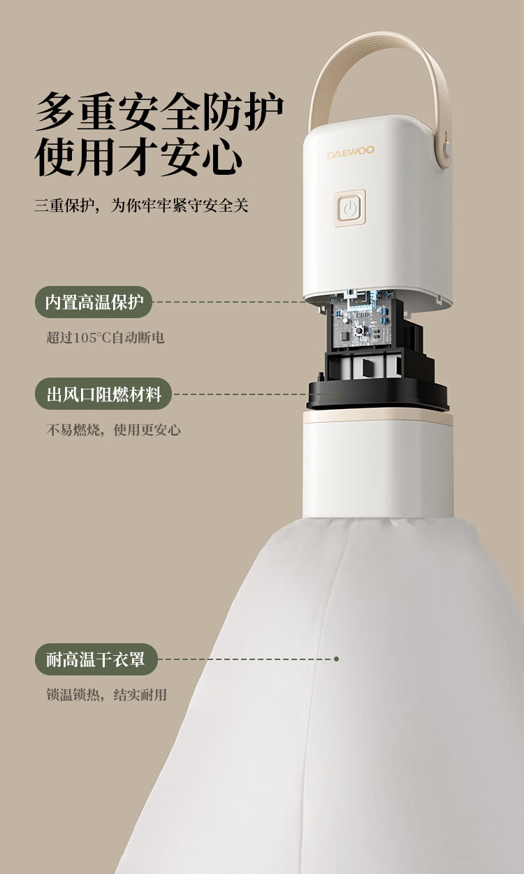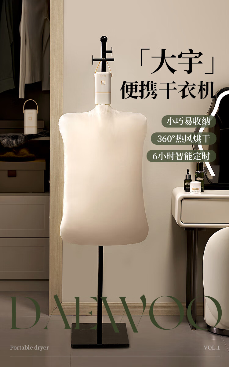 大宇(DAEWOO)便携式烘干机家用烘衣机小型烘干衣服神器旅行宿舍婴儿内衣裤可折叠干衣机 DB03 Plus版