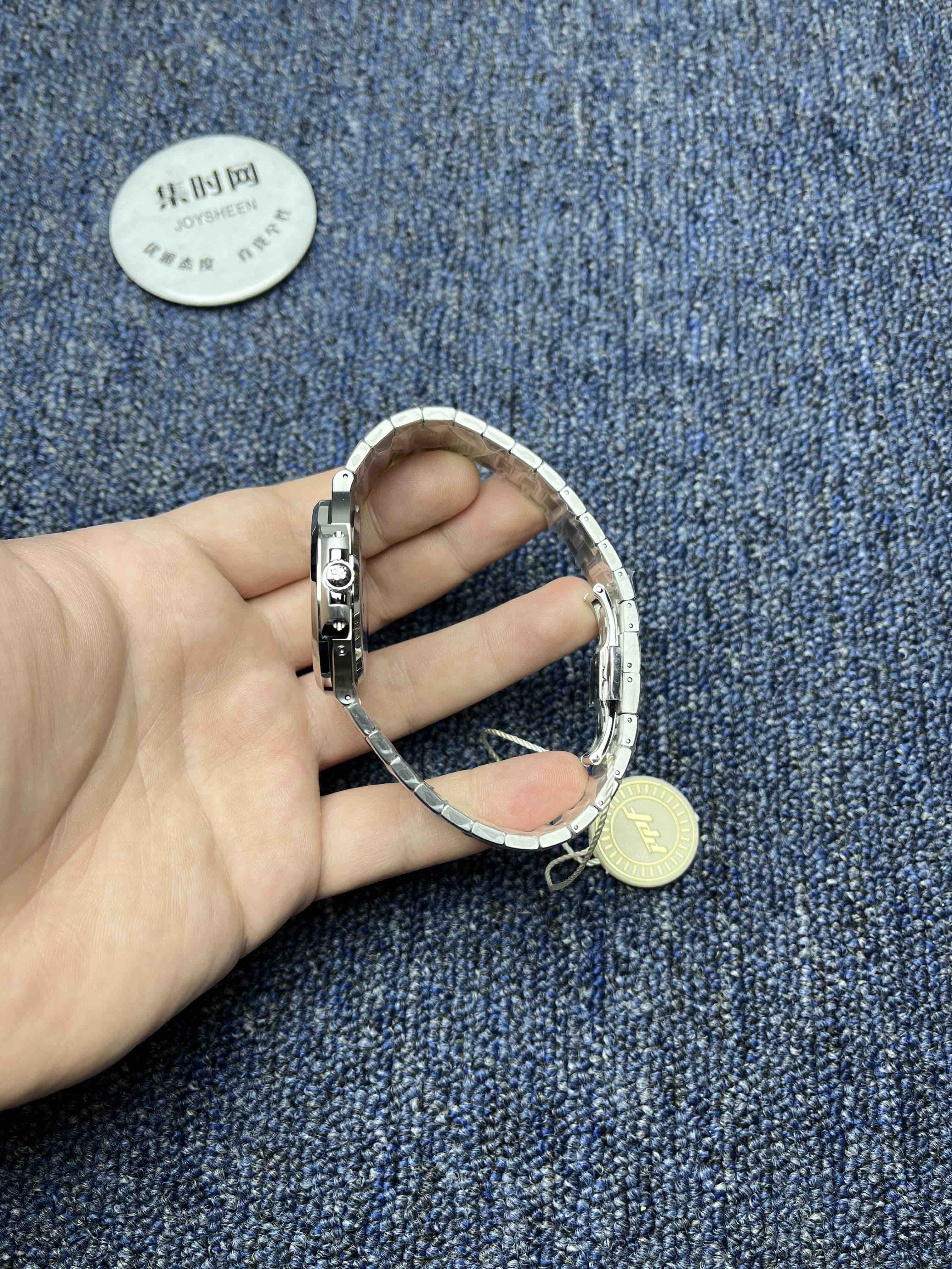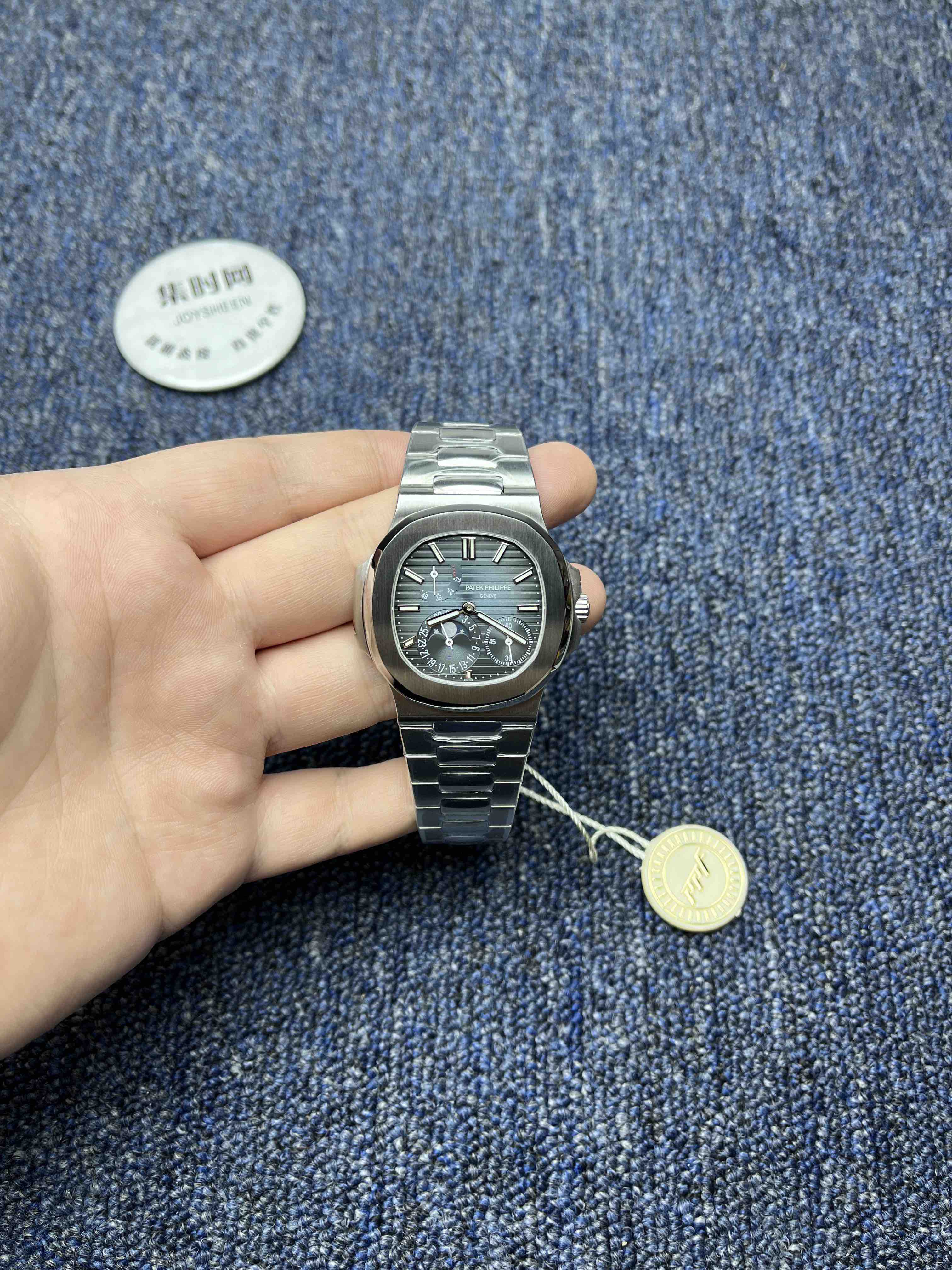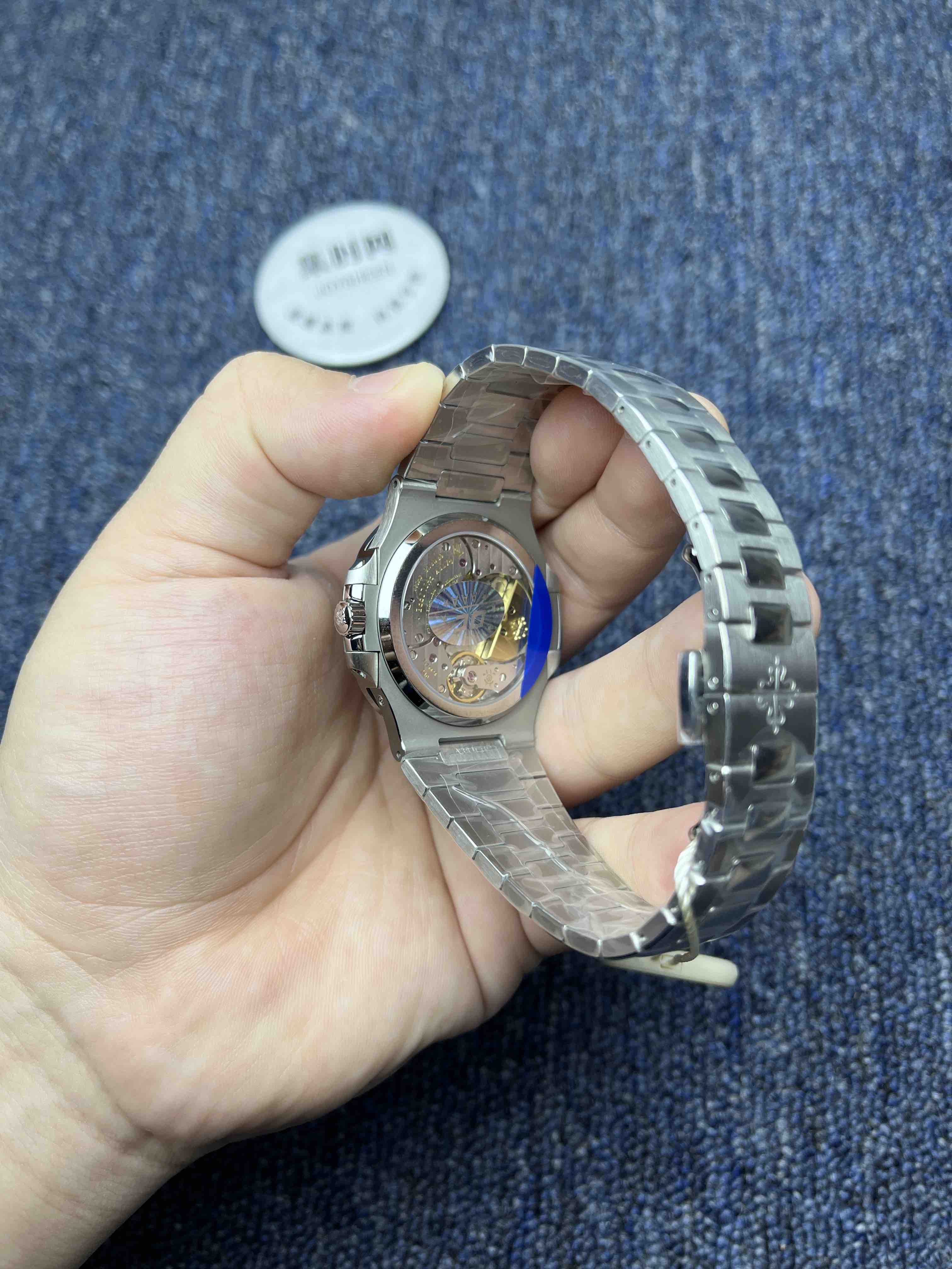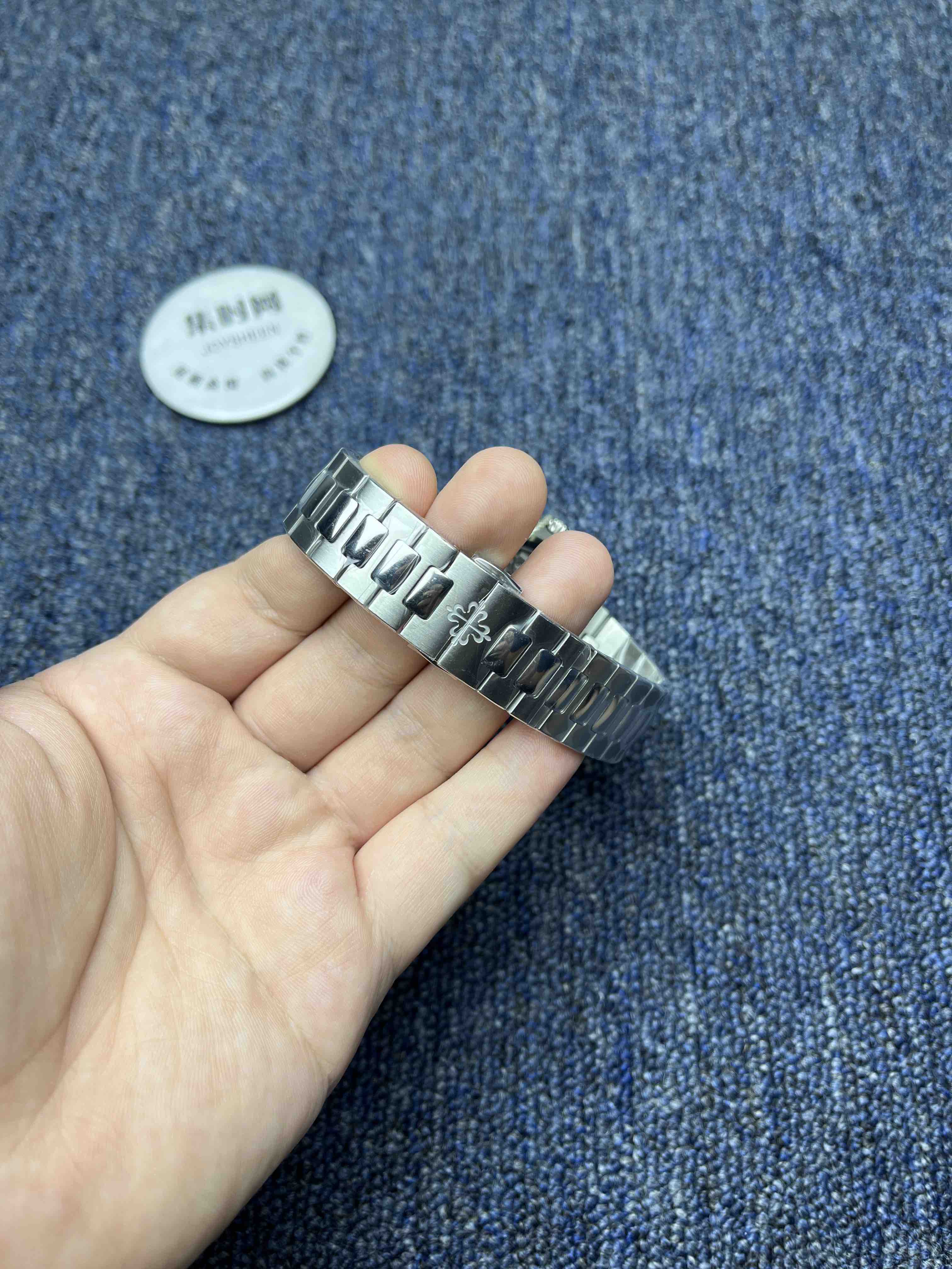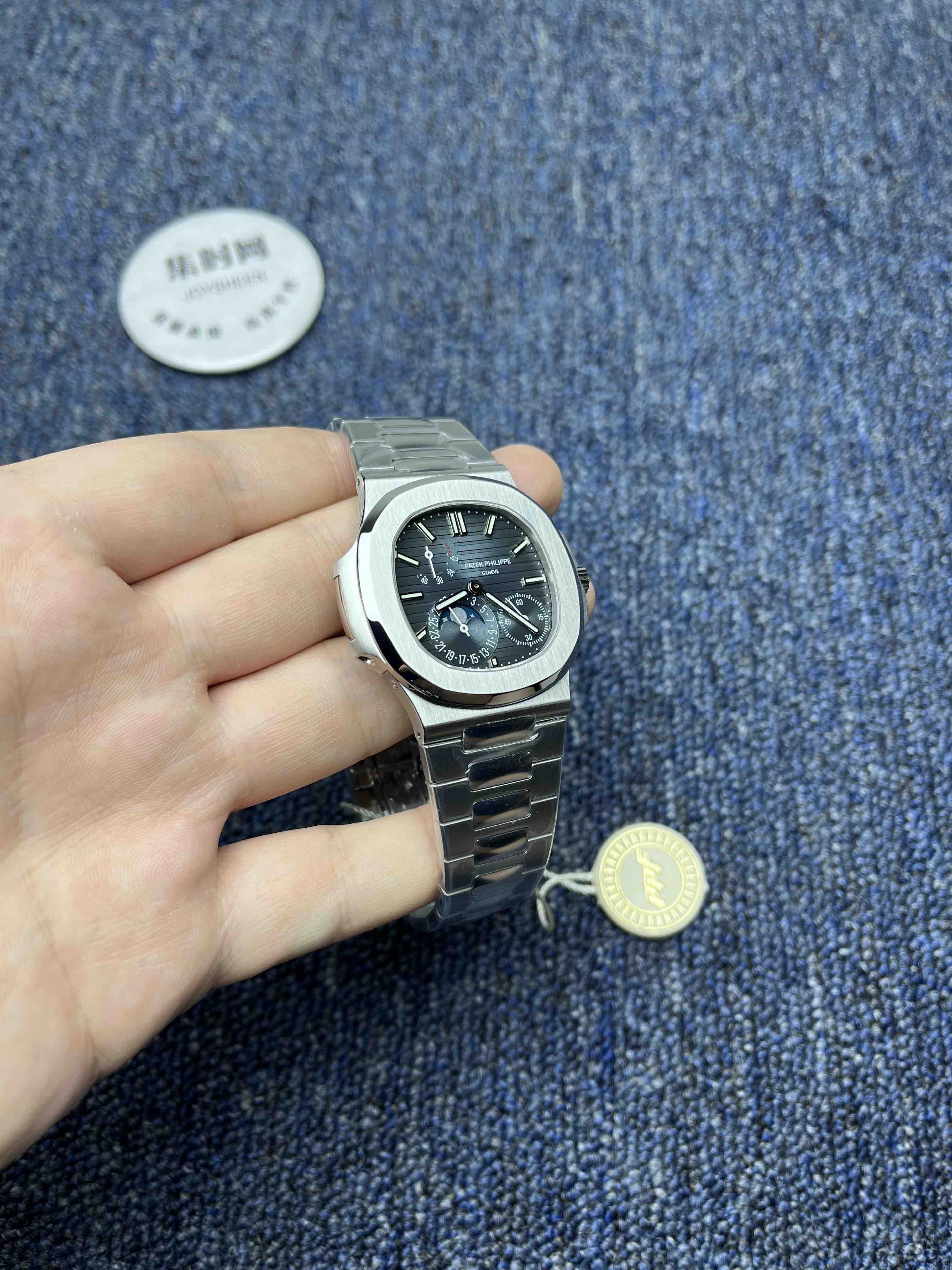 PPF潜心三年 真“芯”之作!百达翡丽PP5712GR全新升级V3版,巅峰出道了!这是真正具有里程碑意义的超级一体机芯Cal.240 PS IRM C LU。全机芯零件数265个,平面游丝,21600每小时振荡次数 Gyromax带调节砝码的摆轮,稳定无误差。(不同于市面上现有的假机芯盖甲板,假珍珠陀) 全新修正的不锈钢表带,铰链部分根据真正的百达翡丽鹦鹉螺不锈钢表带拆解开发,和正品一致的贴合效果,逆袭市面上所有副本,铰链开合角度和正品一致,锁毕声音和正品相同。而PPF独家的“蓝魅”面无限接近接近原版,更是傲视群雄!