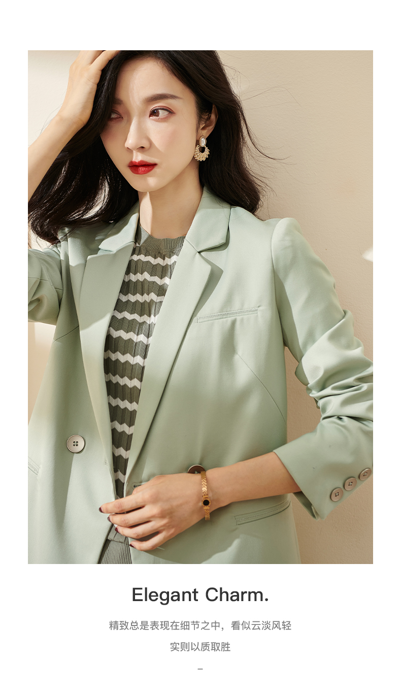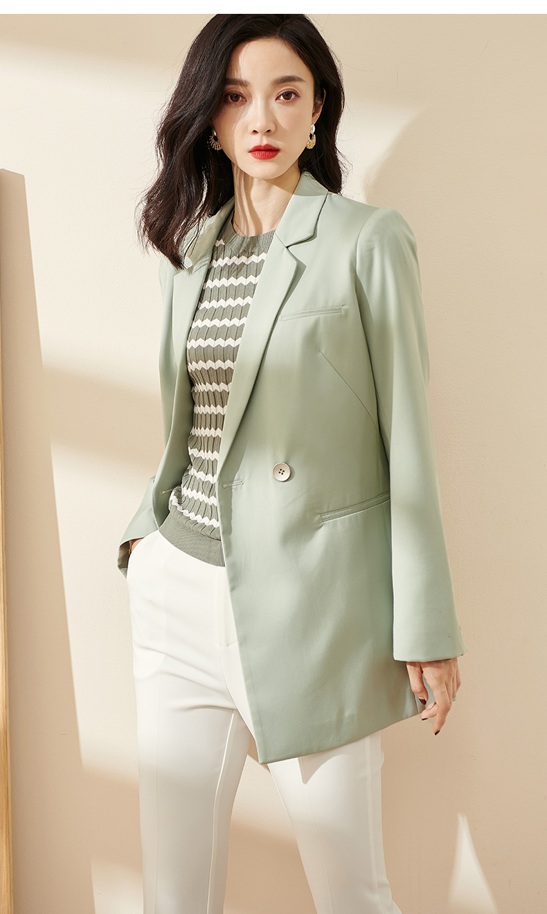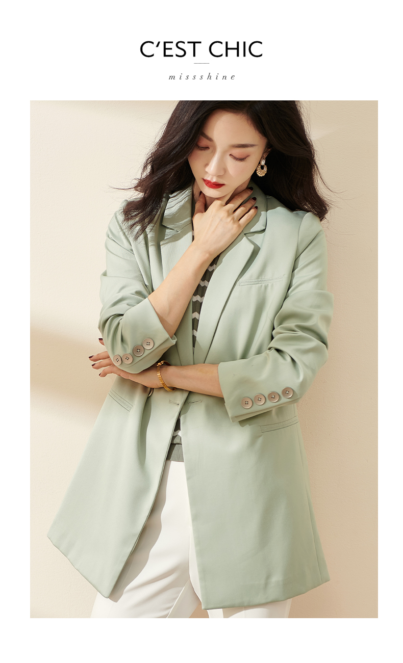 剩S/M/L/XL 芳外2026春季新款简约气质浅绿色西装职场通勤宽松长袖外套0451