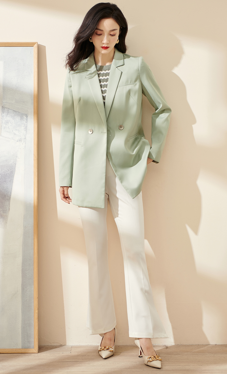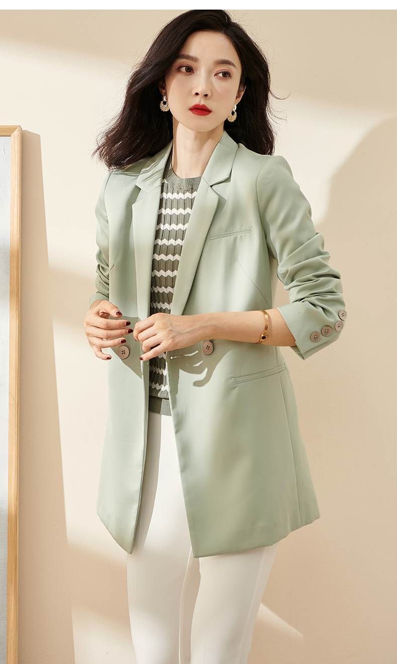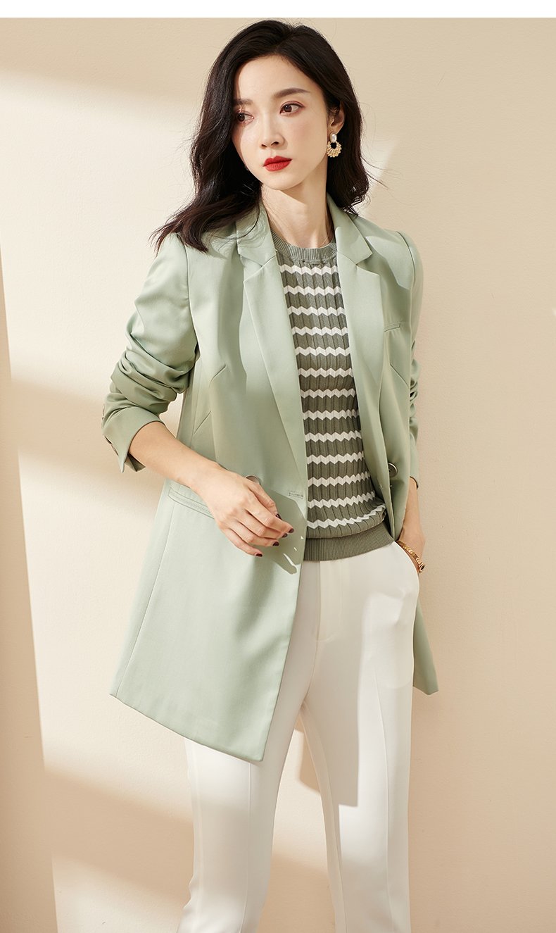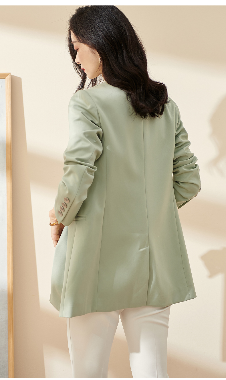 剩S/M/L/XL 芳外2026春季新款简约气质浅绿色西装职场通勤宽松长袖外套0451