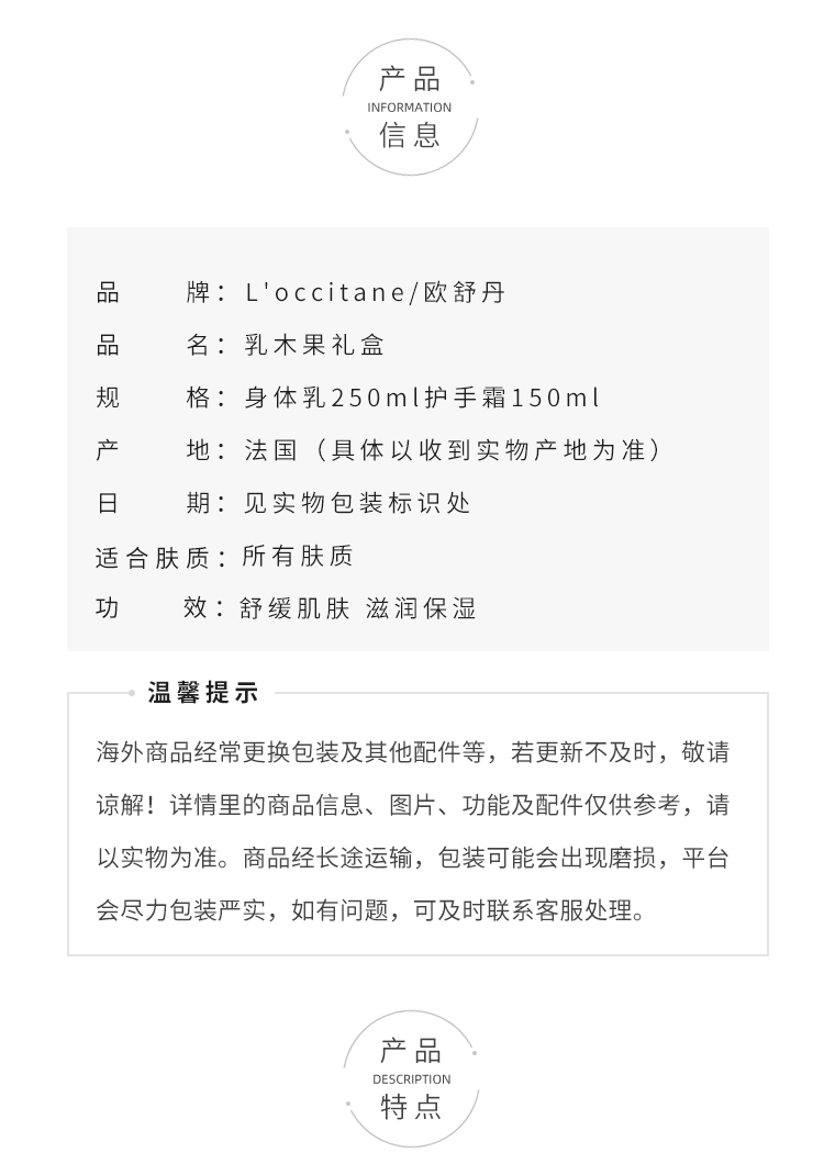 欧舒丹乳木果身体乳护手霜修护保湿润肤露防干滋润 组合【CDF】