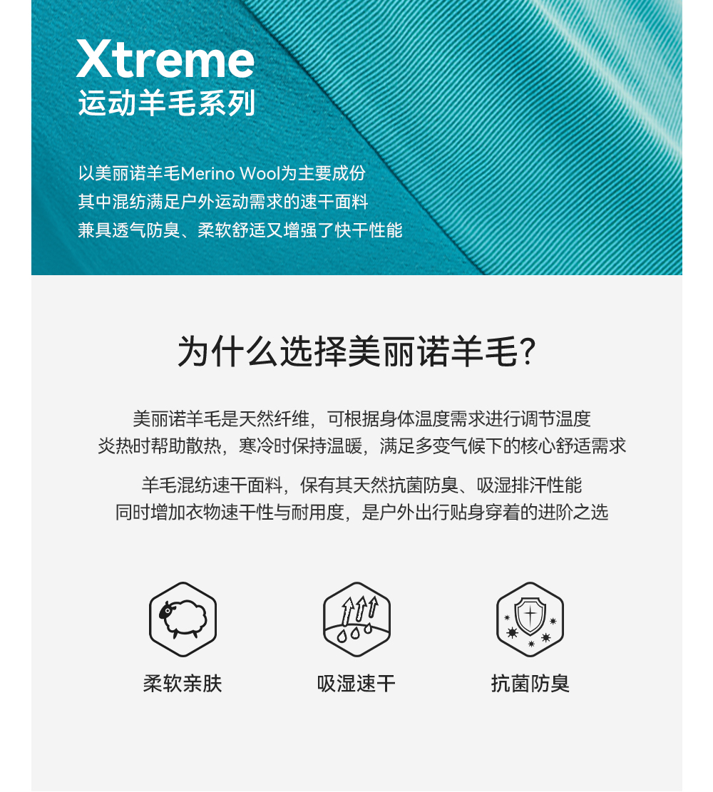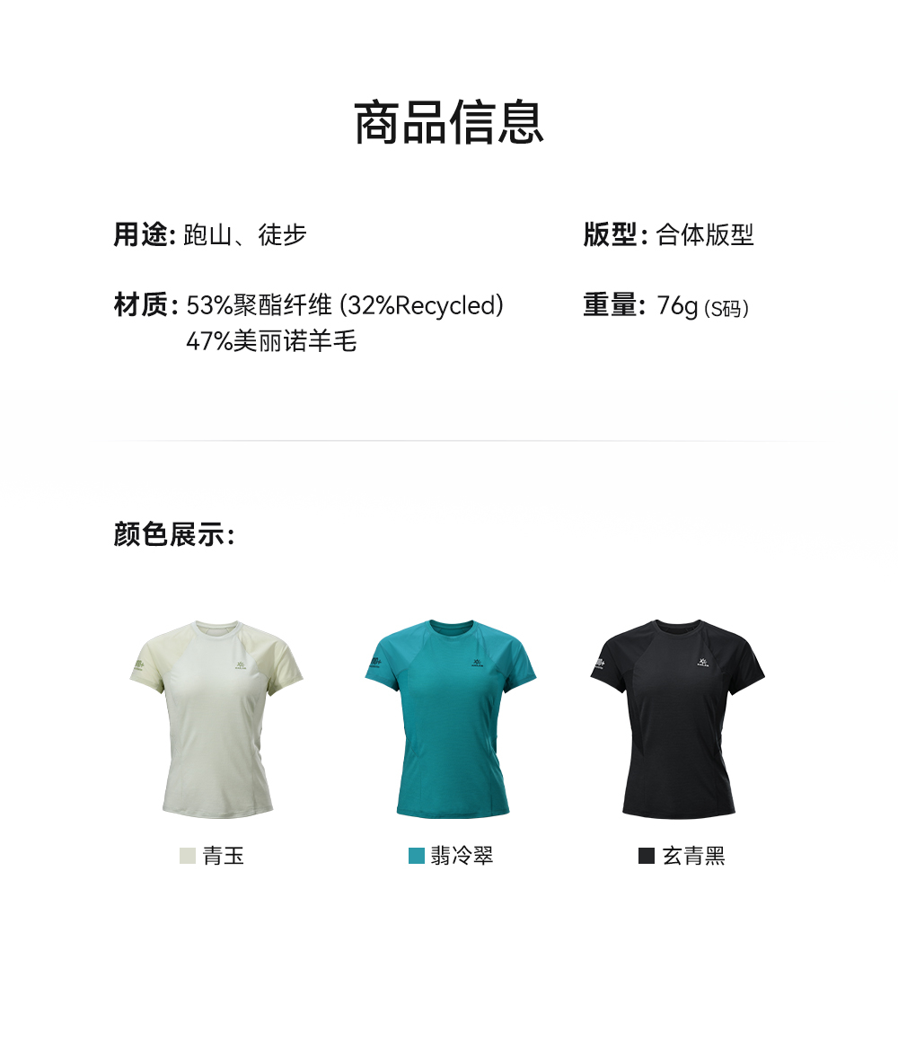 KAILAS凯乐石 女款 XM1美利奴羊毛圆领T恤 KG2517229