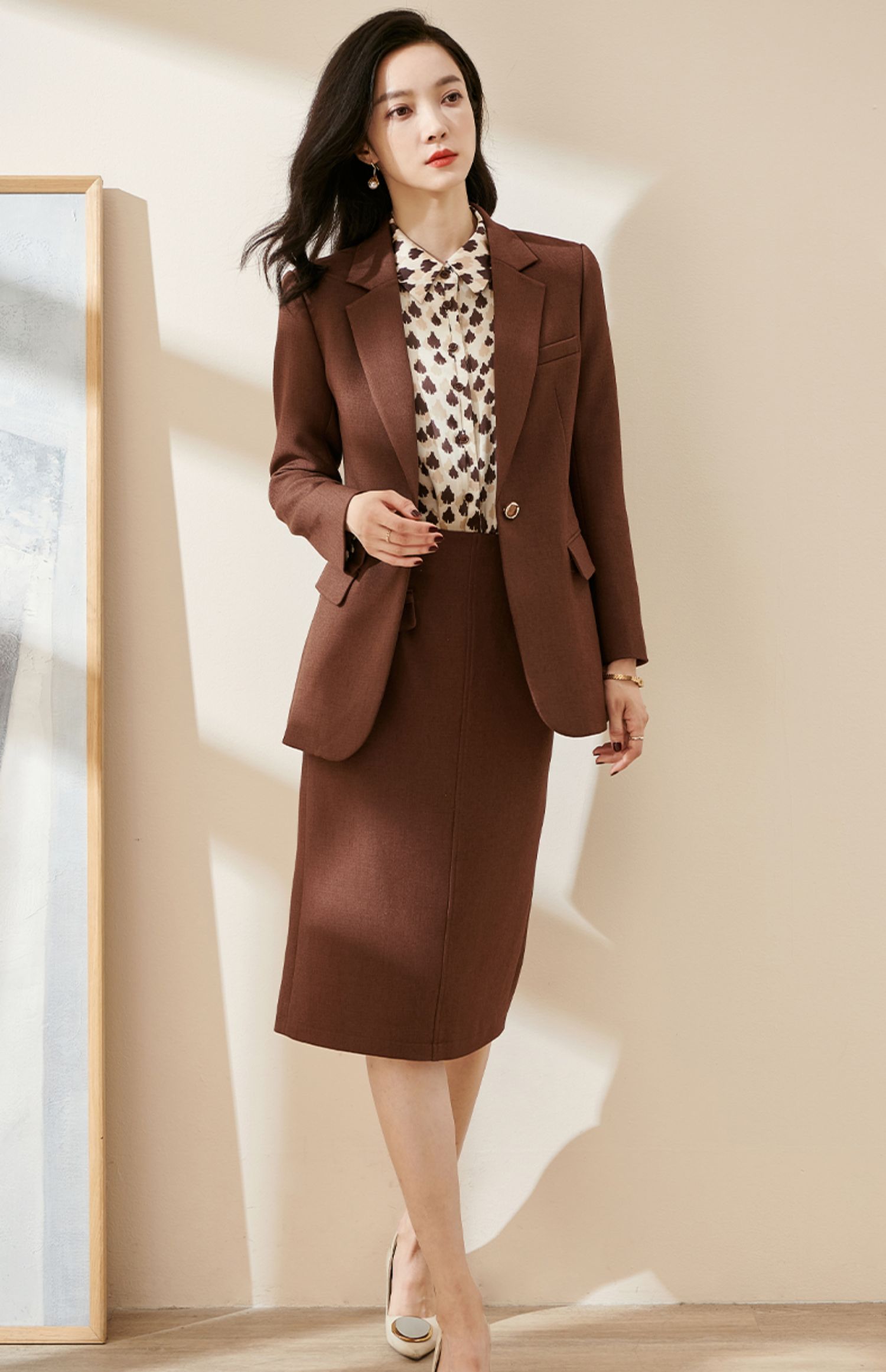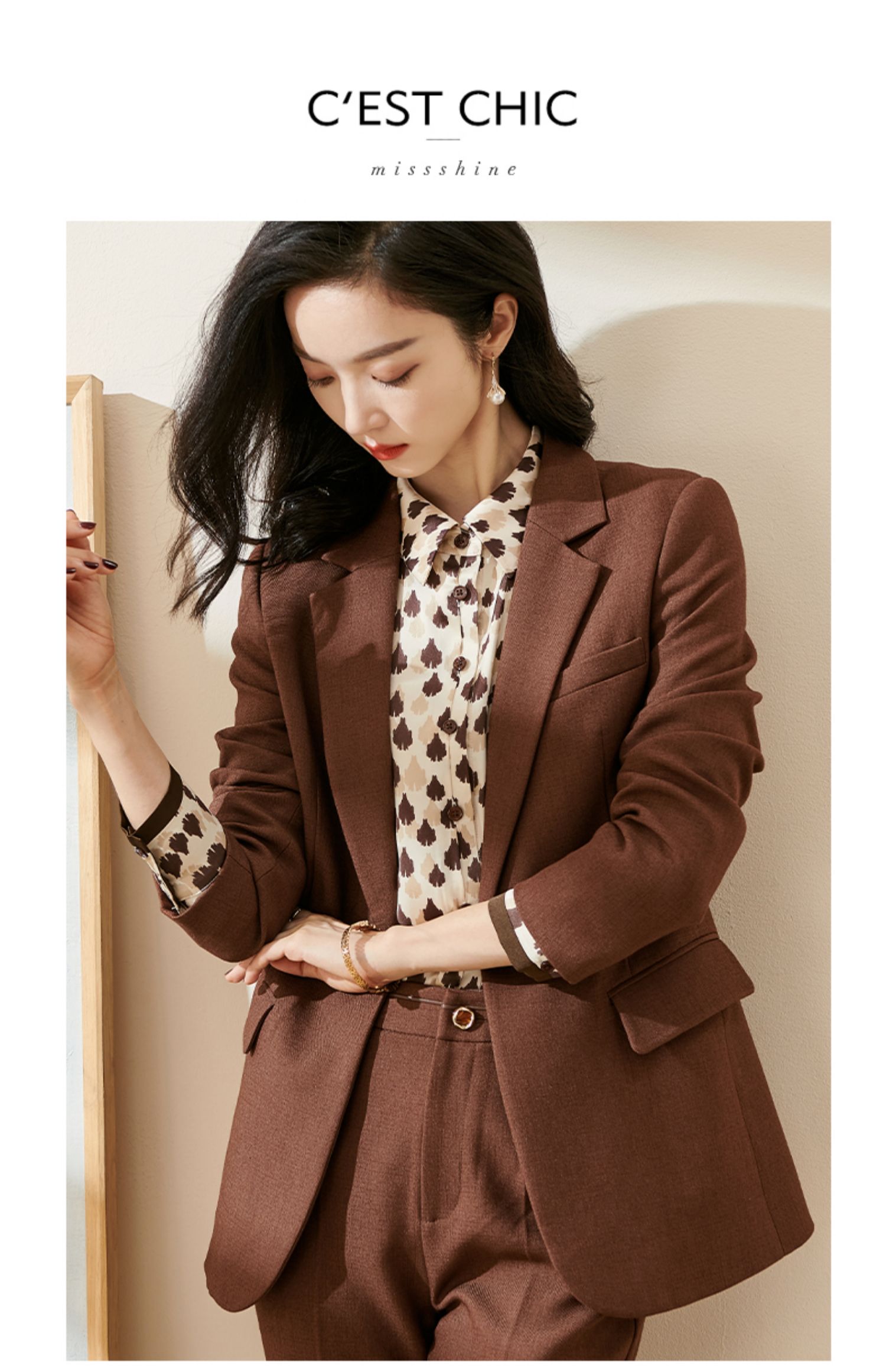 米思阳2026春季新款通勤休闲气质西装修身显瘦微弹长袖外套女0010