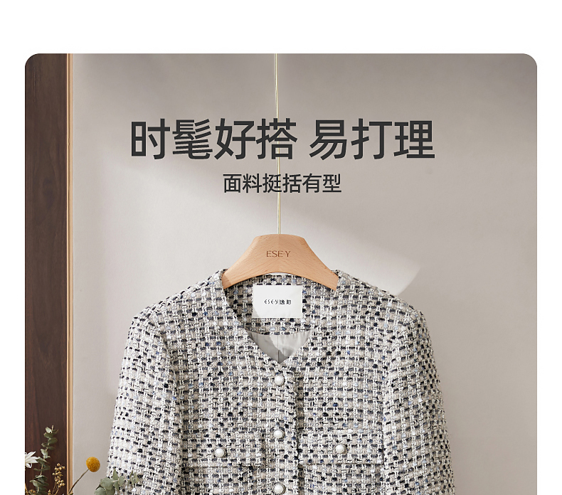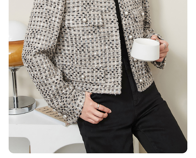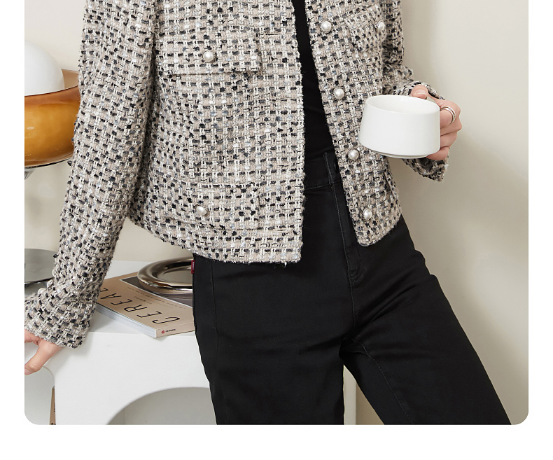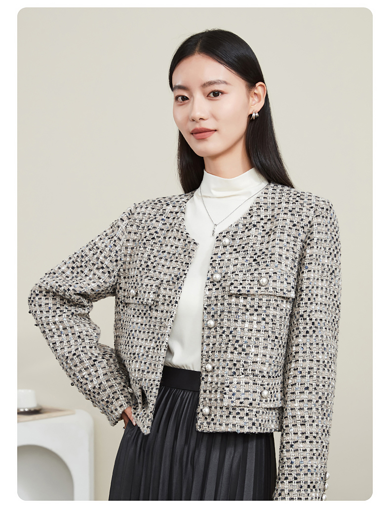 【混彩花呢-小香风外套】逸阳秋新款法式气质羊毛高级感精致短外套3919