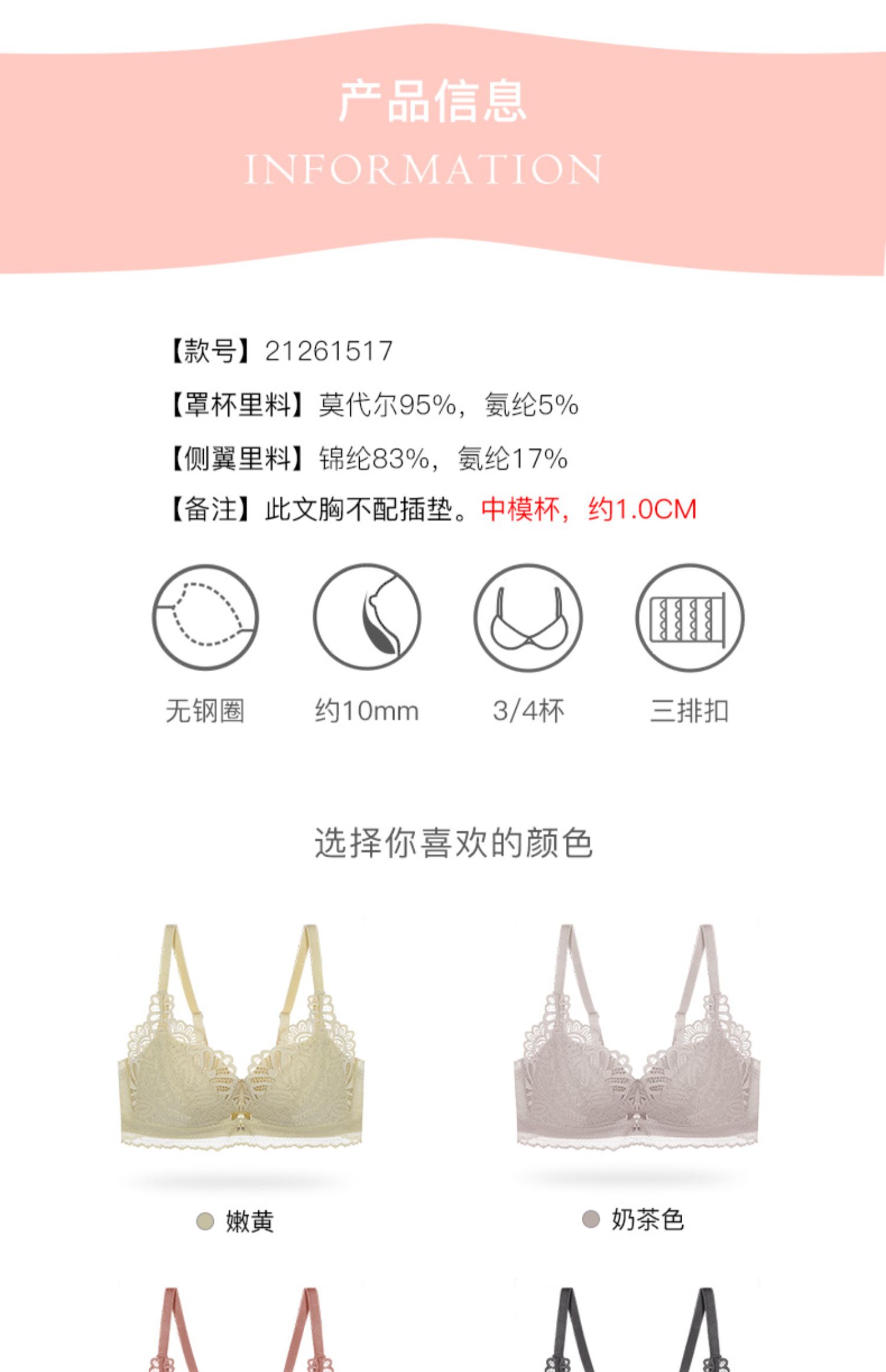 【小胸聚拢多款可选】熳洁儿性感蕾丝内衣小胸无钢圈聚拢莫代尔文胸21261579/21261540/21261532