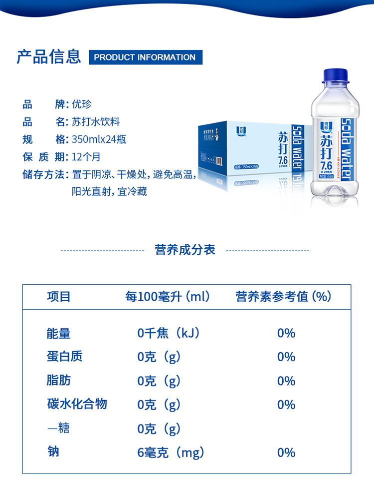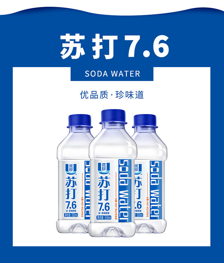 优珍苏打水饮料 无糖无汽弱碱性水饮品水 350ml*24瓶 整箱装