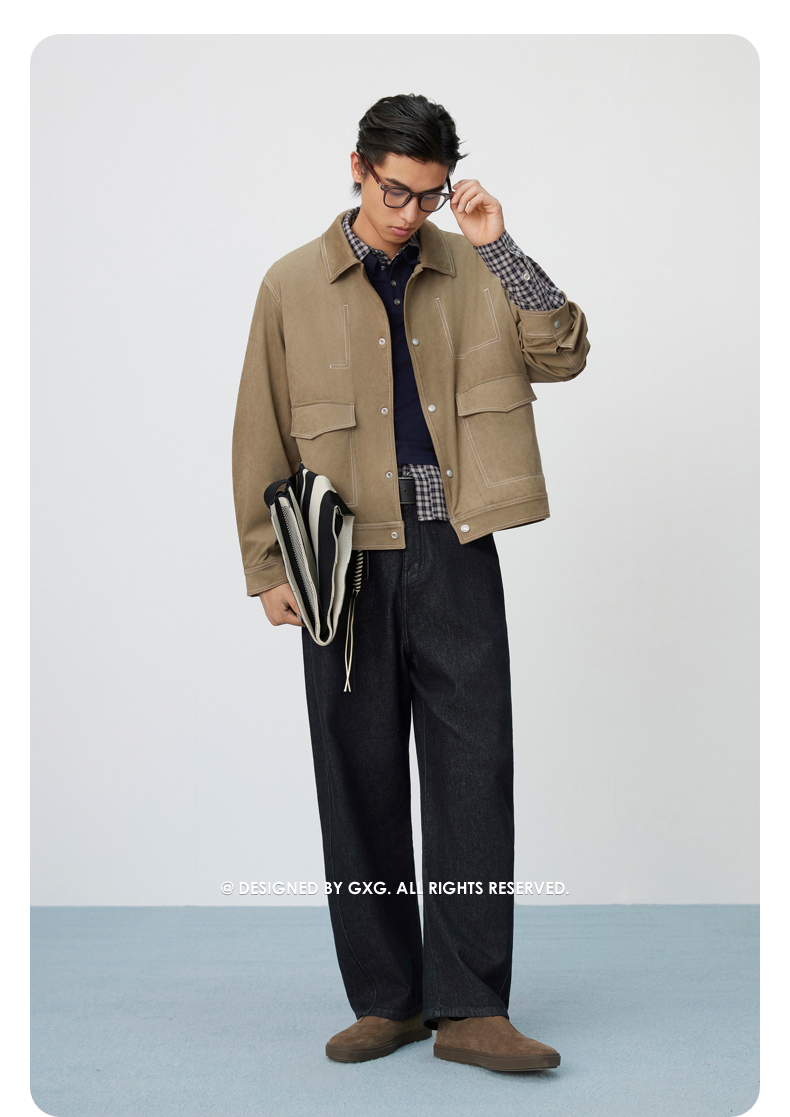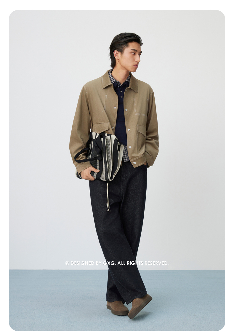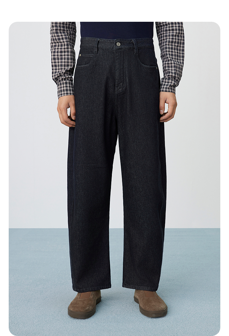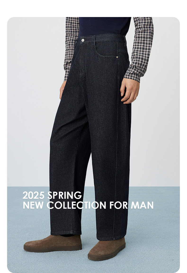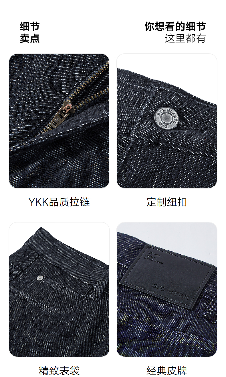 【不易褪色】GXG男装 深蓝牛仔裤通勤弯刀裤男长裤 2025春季热卖