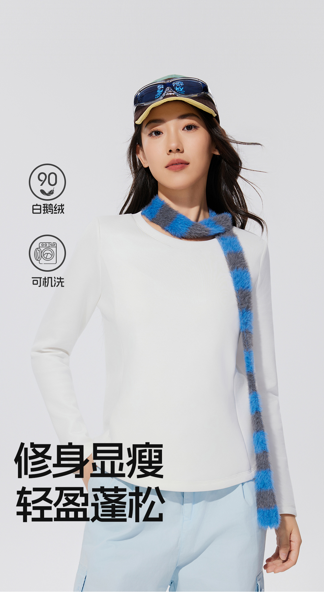 整衣可机洗,哥特莱丝/GOTICLAISILK 拒水90白鹅绒长袖T恤,情侣款、儿童款、女士款!鹅绒填充无惧严寒,多款式可选,保暖的同时也照顾好看【2511“羊毛”服装】