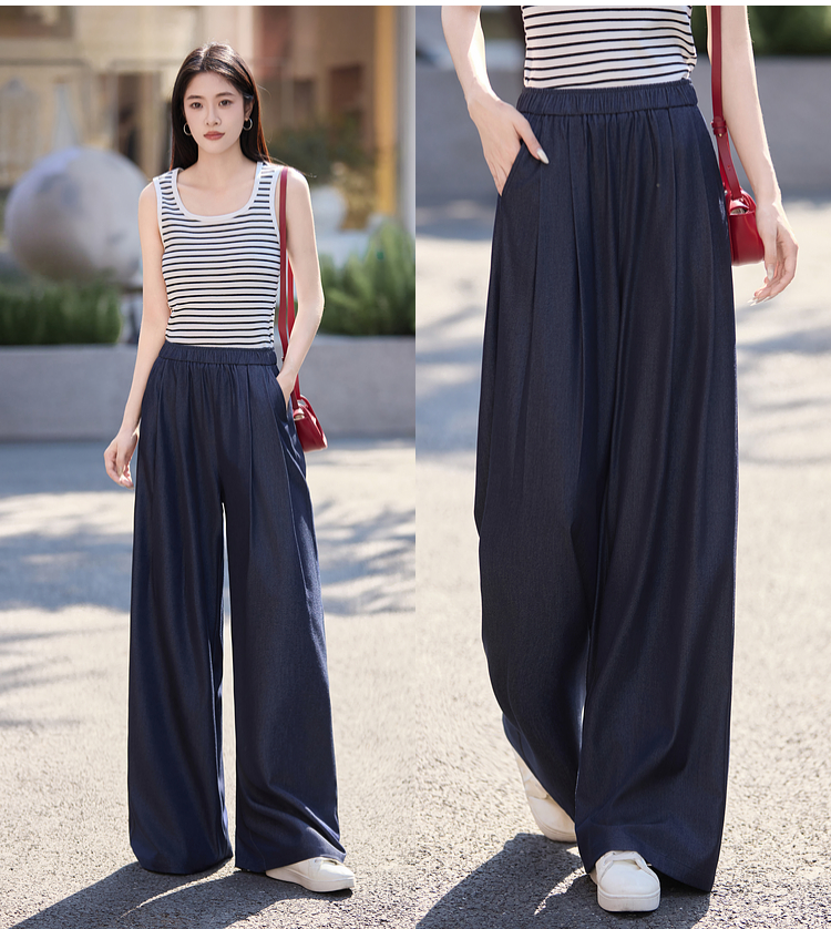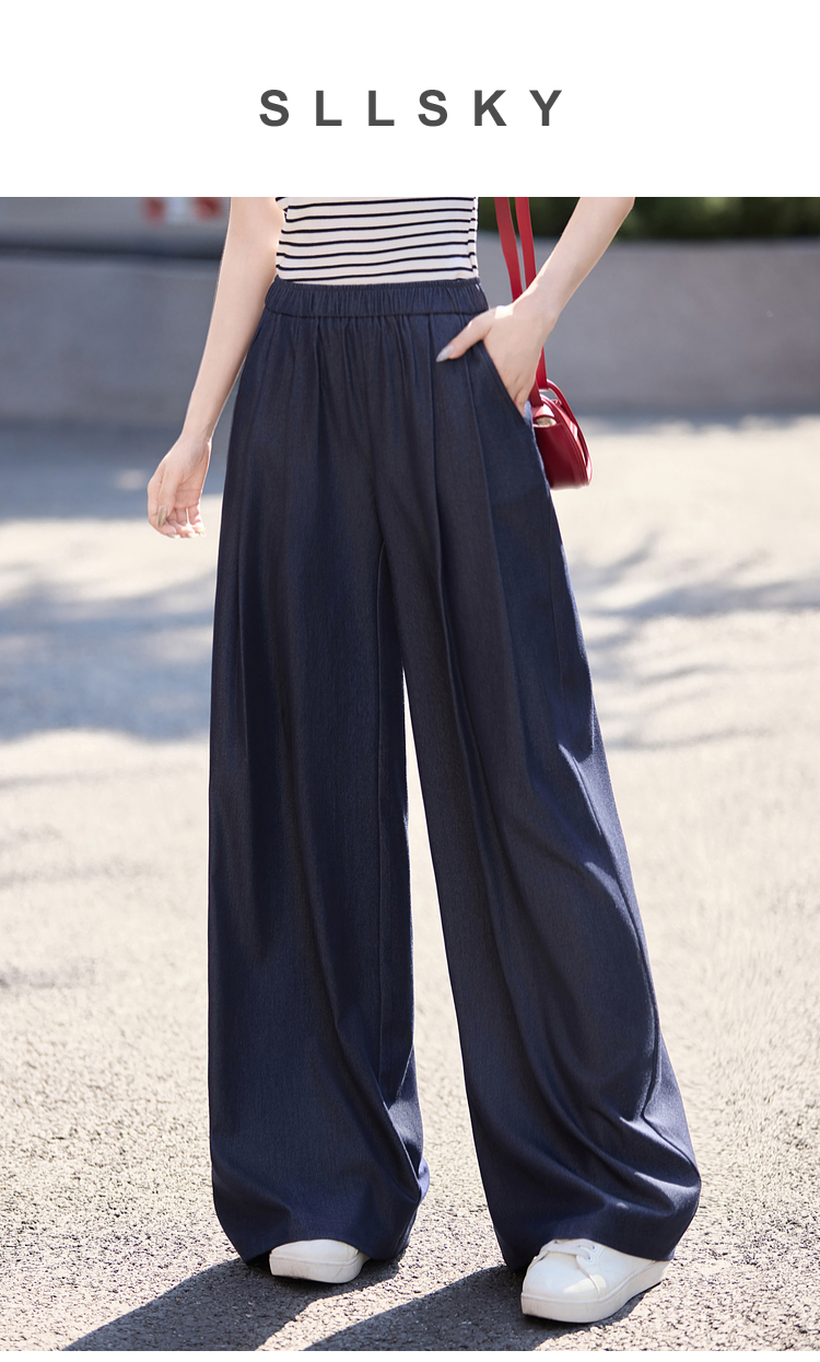 【专属特价】熙世界阔腿裤女夏季薄款2025新款高腰垂感宽松休闲凉凉直筒长裤子