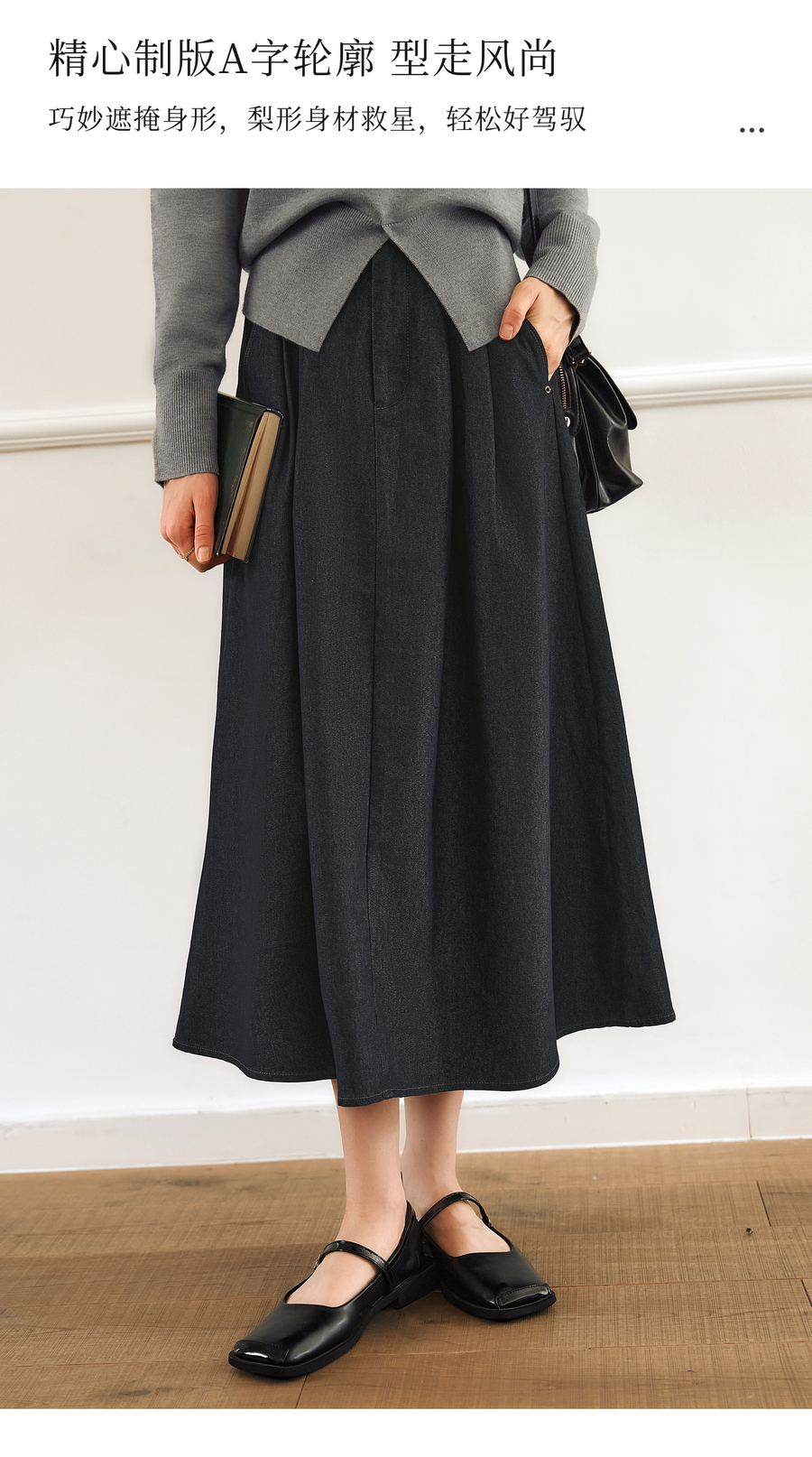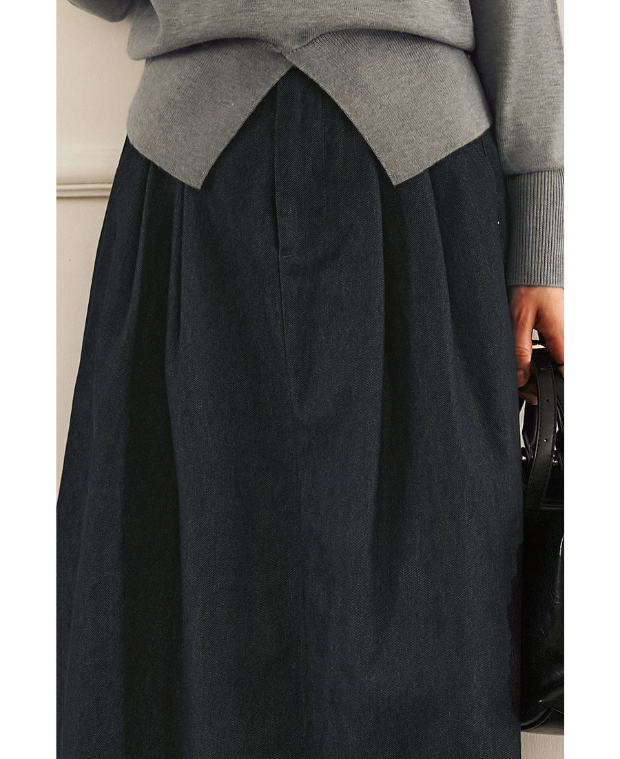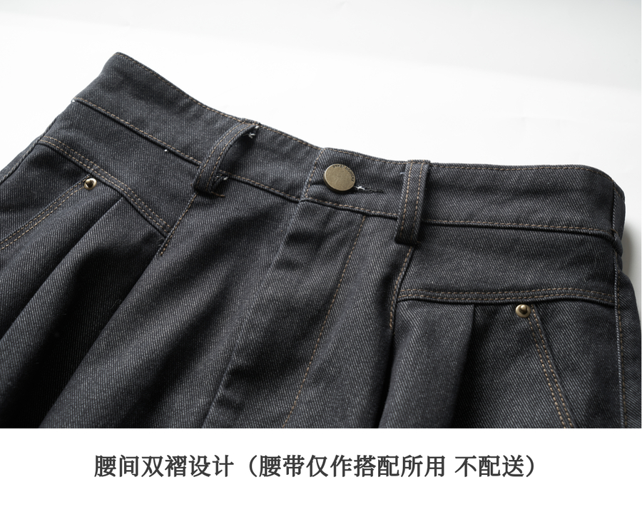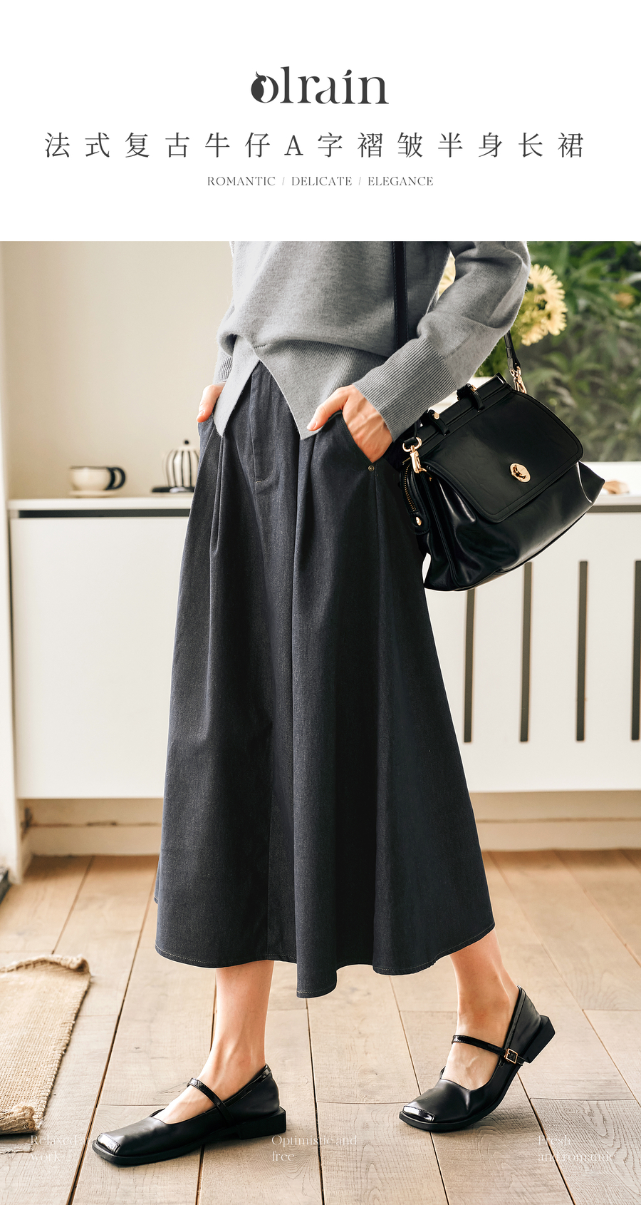 OLrain欧芮儿法式复古半身裙女春季2025年新款褶皱通勤牛仔A字裙