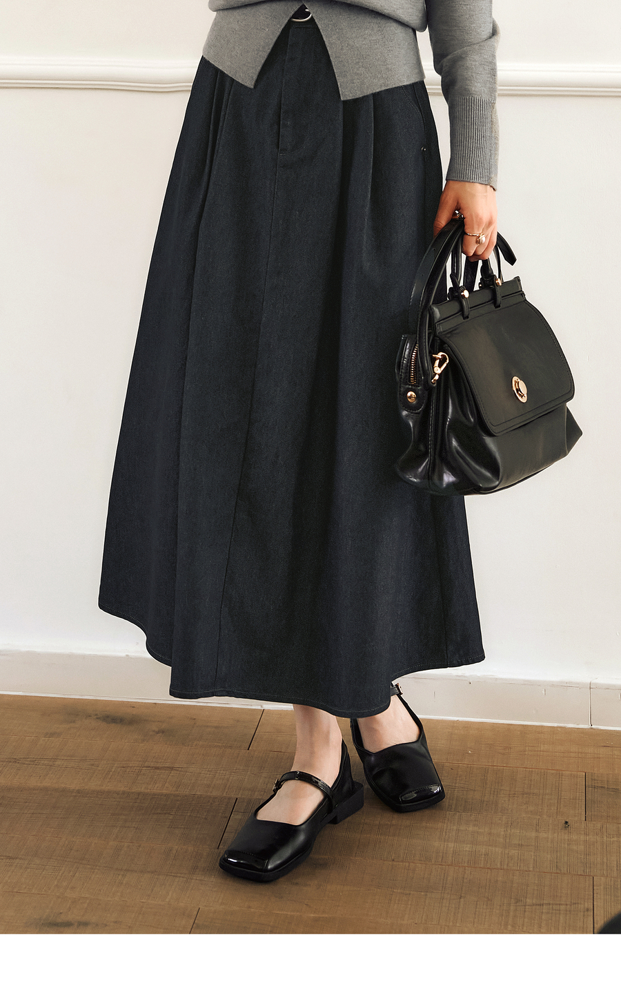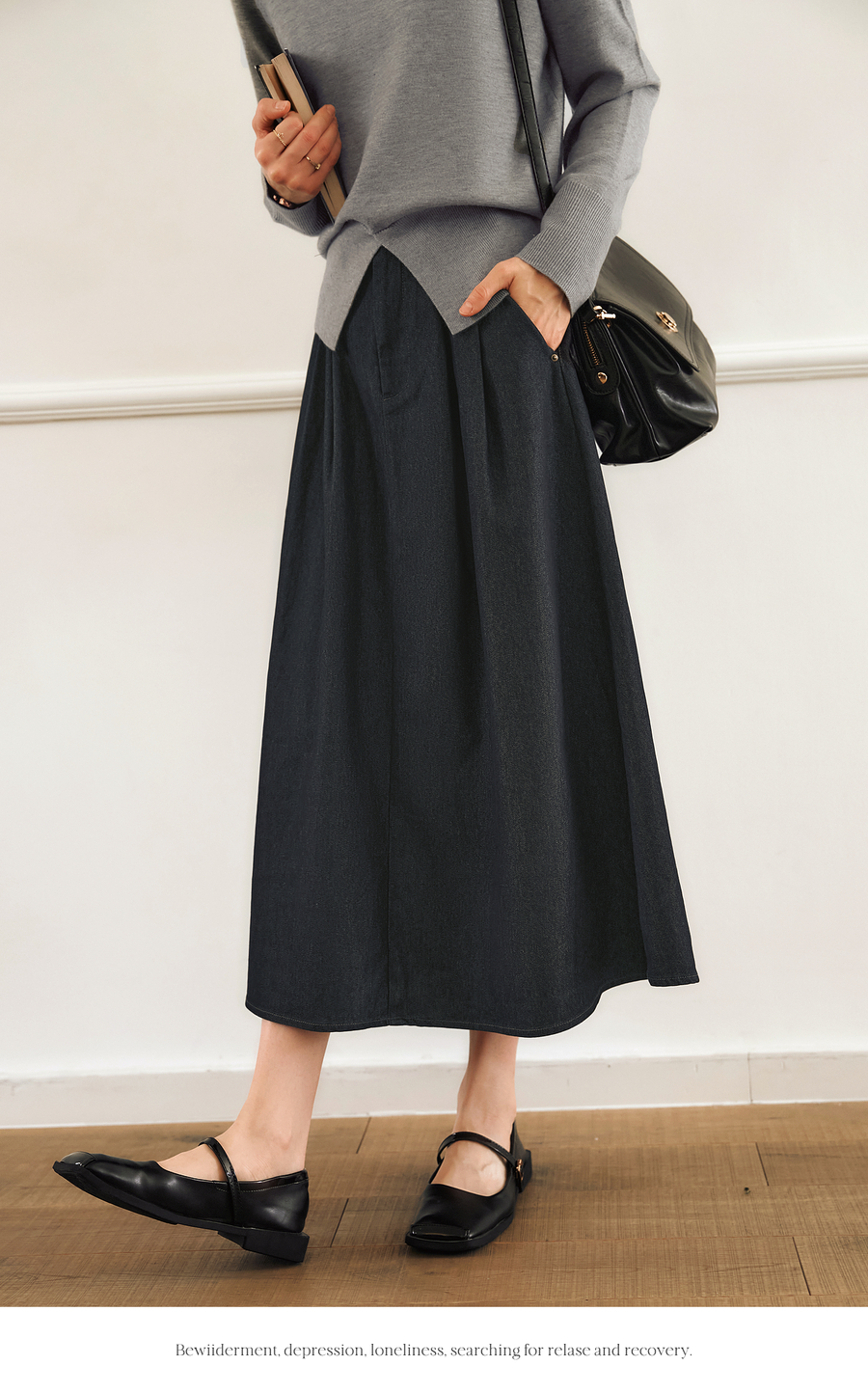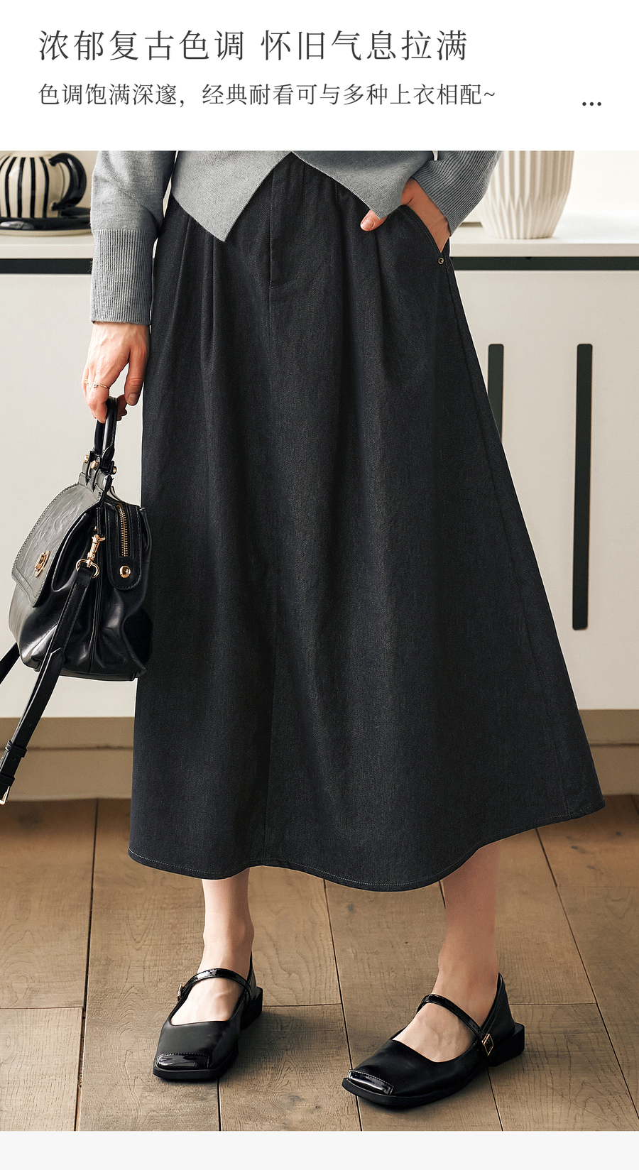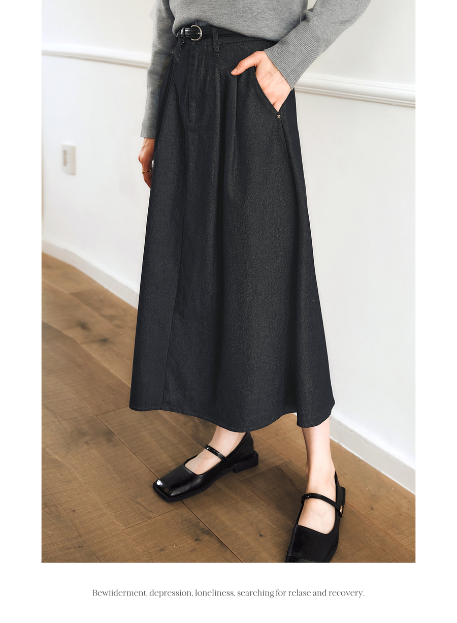 OLrain欧芮儿法式复古半身裙女春季2025年新款褶皱通勤牛仔A字裙