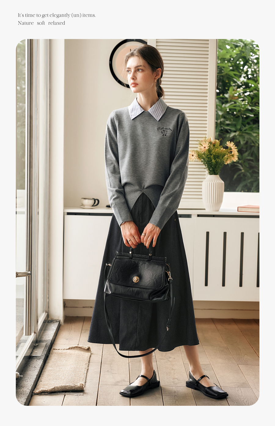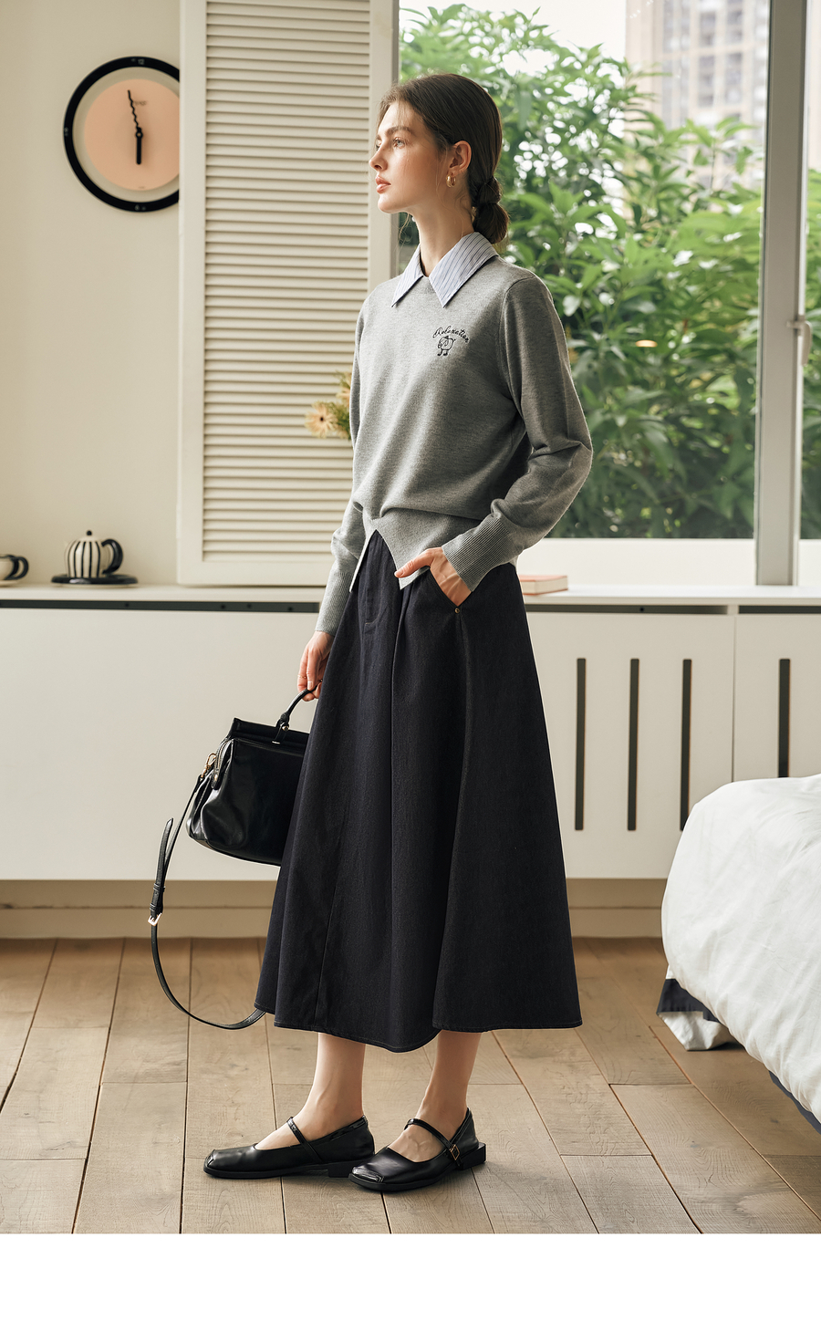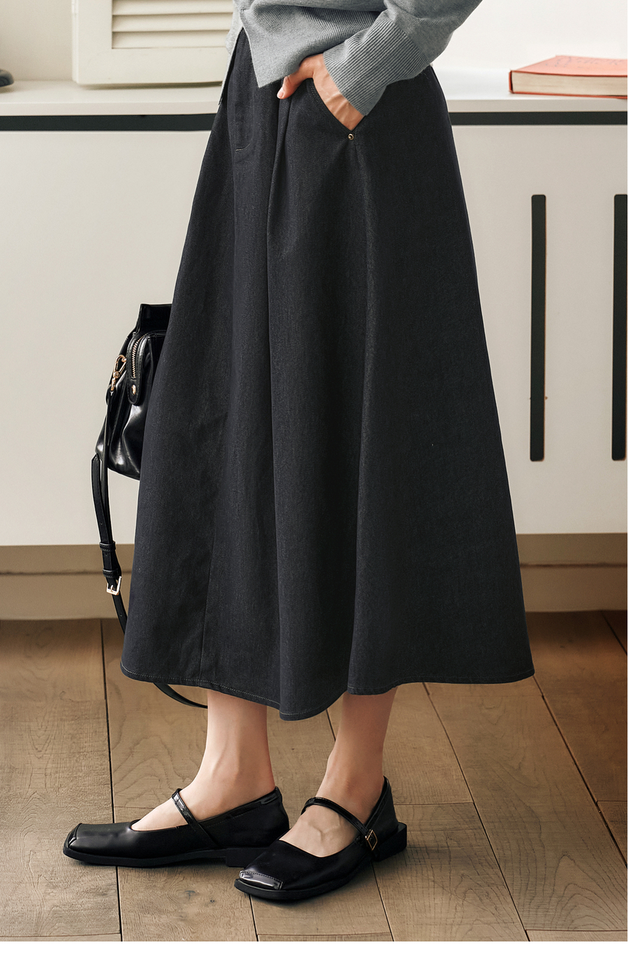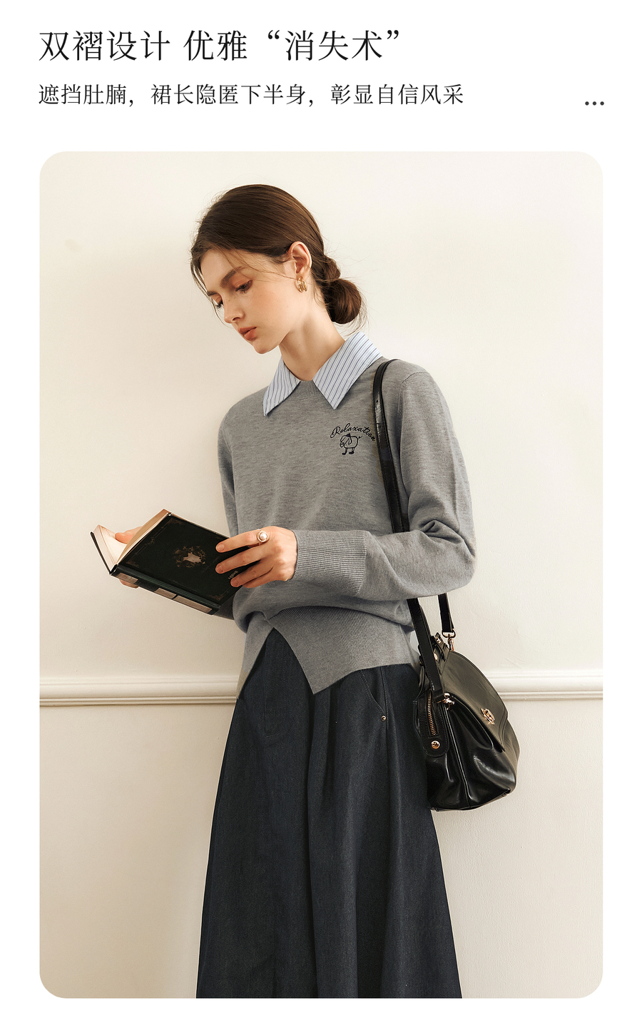 OLrain欧芮儿法式复古半身裙女春季2025年新款褶皱通勤牛仔A字裙