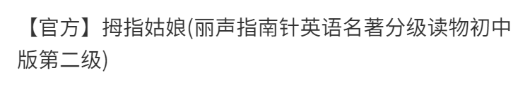 拇指姑娘(丽声指南针英语名著分级读物初中版第二级)
