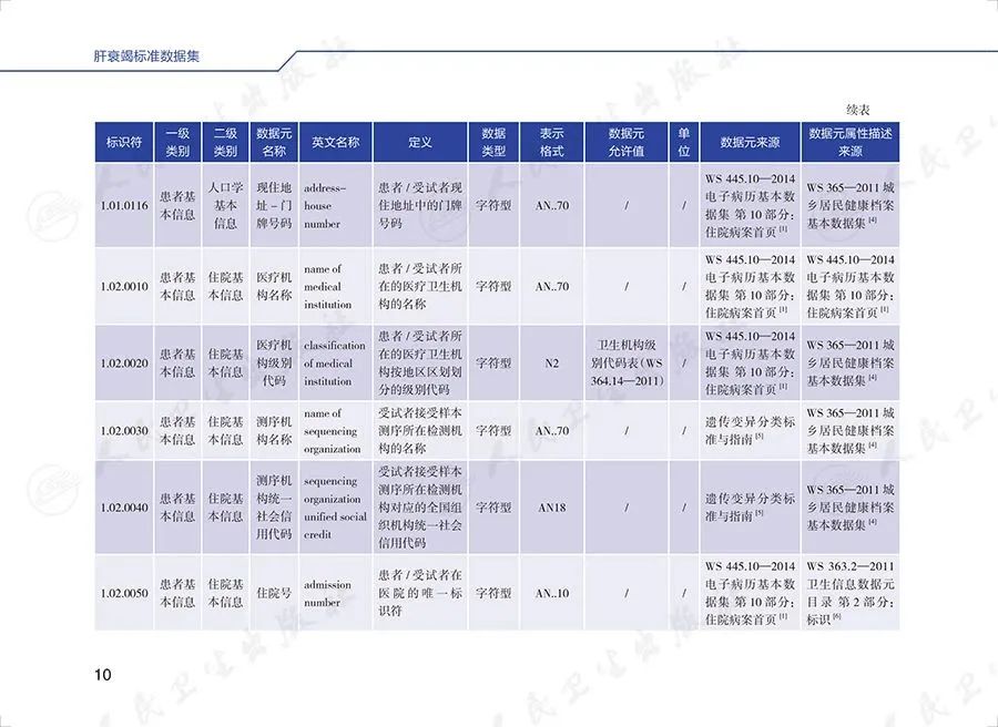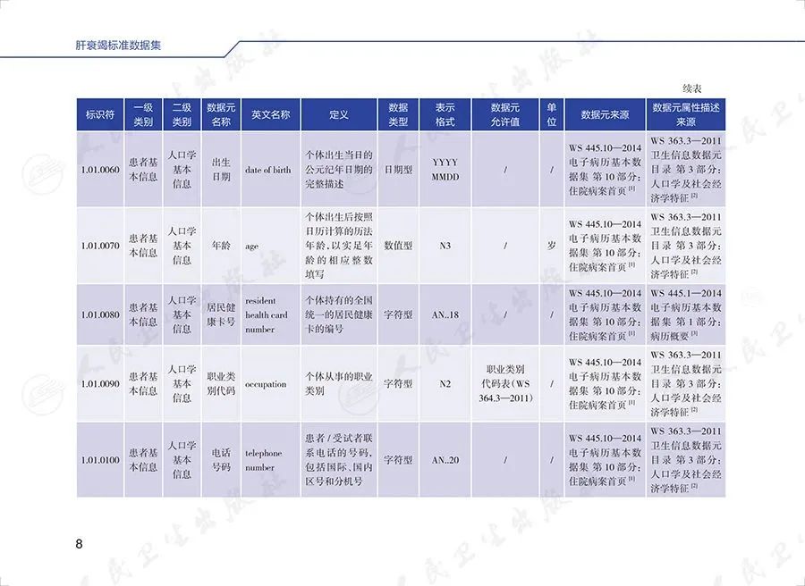 1. 患者基本信息:规定了肝衰竭患者人口学基本信息、住院基本信息的数据元属性。