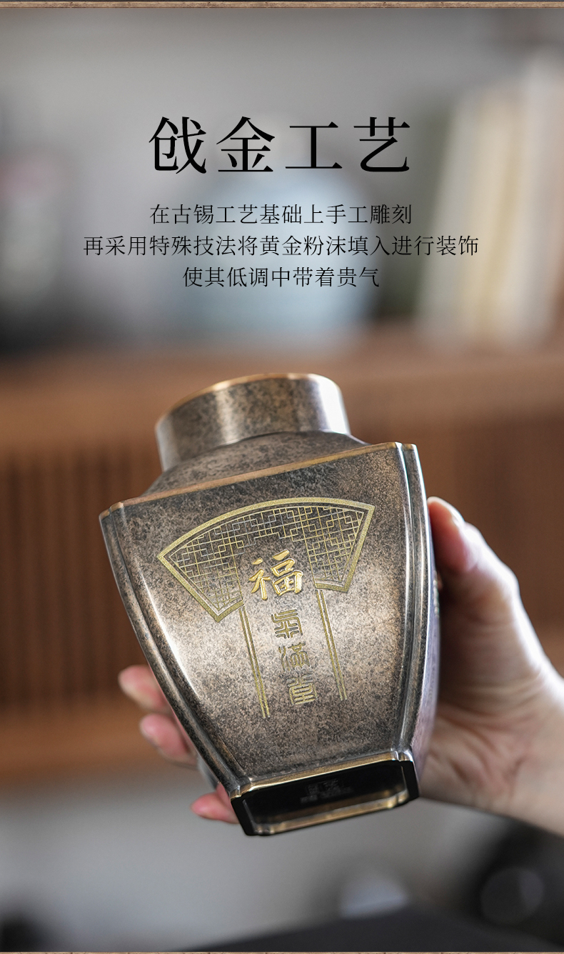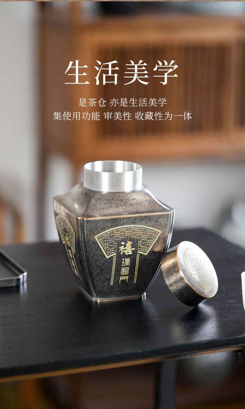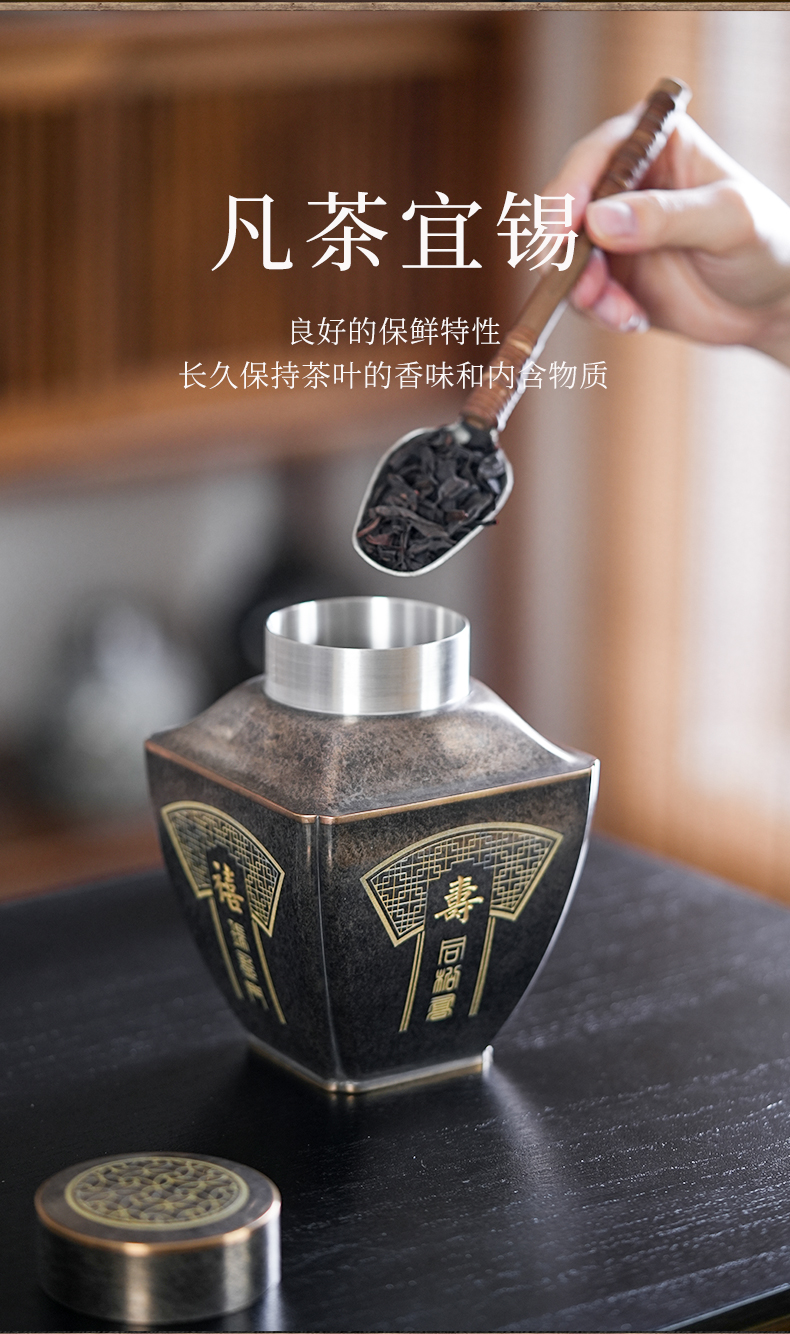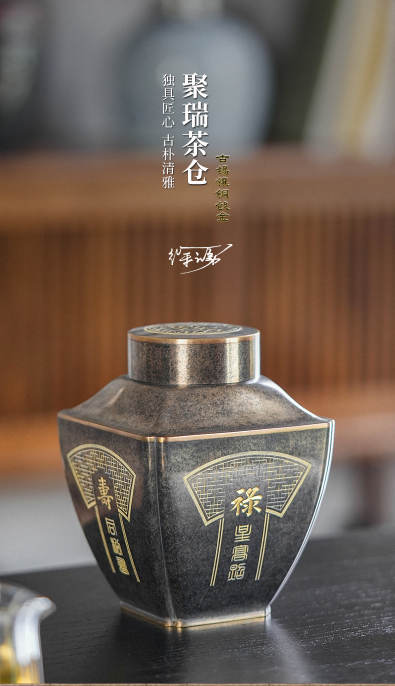 斑锡龙聚瑞茶仓手工锡罐纯锡茶叶罐密封储茶罐高档