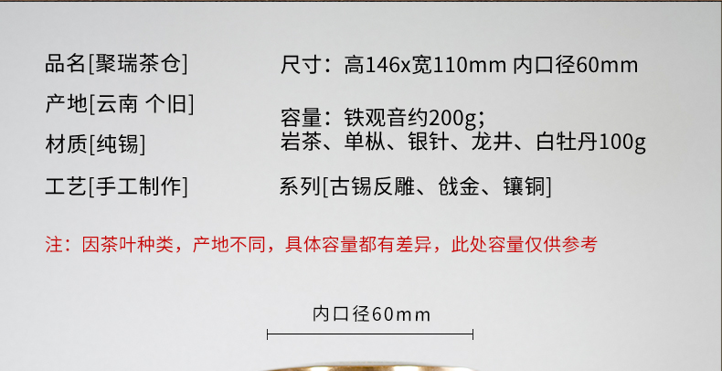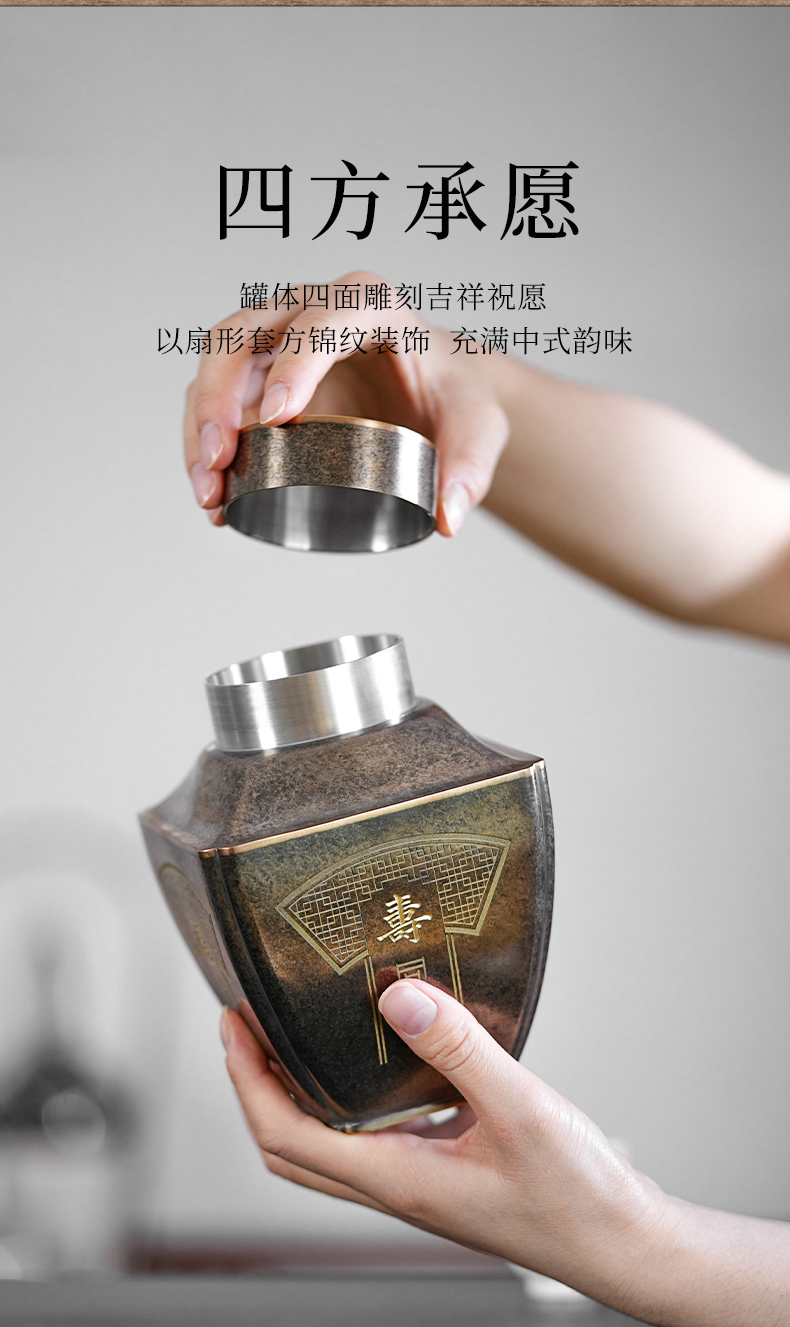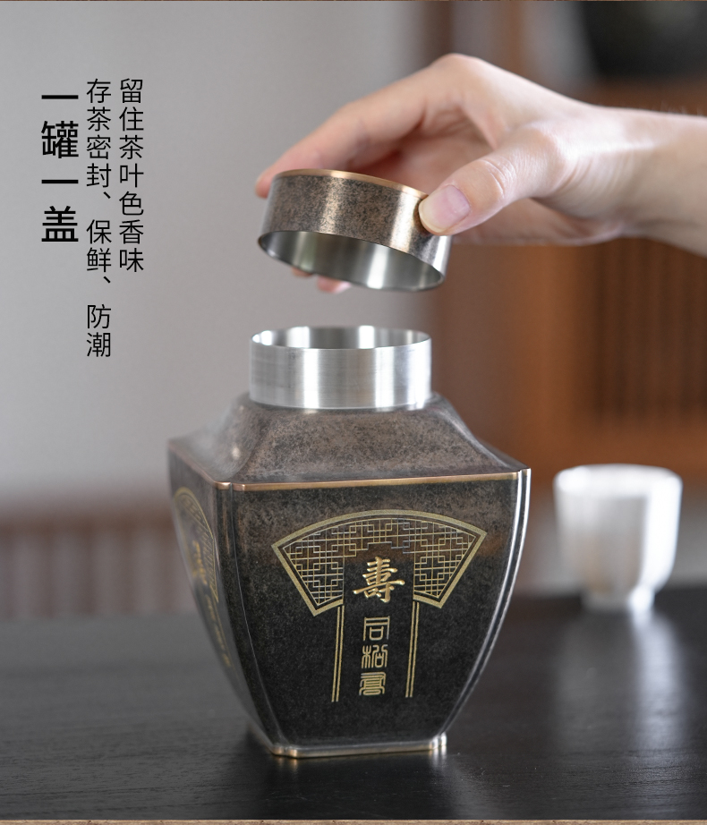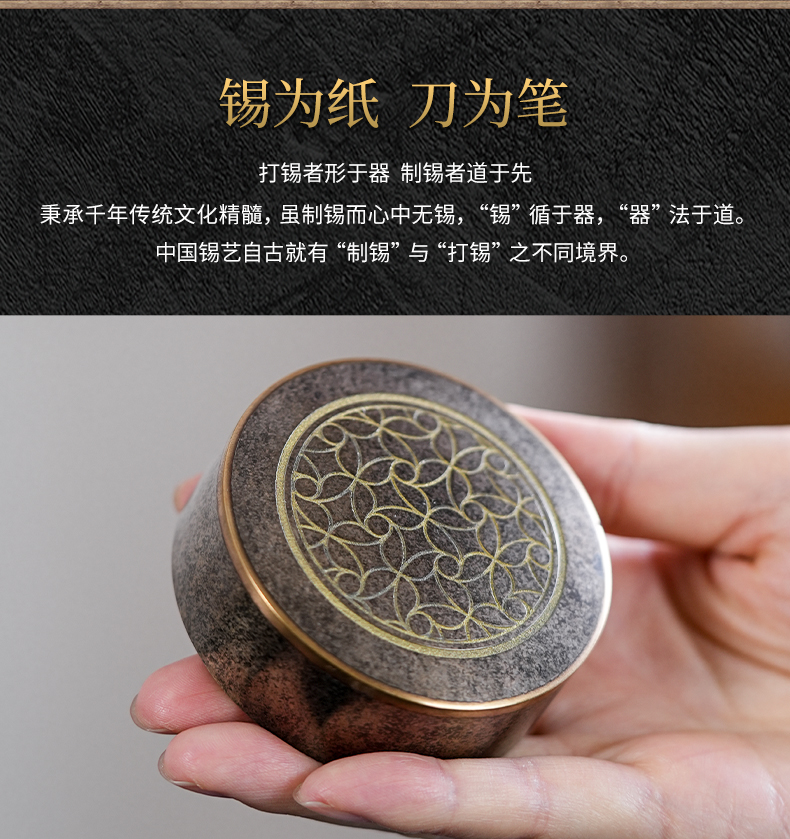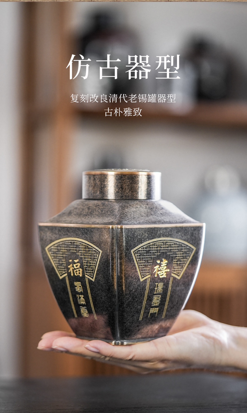斑锡龙聚瑞茶仓手工锡罐纯锡茶叶罐密封储茶罐高档