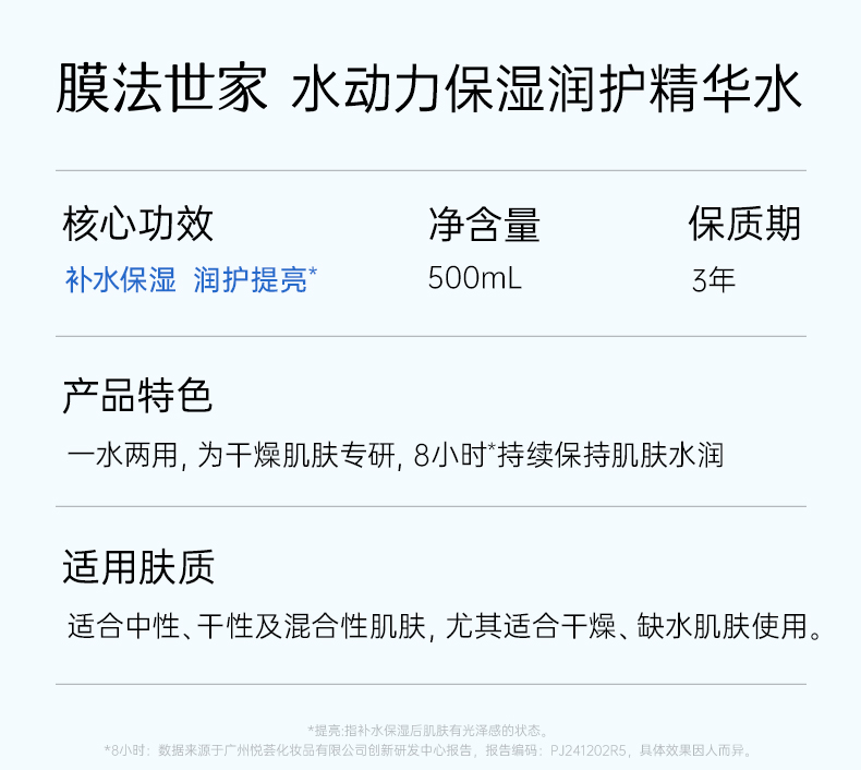 【补水季丨¥39/500ml】膜法世家水动力嫩白保湿精华水500ml
