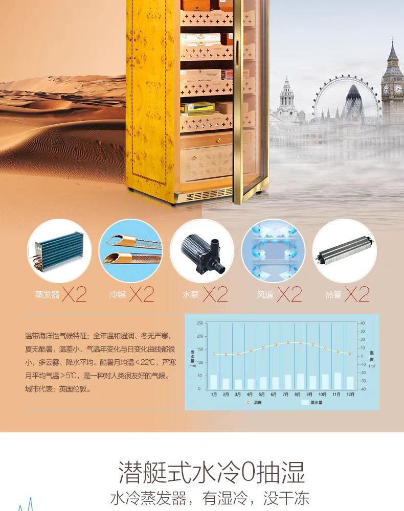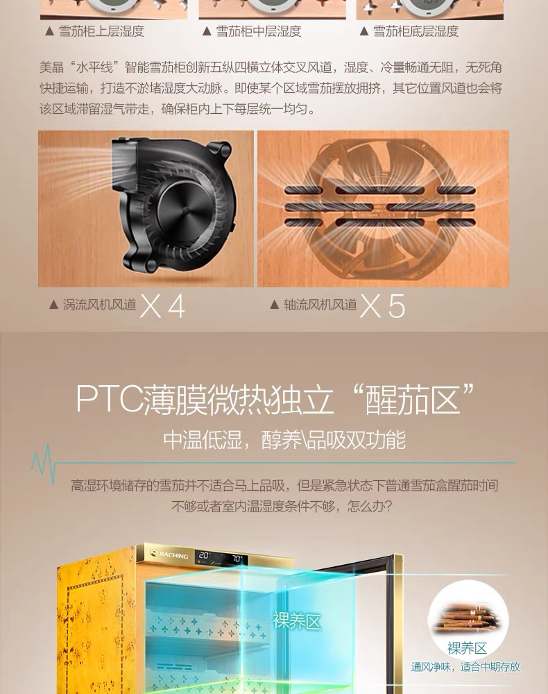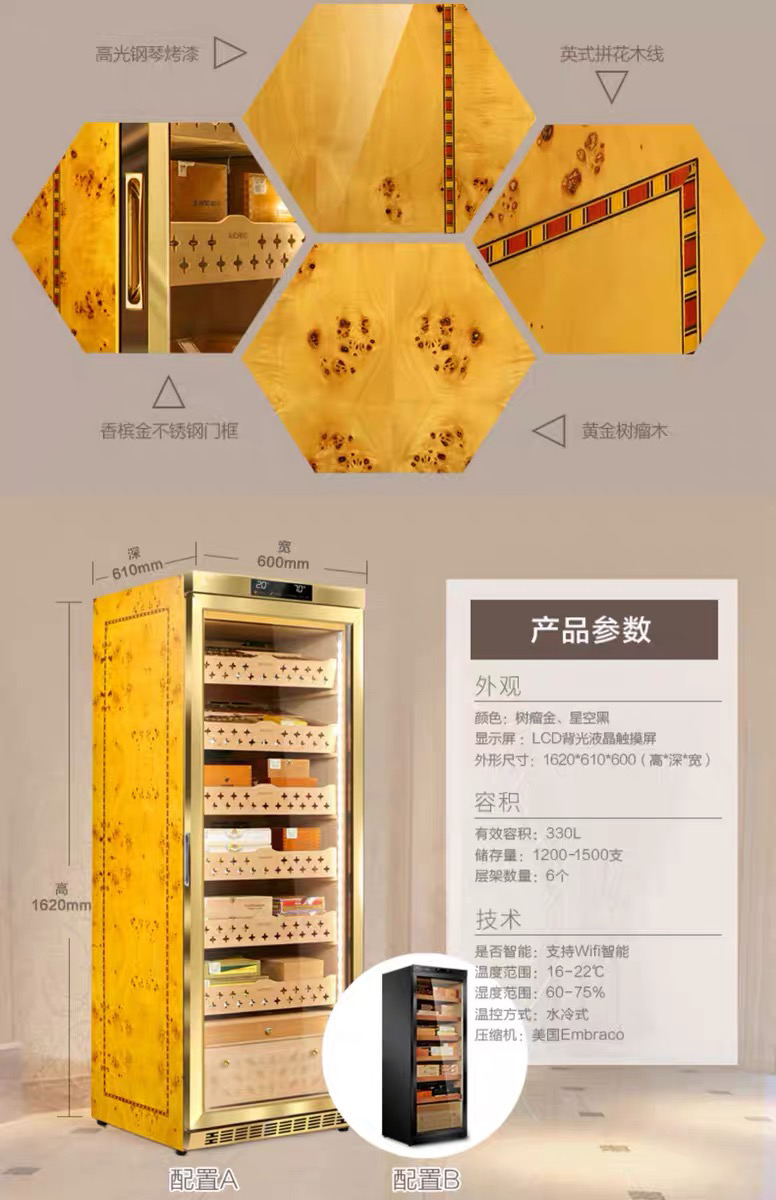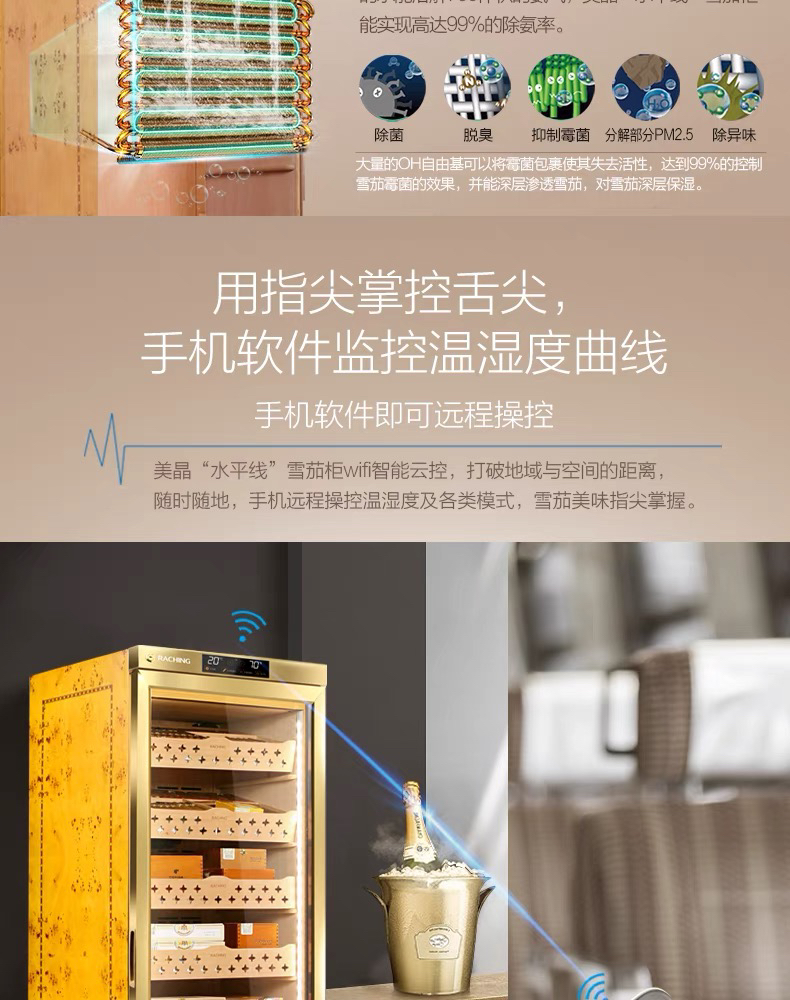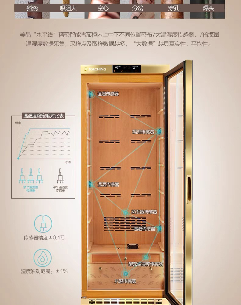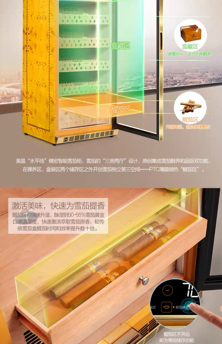 raching/美晶雪茄柜MON2800A智能水平线实木恒温恒湿雪茄柜保湿柜